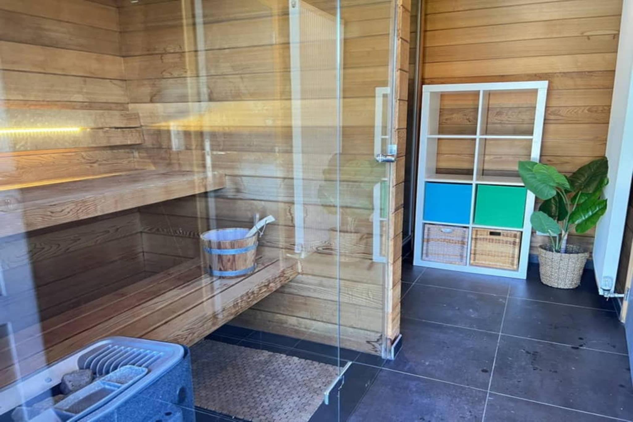 Stue(Fjernsyn(kabel, parabol), sofahjørne), Køkken(kogeplade(Komfur med fire kogeplader, glaskeramisk), elkedel, brødrister, kaffemaskine(kaffetragt), espressomaskine, combi-mikroovn, køleskab, fryser), soveværelse(dobbeltseng, Fjernsyn), soveværelse(dobbeltseng), soveværelse(dobbeltseng), soveværelse(enkeltseng, enkeltseng), badeværelse(bruser), toilet, sauna, Internetadgang, tørretumbler, vaskemaskine, varme(central), terrasse, havemøbler