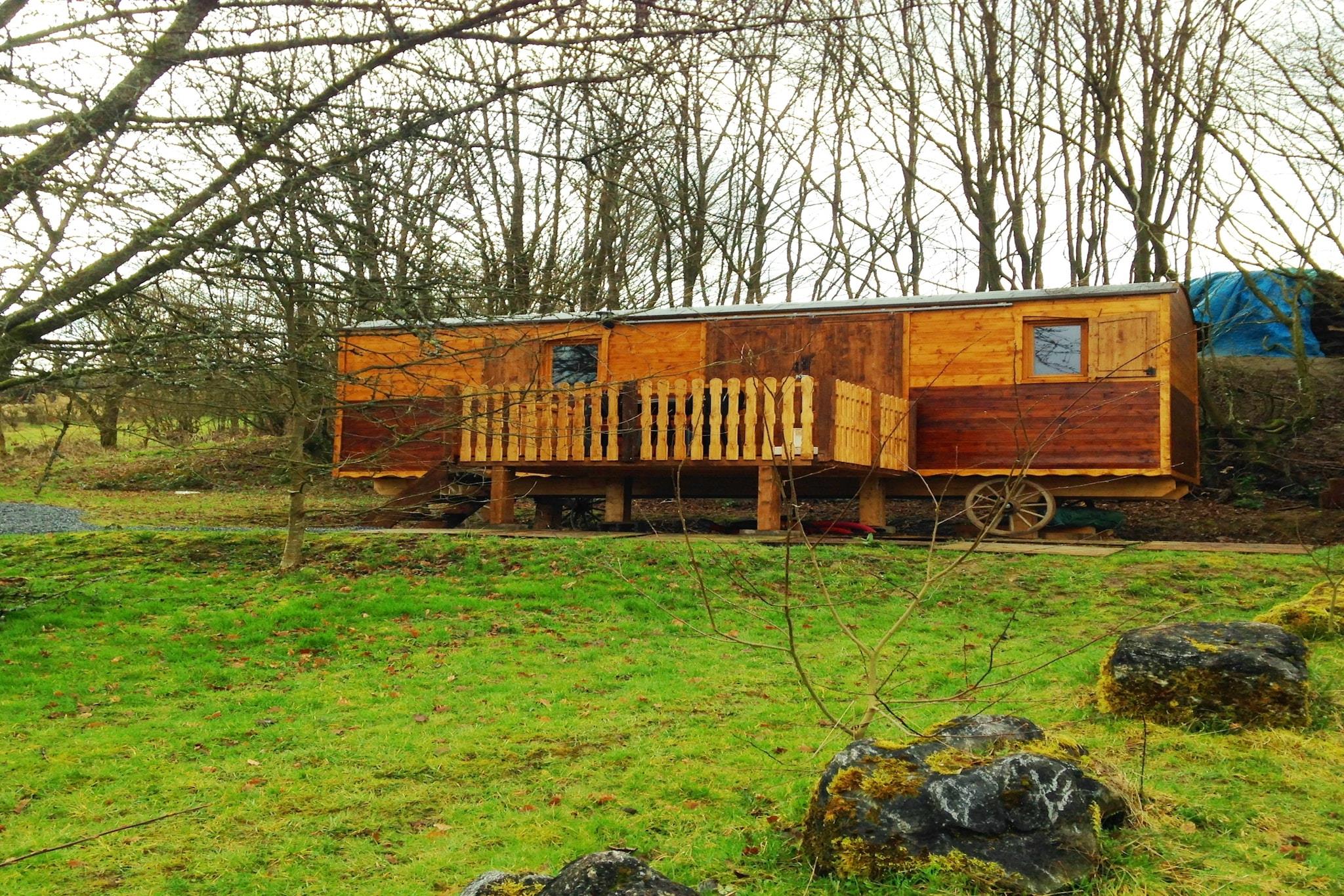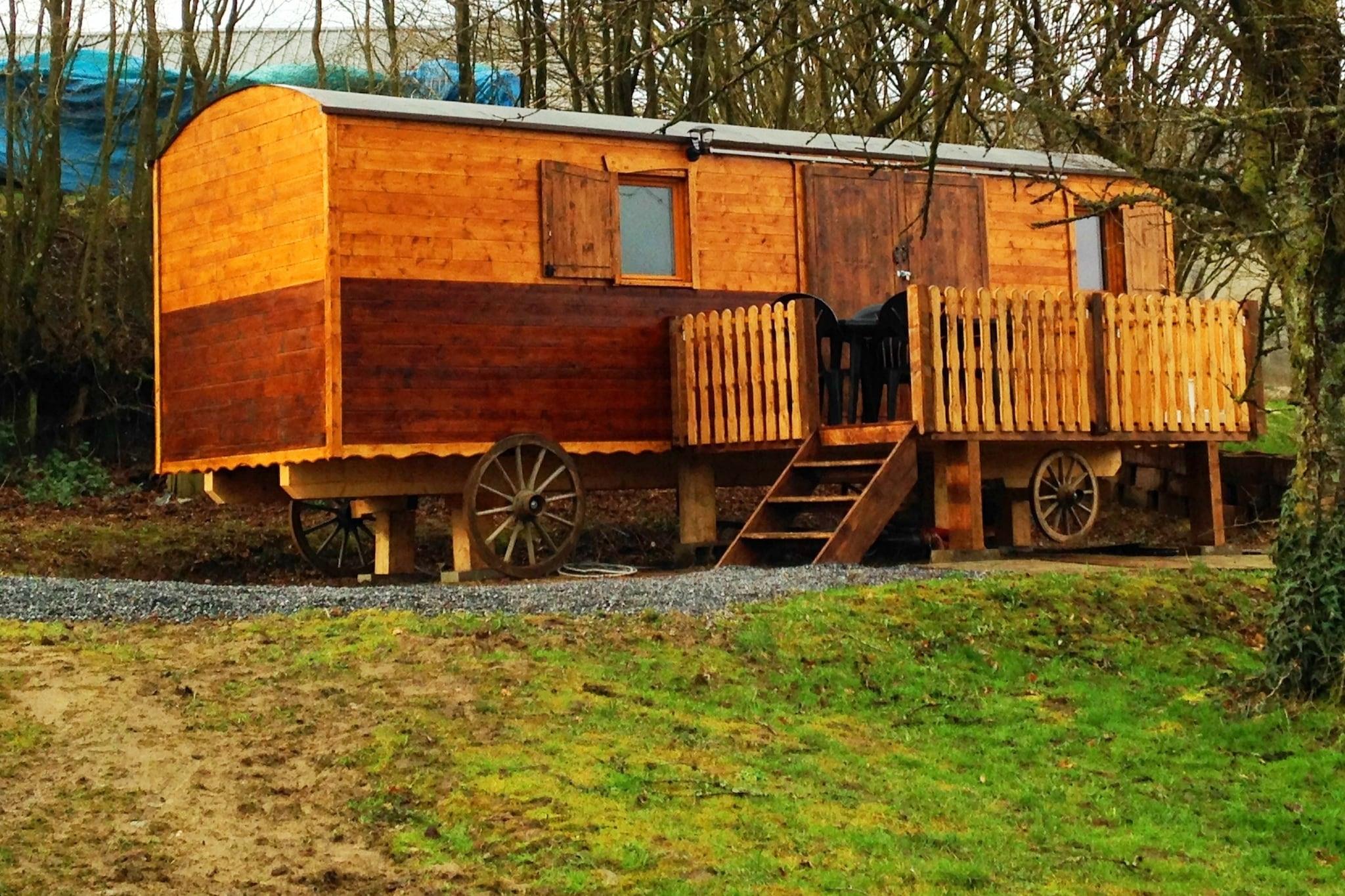Overdækket vogn : (åbent køkken(mikrobølgeovn), Stue/soveværelse(dobbeltseng, køjeseng, Fjernsyn, DVD-afspiller), badeværelse(bruser, håndvask), toilet) åbent rum, varme(elektrisk), have(deles med ejer og andre gæster), parkering