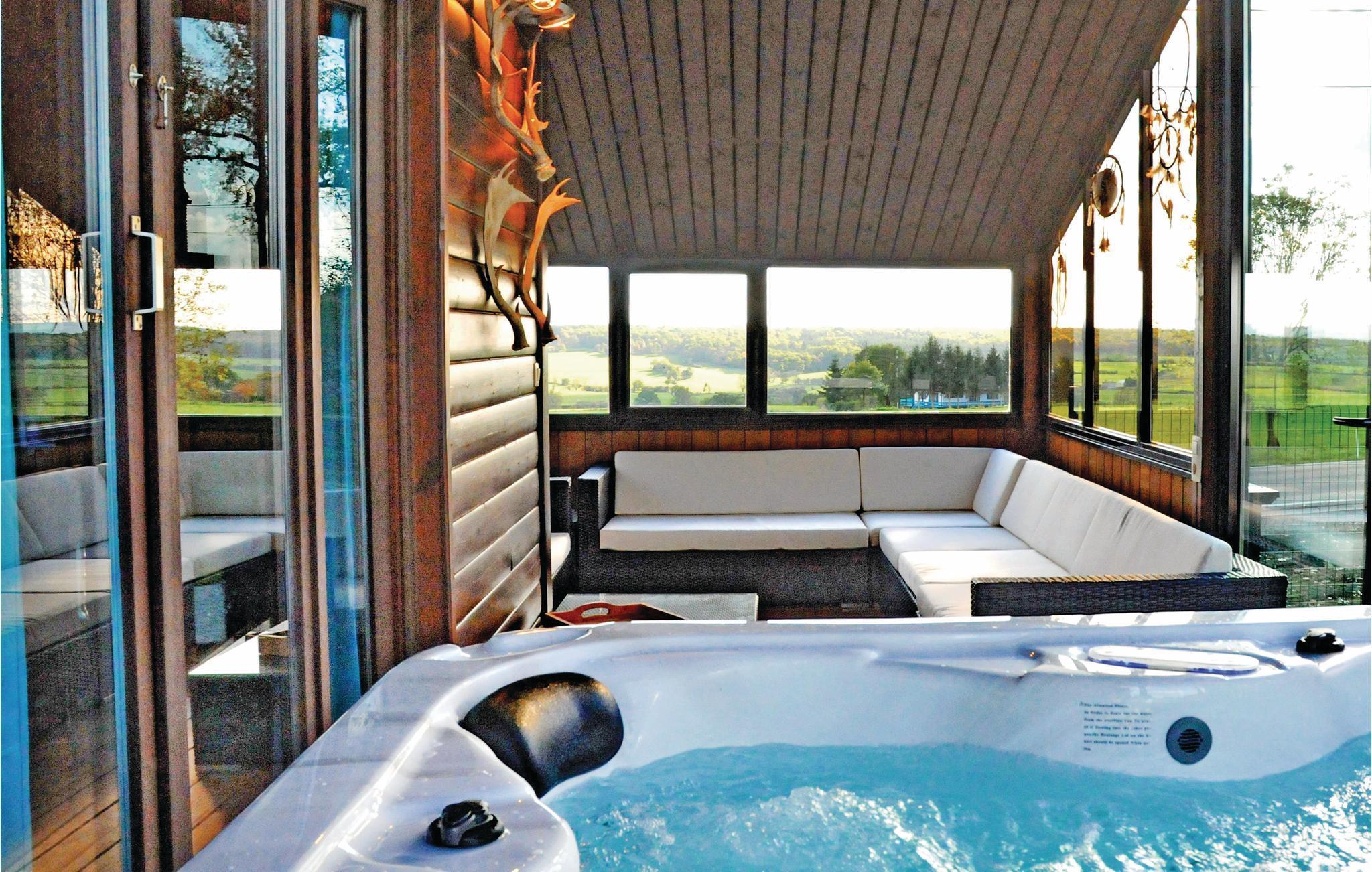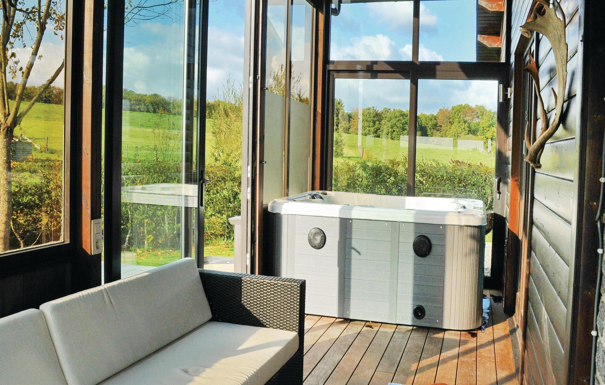 Chalet La Branche i Some-Leuze ligger ved Durbuy i Ardennernes udløbere. Over et par trin når I stueetagen af det hyggelige træhus. Her ligger den rummelige stue, køkken og husets es: Verandaen med whirlpool til tre personer. Yderligere er der et enkeltværelse, et soveværelse med to enkeltsenge og et badeværelse. Nedenunder der to soveværelser med to enkeltsenge samt bruser hver. På første sal er der indrettet et legehjørne i det store værelse samt yderligere en dobbeltseng. Feriehuset er omgivet af en smuk have med terrasse, havemøbler og grill. I kan tage på dejlige udflugter til Dinant, La Roche, Durbuy og Plopsa Coo. Især ældre børn og voksne kan glæde sig til gode muligheder for outdoor-sport.