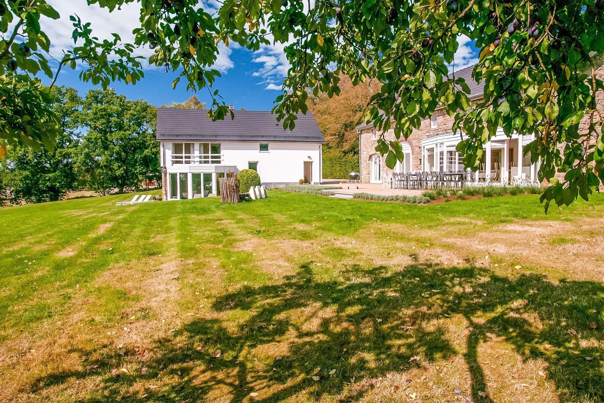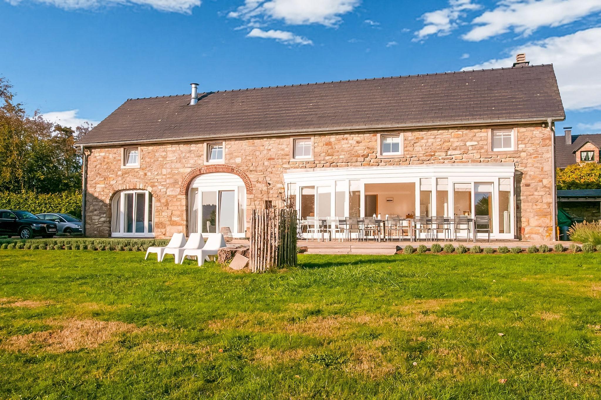 Dette fantastiske luksushus er fuldstændig renoveret og ligger i regionen Robertville-søerne og Bütgenbach. Huset er meget rummeligt og derfor ideelt for familier. Lejligheden har en stor stue med flere siddepladser, et fodboldbord og en dejlig pejs, som du kan nyde fra to sider. Ved siden af opholdsstuen finder du det rummelige, åbne og fuldt udstyrede køkken. Hvis du vil slappe af så vil du selvfølgelig bruge den fine sauna og opvarmet indendørs pool. Fra poolen finder du franske døre, der fører til terrasse med grill og den smukke have. Ejeren taler fransk, engelsk og tysk. Mange vandrestier starter fra huset og fører til en vidunderlig udsigt over det omkringliggende kuperede landskab. Til butikker og fortovscaféer kan du gå til: Waimes (3,5 km ), Malmedy (8 km), Stavelot (17 km) og Spa (27 km). Andre attraktioner omfatter søerne Robertville og Bütgenbach (9 km), slottet Reinhardstein (11 km) og High Fens Natural Park km). Du er også inden for 11 kilometer af High Fens skiløb og langrendsløjper.