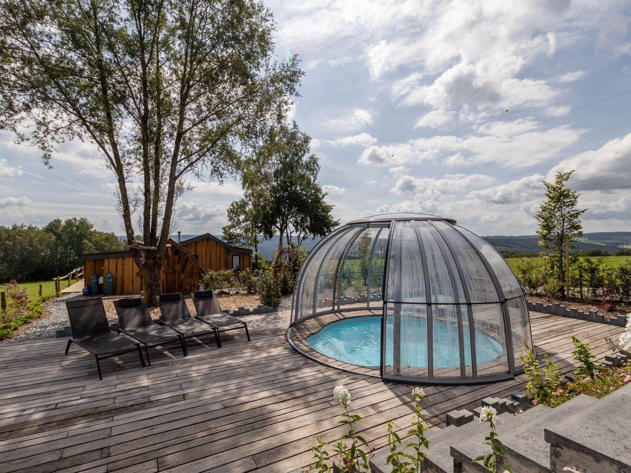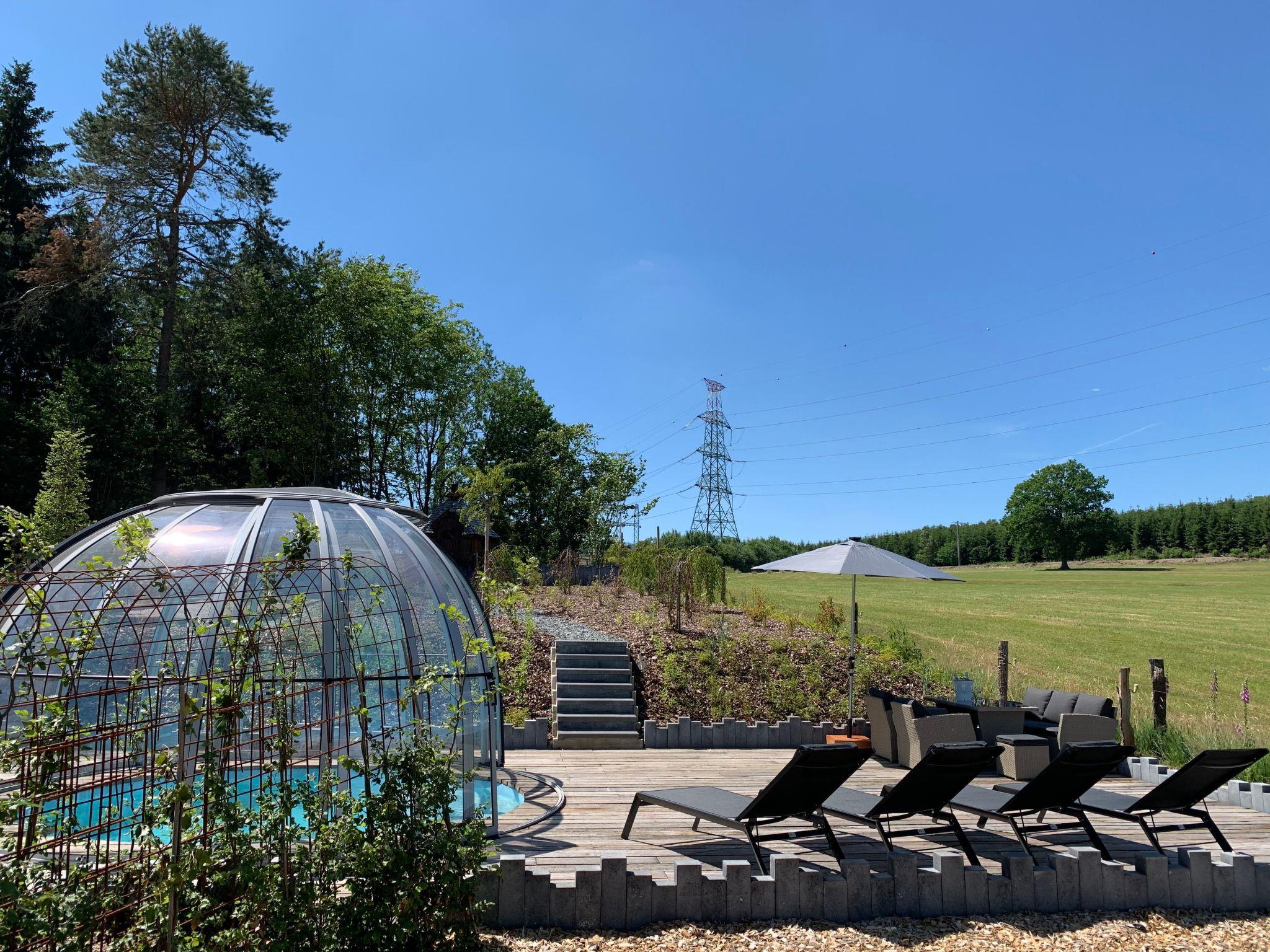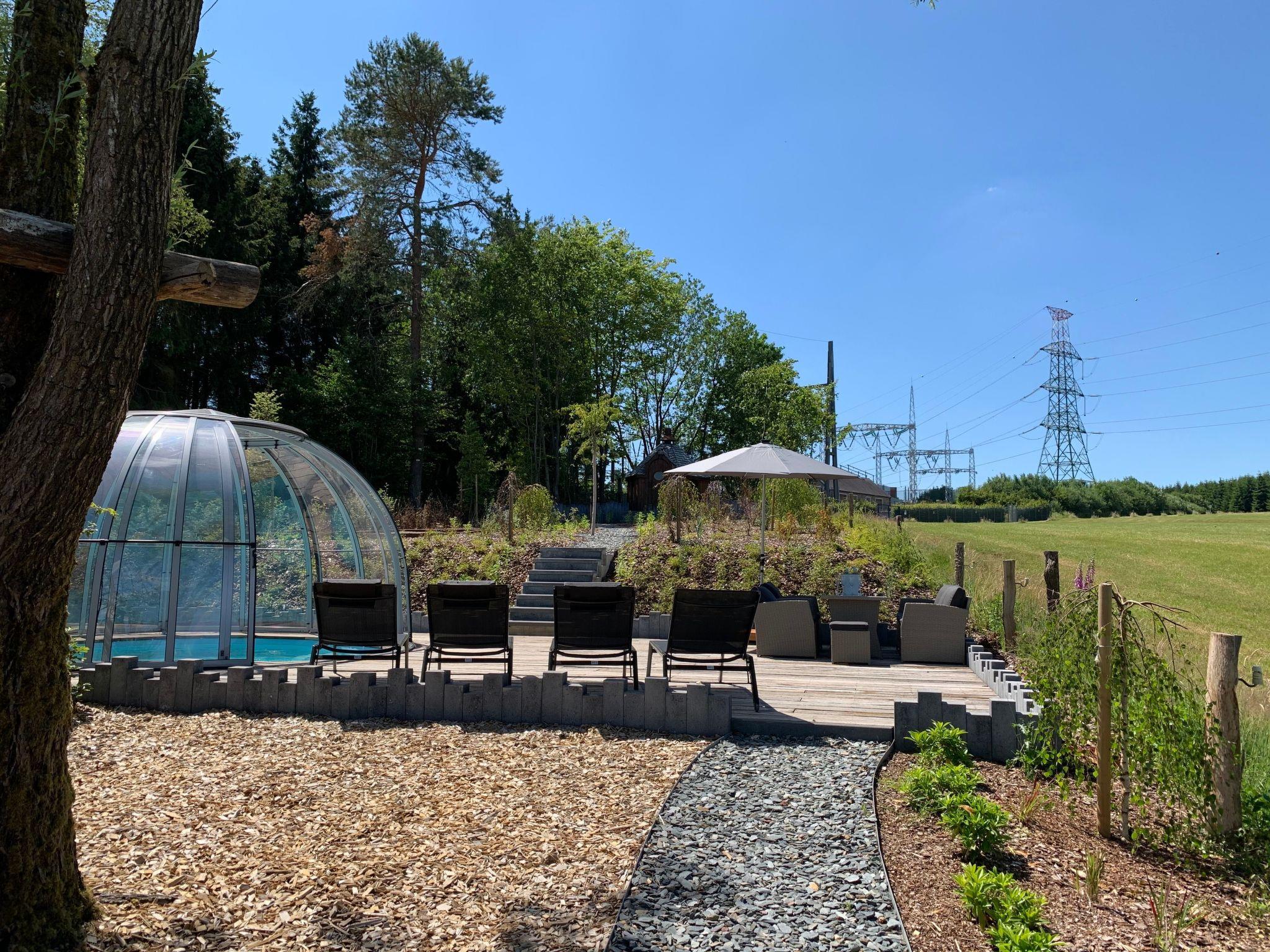 You can enjoy large, well-facing terraces throughout the day. The house is surrounded by a terrace where you will find a dining table and chairs, and a gas BBQ (to be provided). Around the outdoor swimming pool, which is covered or semi-covered and heated all year round, you'll also find a large terrace with a lounge area and sun loungers. Further on, take a stroll along the paths lined with vegetation to reach the petanque court and, at the bottom of the garden, a KOTA where you can build a big fire and why not grill some sausages or cook some marshmallows (wood to be provided).