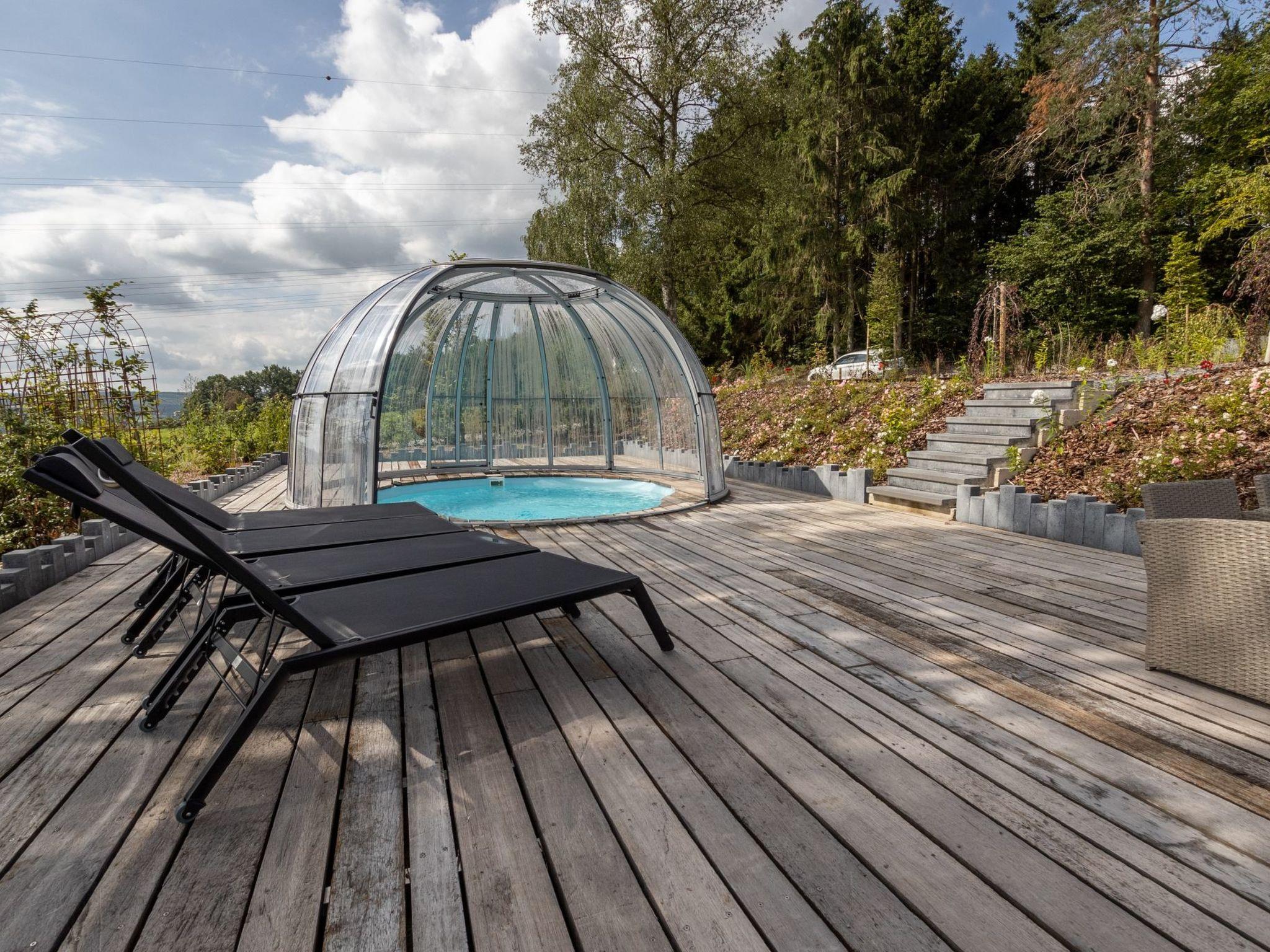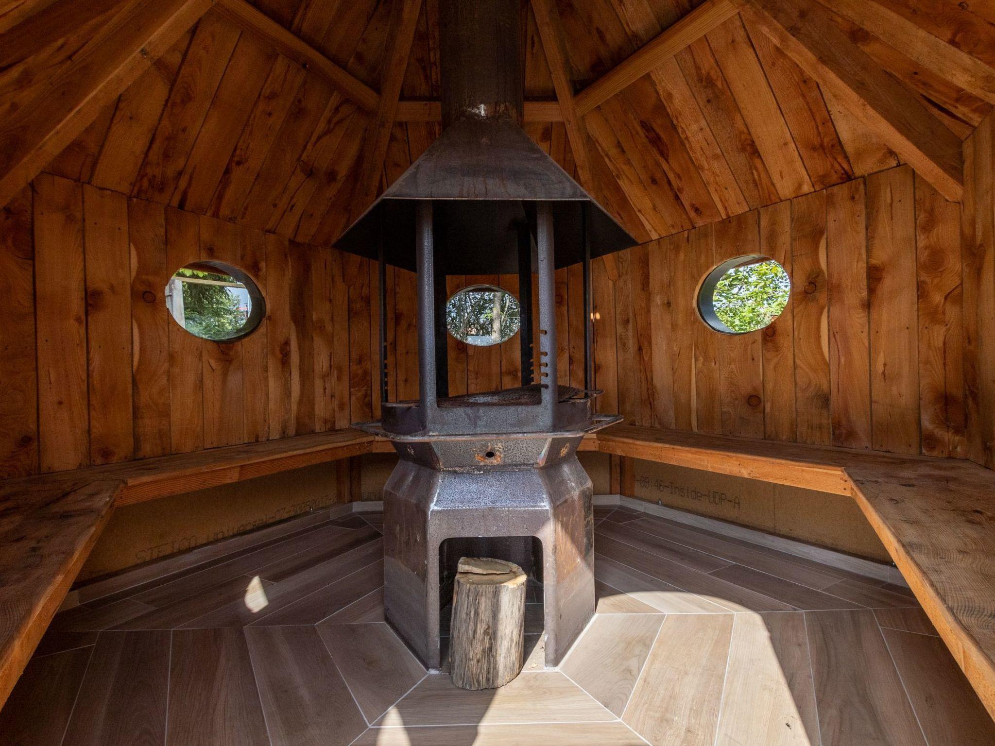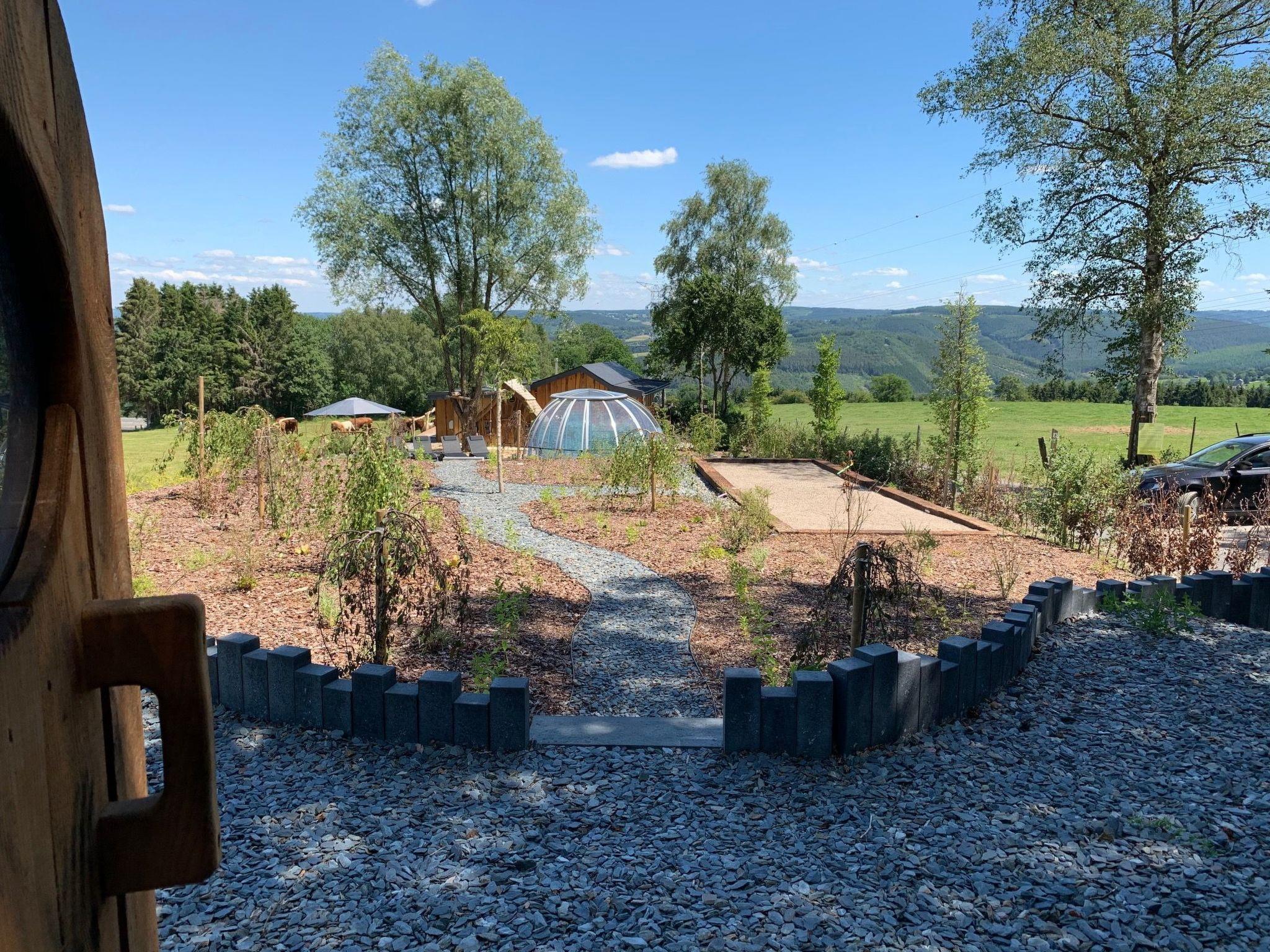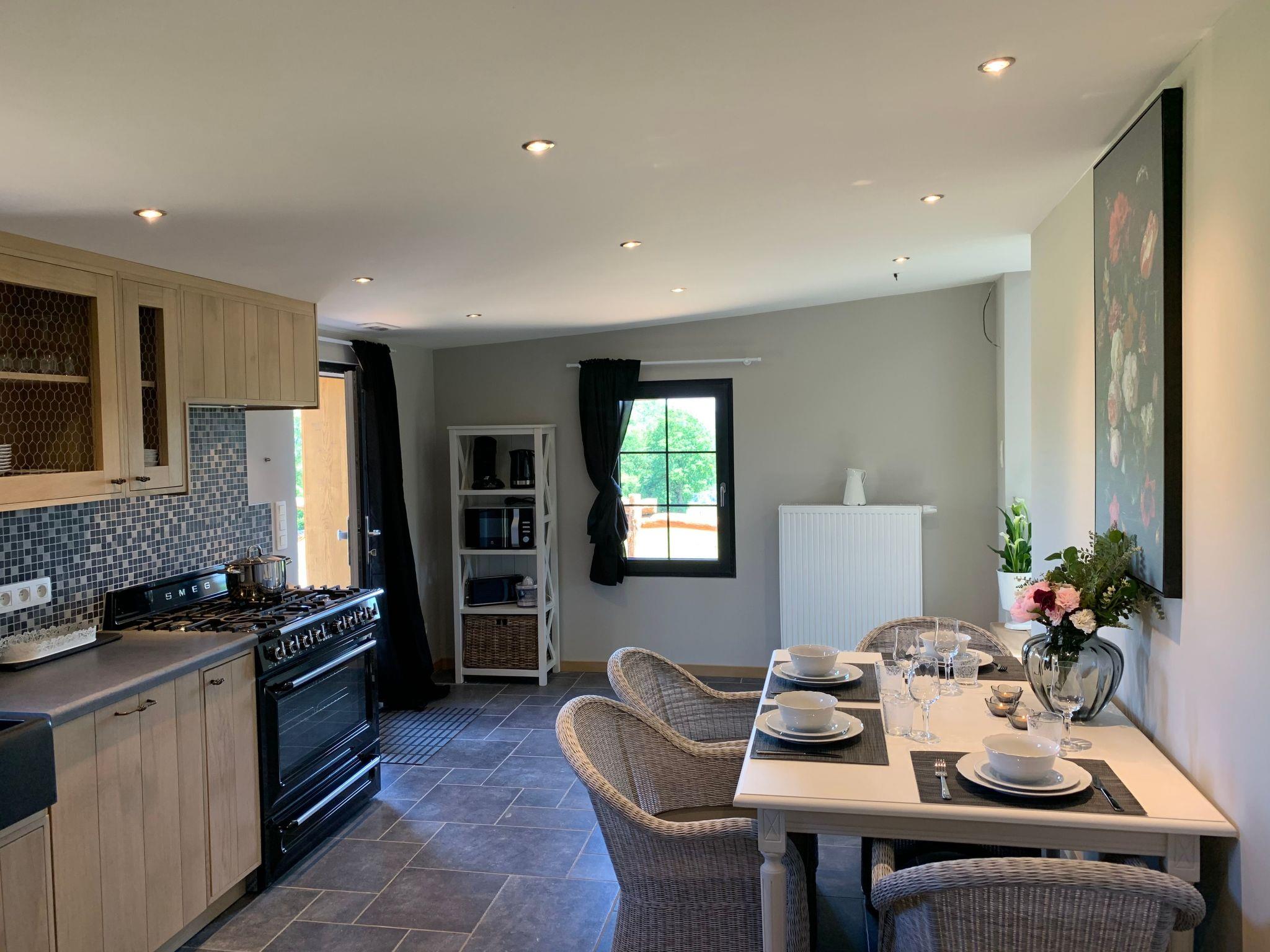 You can enjoy large, well-facing terraces throughout the day. The house is surrounded by a terrace where you will find a dining table and chairs, and a gas BBQ (to be provided). Around the outdoor swimming pool, which is covered or semi-covered and heated all year round, you'll also find a large terrace with a lounge area and sun loungers. Further on, take a stroll along the paths lined with vegetation to reach the petanque court and, at the bottom of the garden, a KOTA where you can build a big fire and why not grill some sausages or cook some marshmallows (wood to be provided).