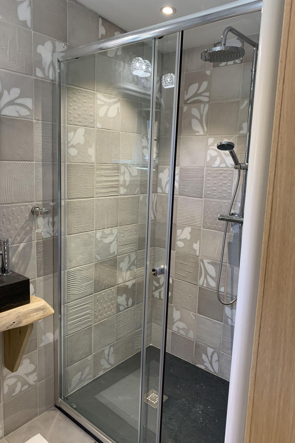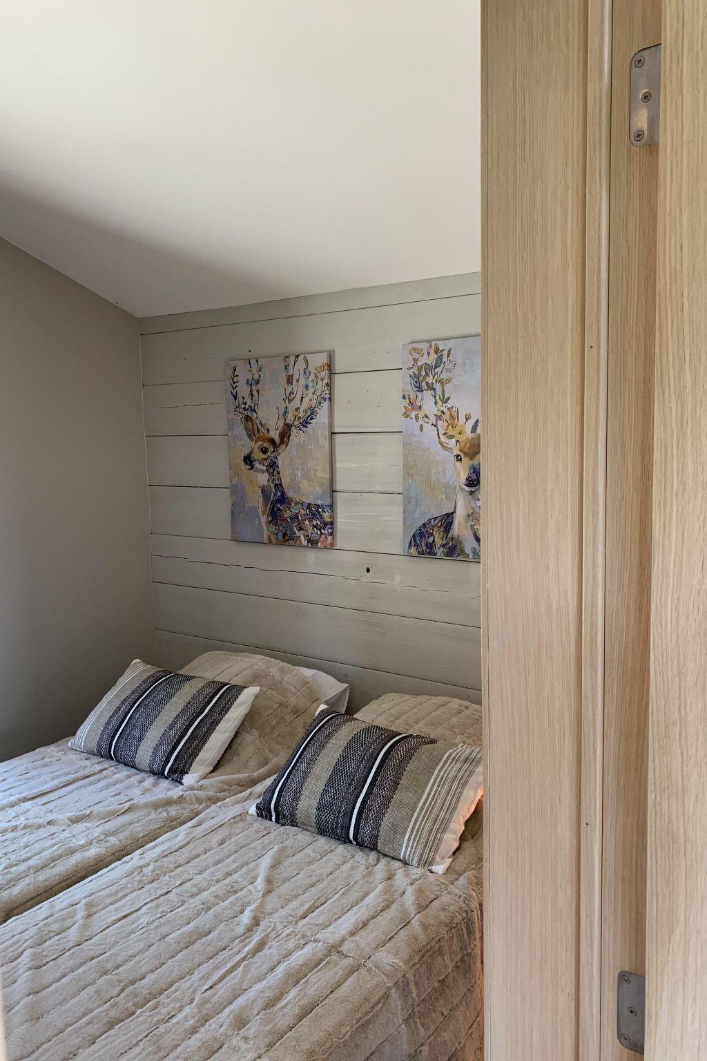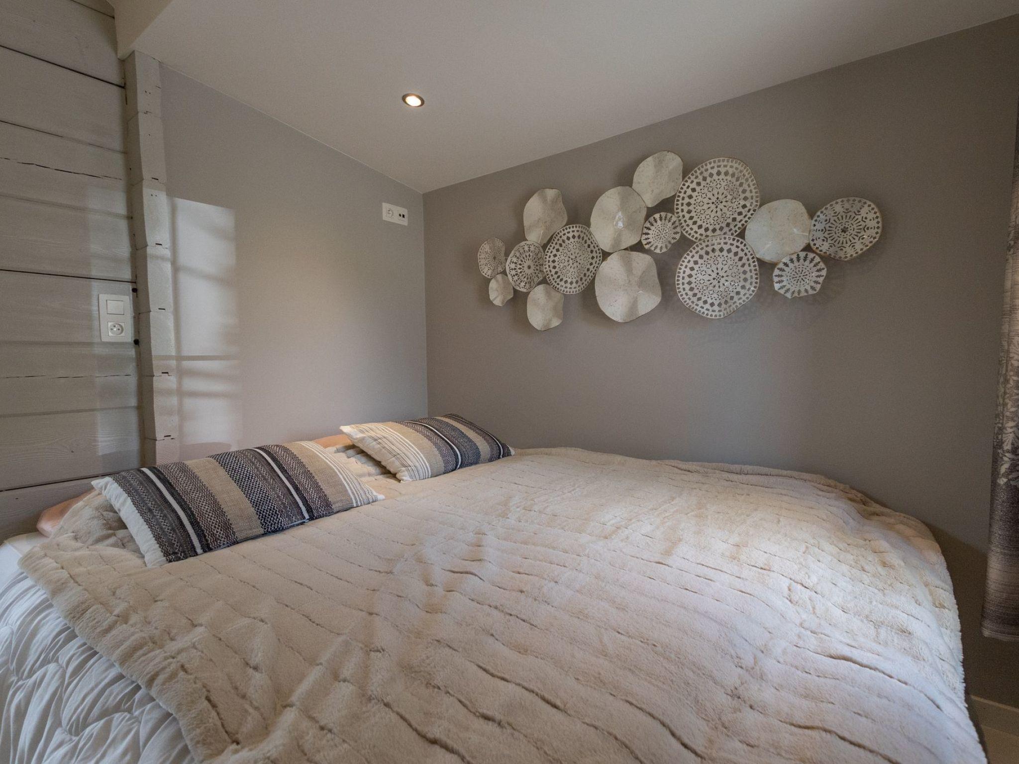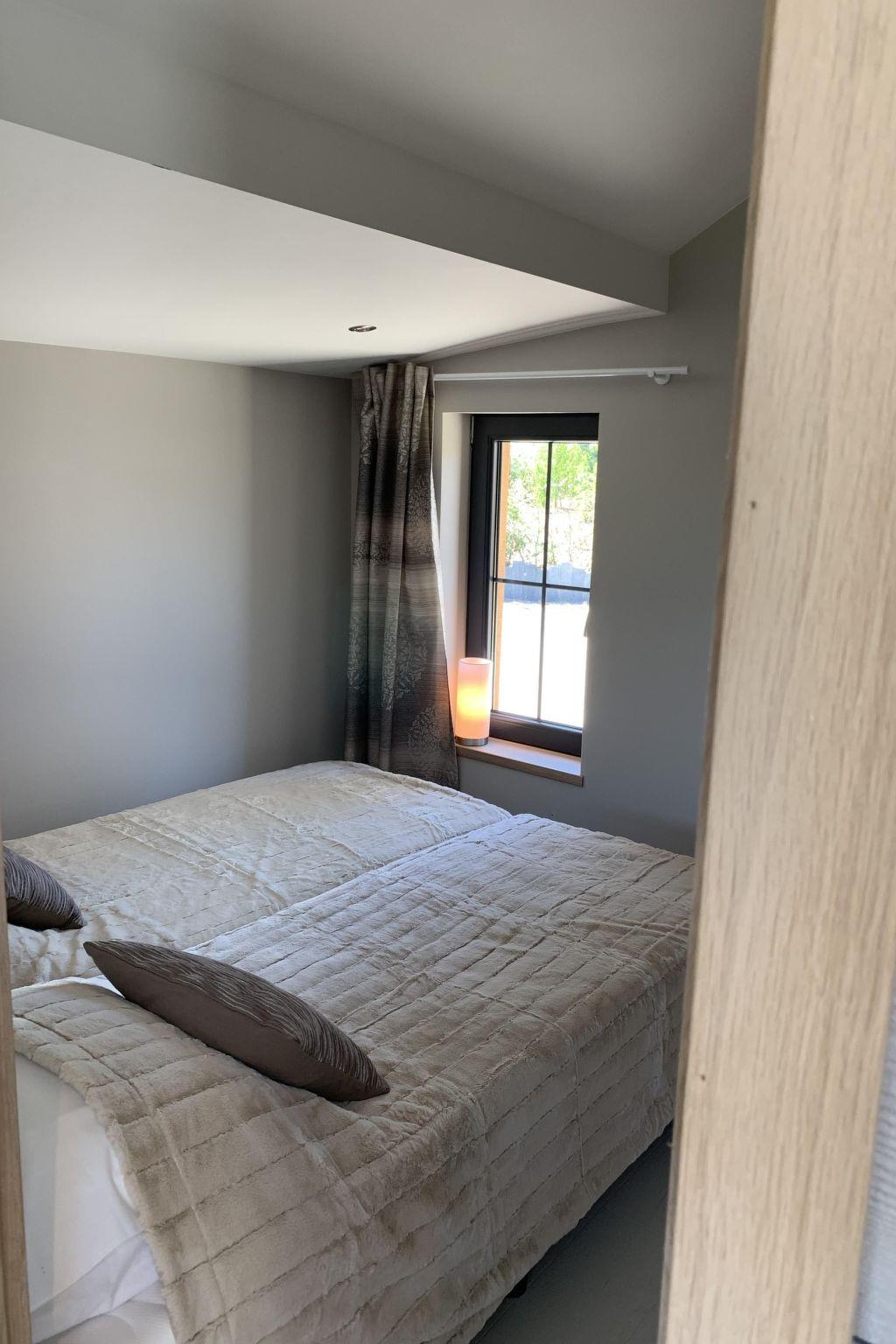 The house is on one level with only 2 steps separating the kitchen and bathroom from the living room and bedrooms. The chalet is surrounded by a terrace from which you enter the house. Entrance into the kitchen - dining room (5-burner piano and gas oven, fridge + freezer, microwave, small electrics, senseo, etc.). On one side, the living room with pellet stove, TV and internet. On the other side, the bathroom (Italian shower, washbasin, wc). Finally, the 2 bedrooms. Small utility room with washing machine.