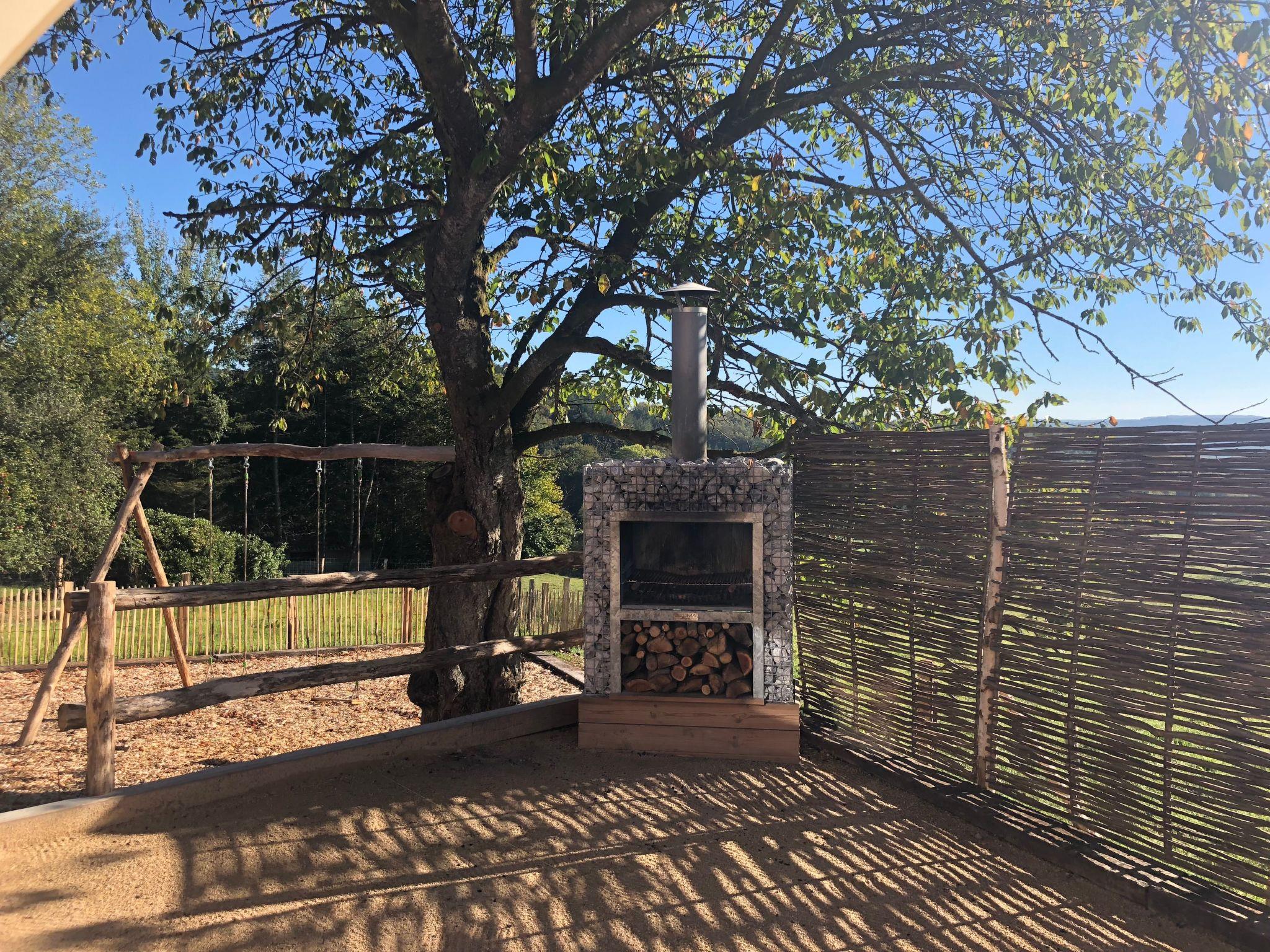 Beautiful large terrace with magnificent views over the countryside, 12-seater table under pergola, charcoal BBQ, pétanques, lounge, deckchairs, swings, etc.