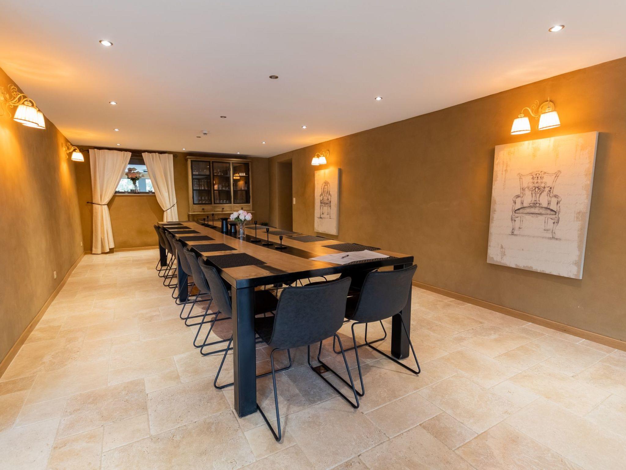 Ground floor: Hall, 12-seater dining room, fireside lounge, cosy living room with screen, fully-equipped kitchen, utility room and guest toilet. Access to terrace and wellness area