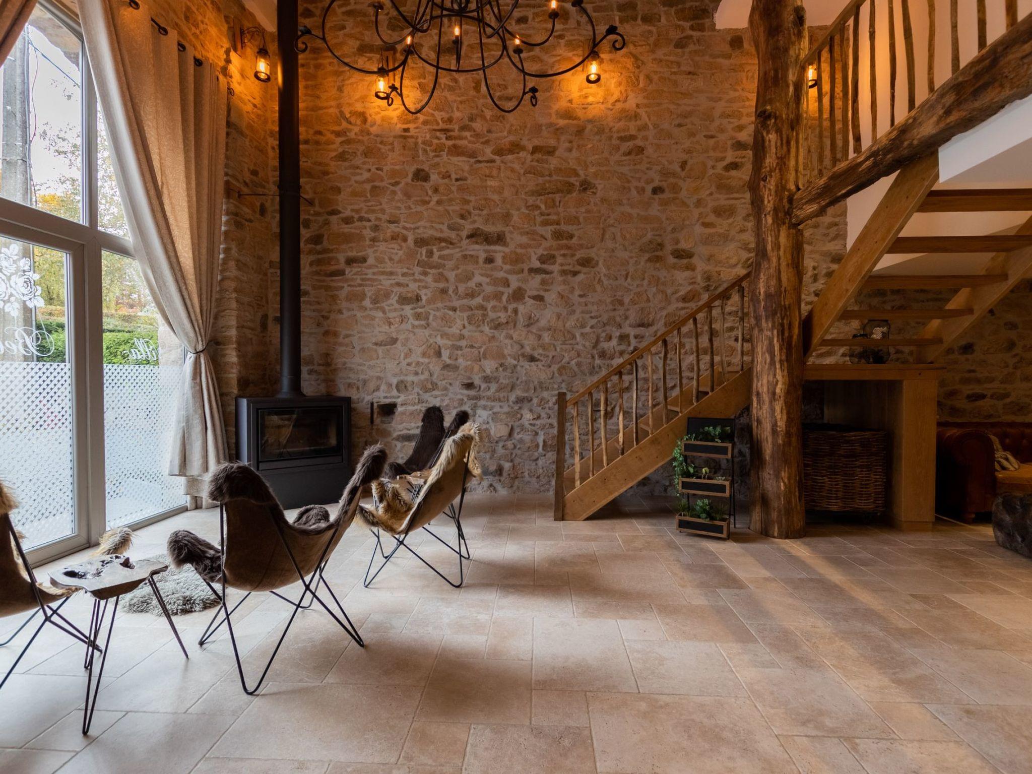 Automatically adjustable underfloor heating + radiators in bedrooms. Wood-burning stove (wood not supplied).
