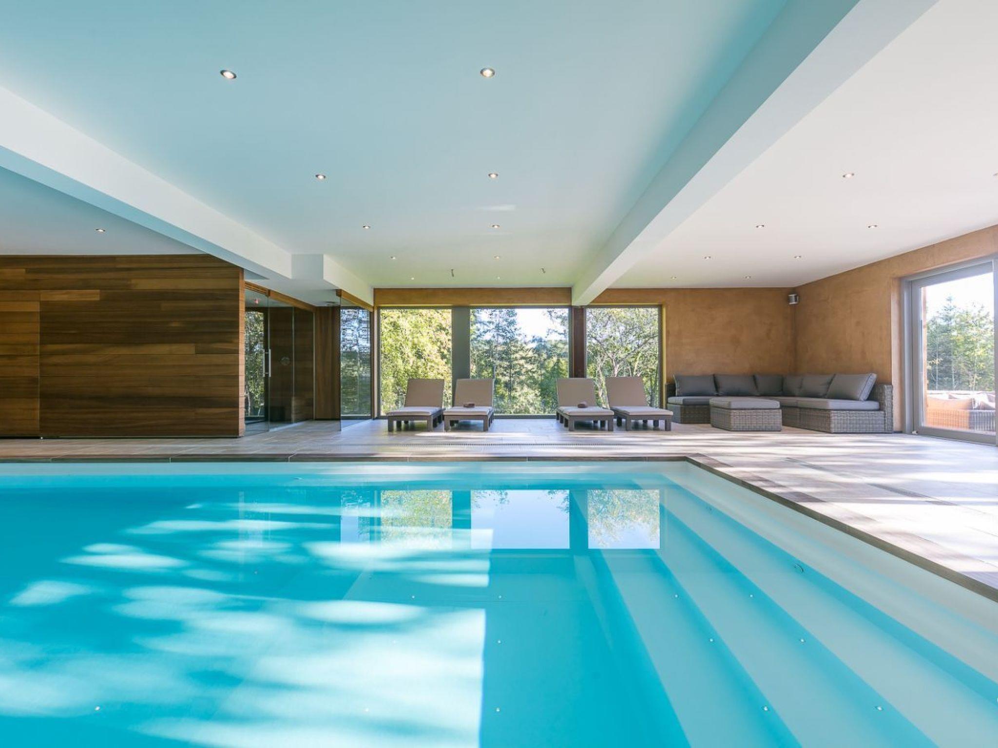 Wellness (ground floor): large 475/800cm heated indoor swimming pool, sauna, shower, lounge and sun loungers.