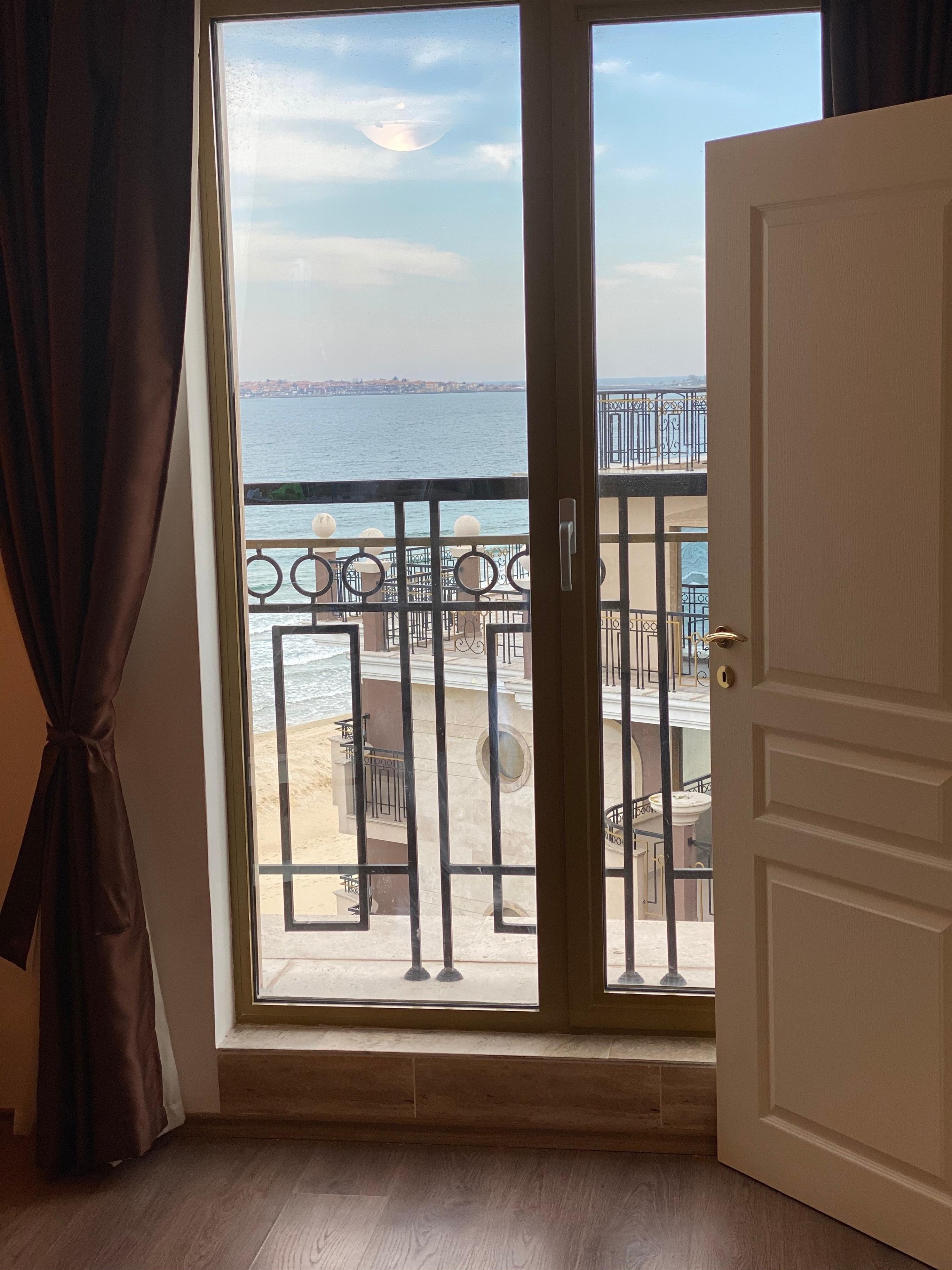 Jetzt Penthouse Happy Moments in Sonnenstrand Bulgarien ,direkt am Strand buchen! Tiefen Boden Fenster(kein Balkon ) mit einen traumhaften Meerblick ,luxuriöse Einrichtung,WLAN, außen Pool, 2 TV ,Waschmaschine , Espresso Maschine!