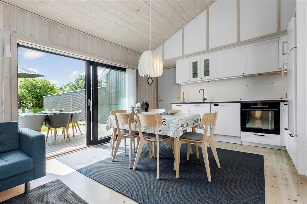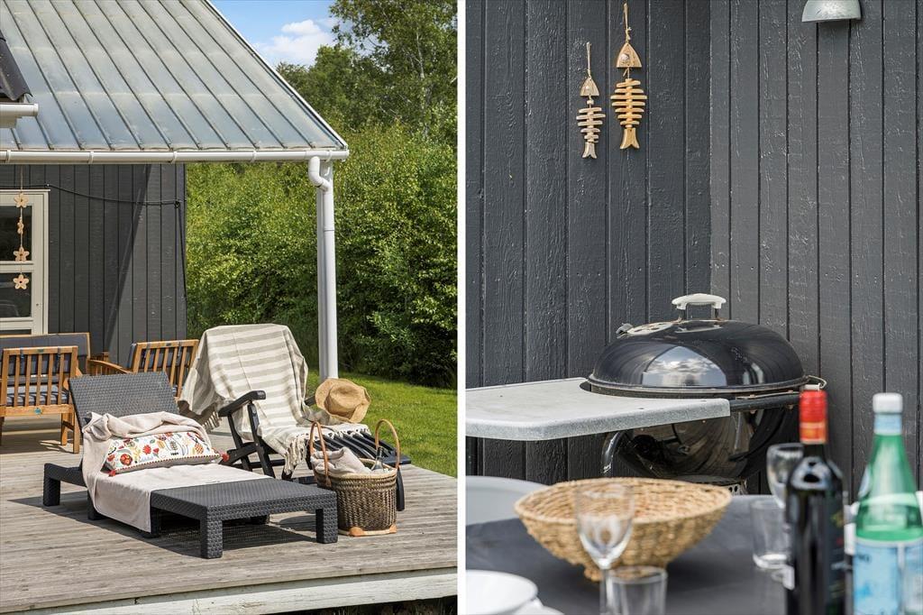 Udenfor venter en dejlig have med masser af plads til leg og afslapning. Den delvist overdækkede terrasse indbyder til hyggelige grillmiddage og lange sommeraftener under åben himmel. Børnene vil elske gyngerne eller trampolinen, mens du nyder en kop kaffe i solen. Med kun 400 meter til stranden er det nemt at tage en dukkert eller gå en tur langs kysten.