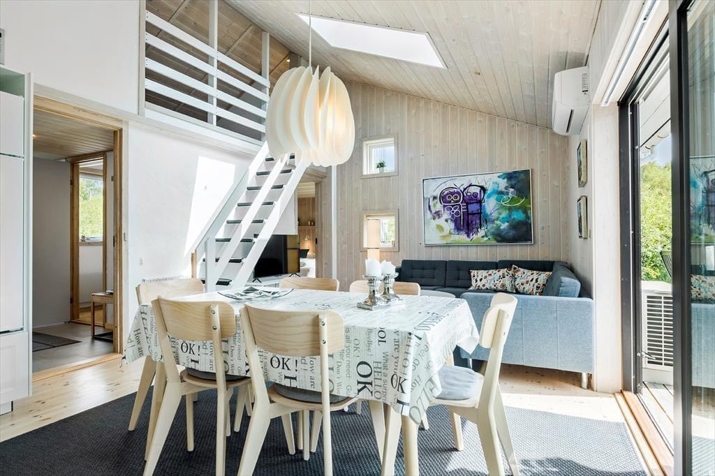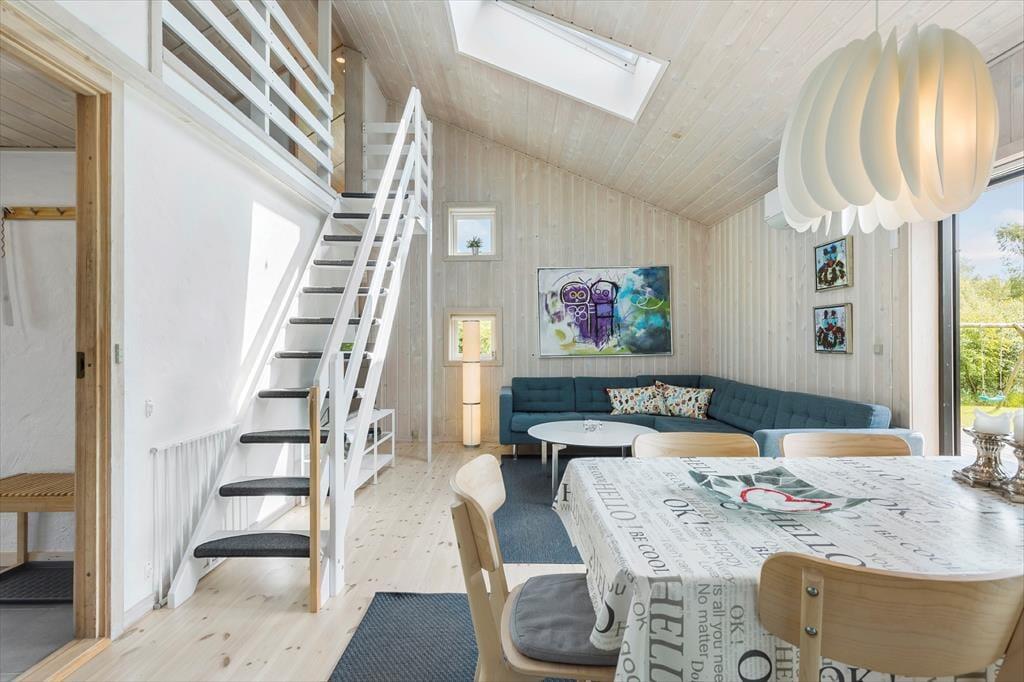 Træd ind i et lyst og velindrettet sommerhus, der emmer af hygge og afslapning. Huset byder på to rummelige soveværelser, et moderne badeværelse og en hyggelig hems – perfekt til børnene eller til en stille læsestund. Det åbne køkken-alrum er husets hjerte, hvor du kan tilberede lækre måltider, mens du nyder samværet med familien. Efter en dag fuld af oplevelser kan du slappe af i husets sauna eller i stuen med en god bog.