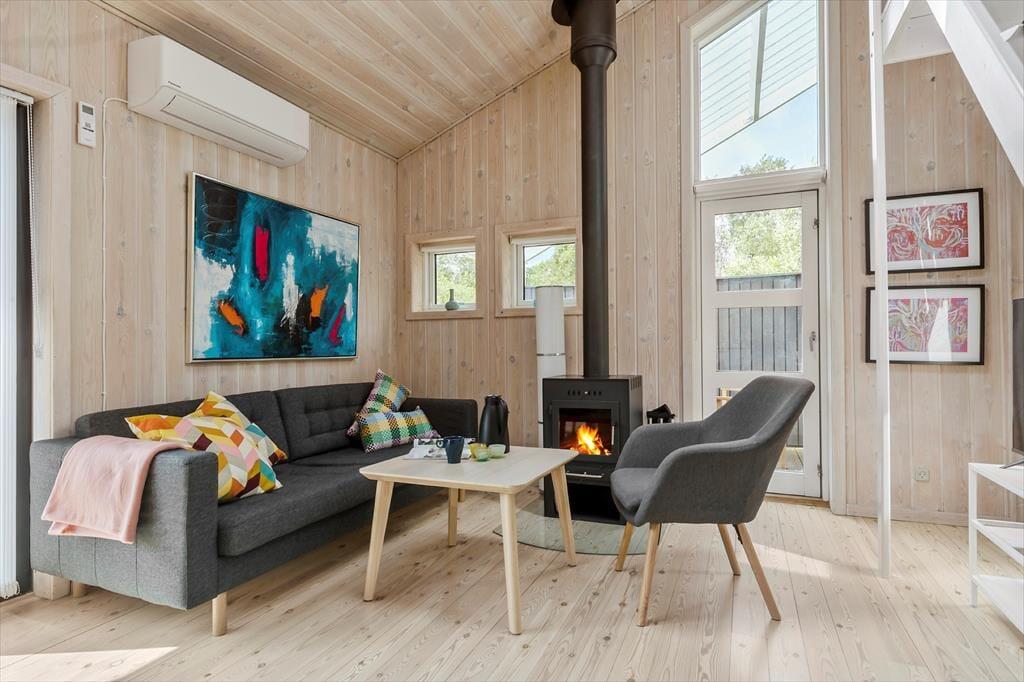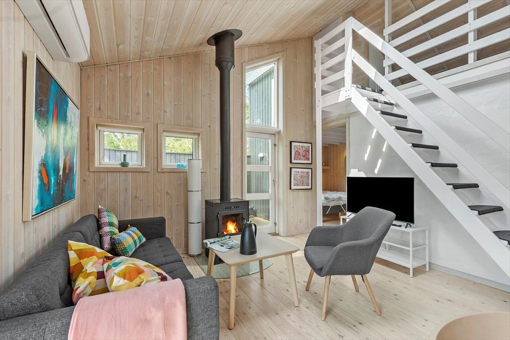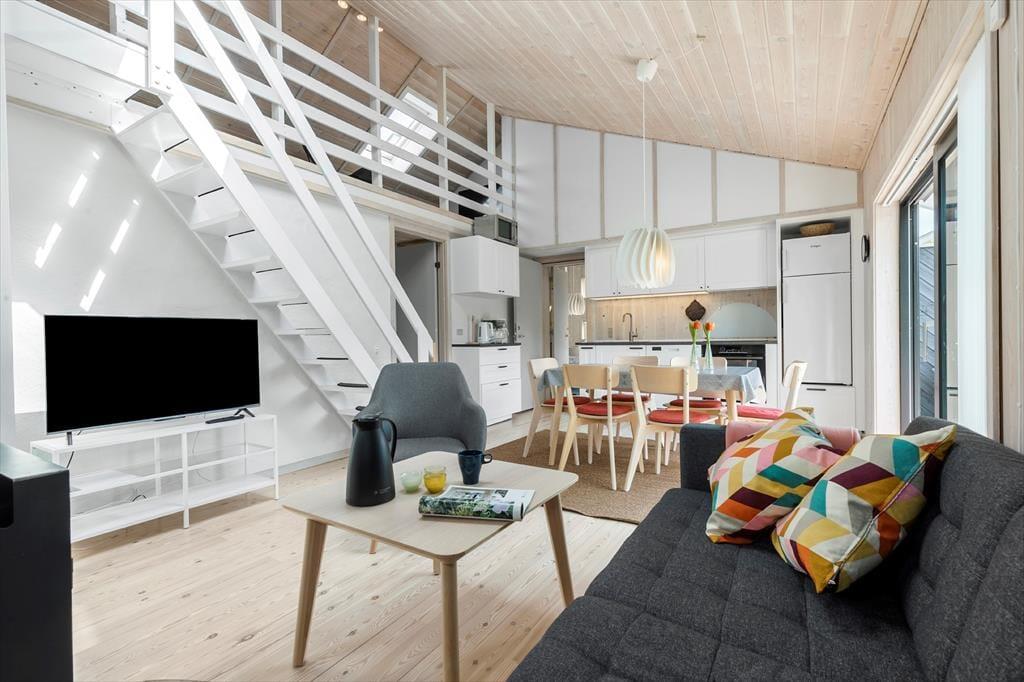 Træd ind i dette nyrenoverede dobbelte feriehus, hvor komfort og hygge går hånd i hånd. Med plads til 6 gæster fordelt på to soveværelser og en charmerende hems, er der rig mulighed for både afslapning og samvær. Det åbne køkken-alrum indbyder til fælles madlavning og lange middage, mens brændeovnen spreder varme og stemning på kølige aftener. Efter en dag fuld af oplevelser kan du forkæle dig selv i husets sauna – en perfekt afslutning på en dejlig feriedag.