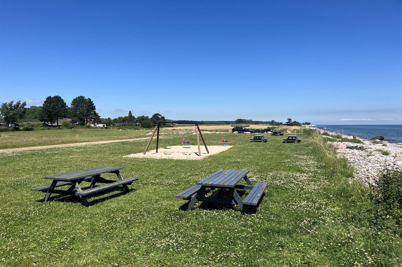 Huset ligger ugenert for enden af lukket vej, og der er fra haven direkte adgang til grønt område og fællesområde med bl.a. legeplads og borde/bænke ved stranden. Ved stranden er der i sommerhalvåret opsat både badebro og flydebro til både. Der er ved stranden mulighed for at sætte båd i vandet via rampe.
