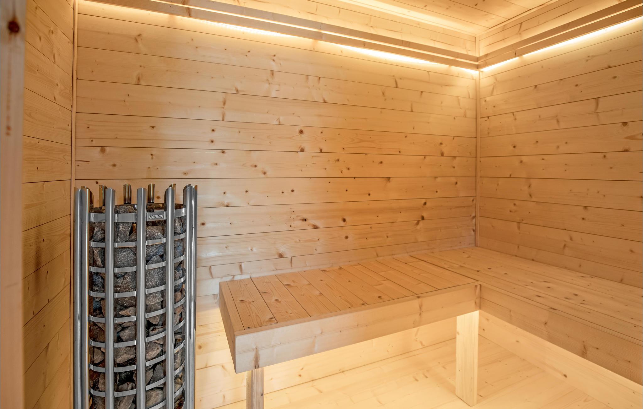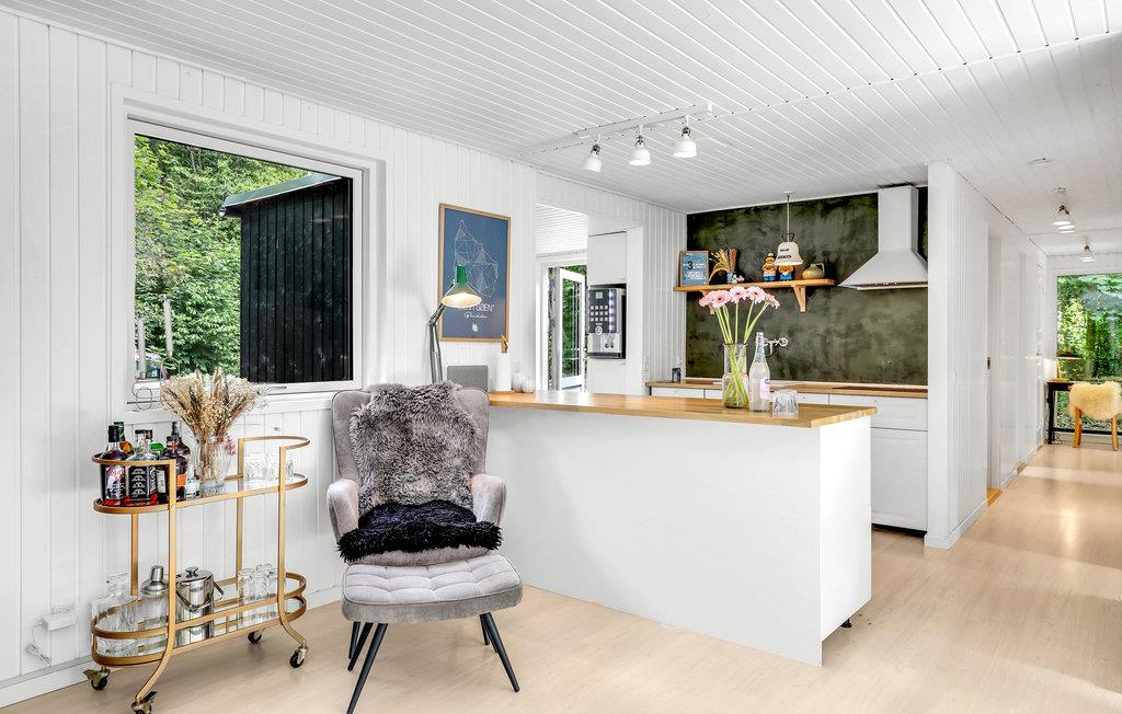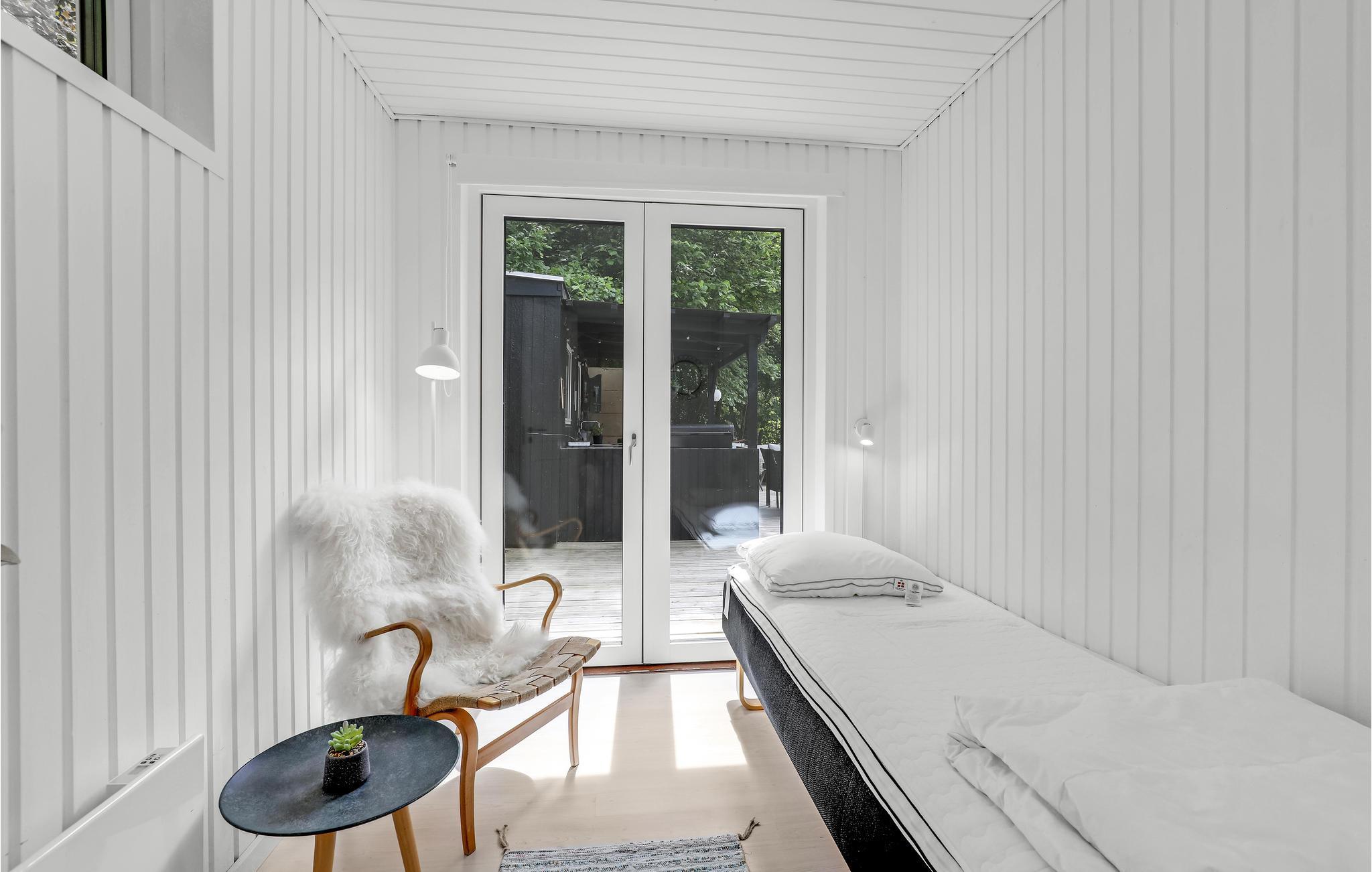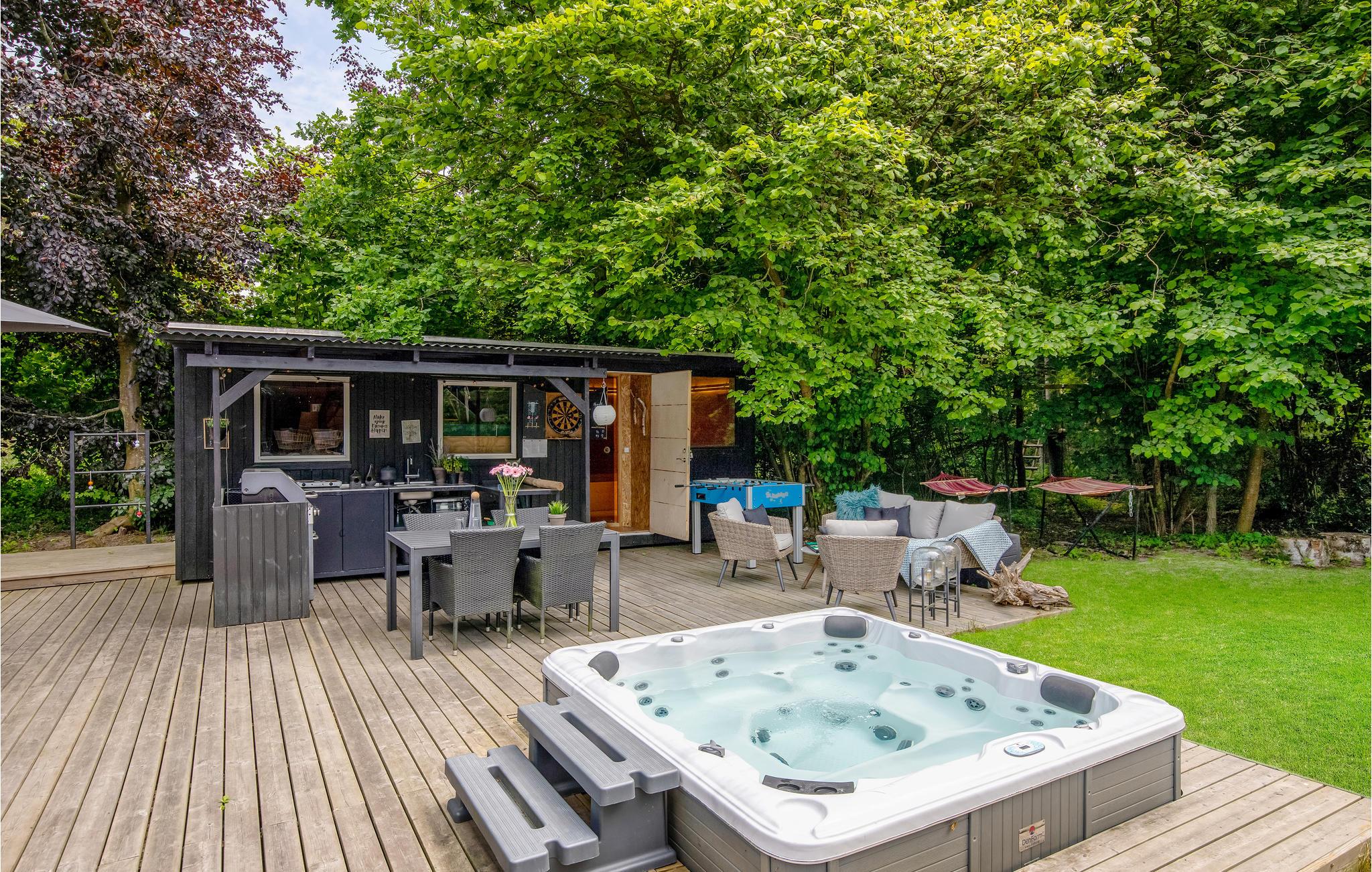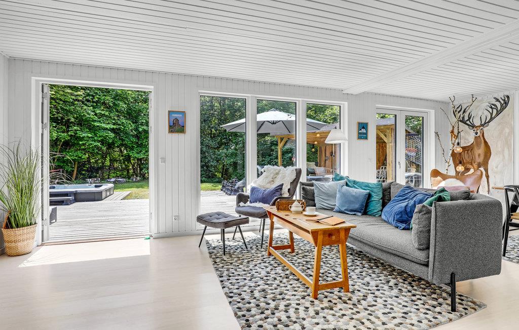 Fantastisk sommerhus tæt på børnevenlig strand med sauna, aktivitetsrum og udekøkken til en hyggelig ferie.