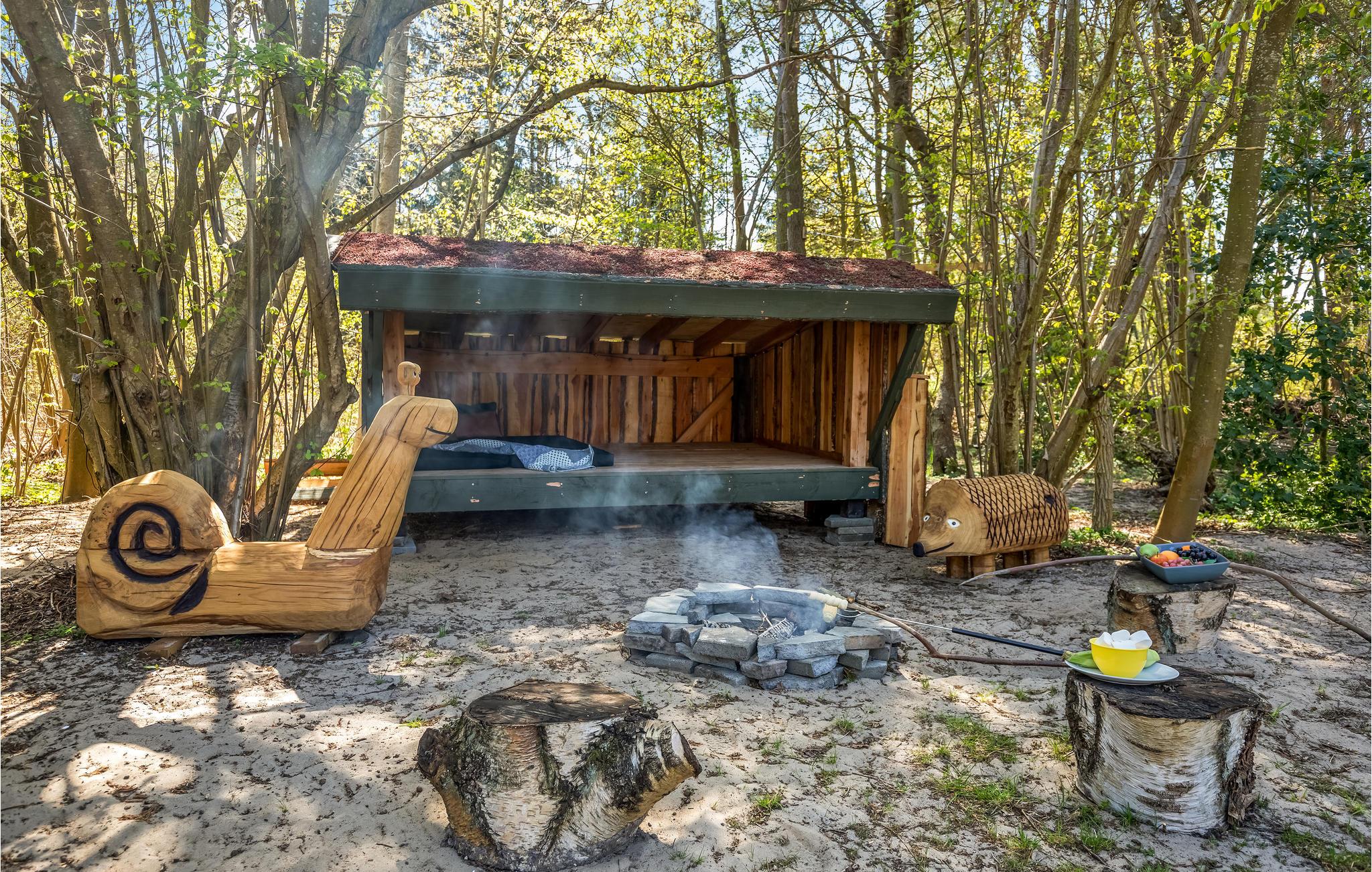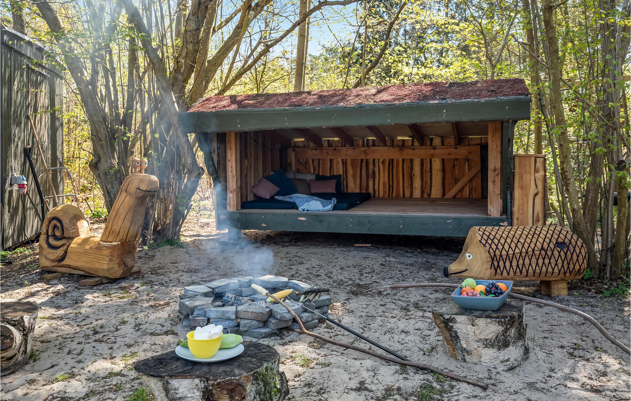 Om aftenen kan I tænde for terrassevarmeren og bage snobrød og skumfiduser ved husets bålplads. Til huset hører et udespa (april til oktober) til skøn feriewellness og en udebruser med varmt vand til at skylle sandet af sig eller nyde et bad under åben himmel. Der er også et shelter, så I kan tilbringe natten under åben himmel.