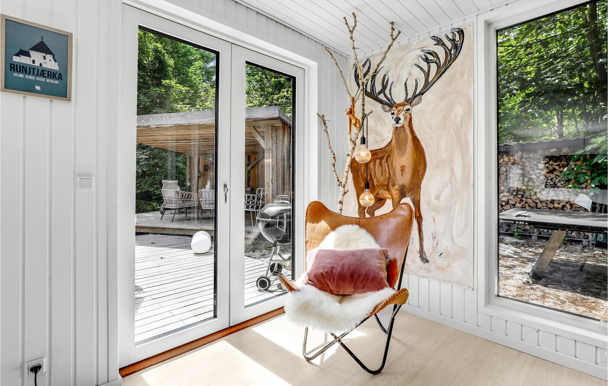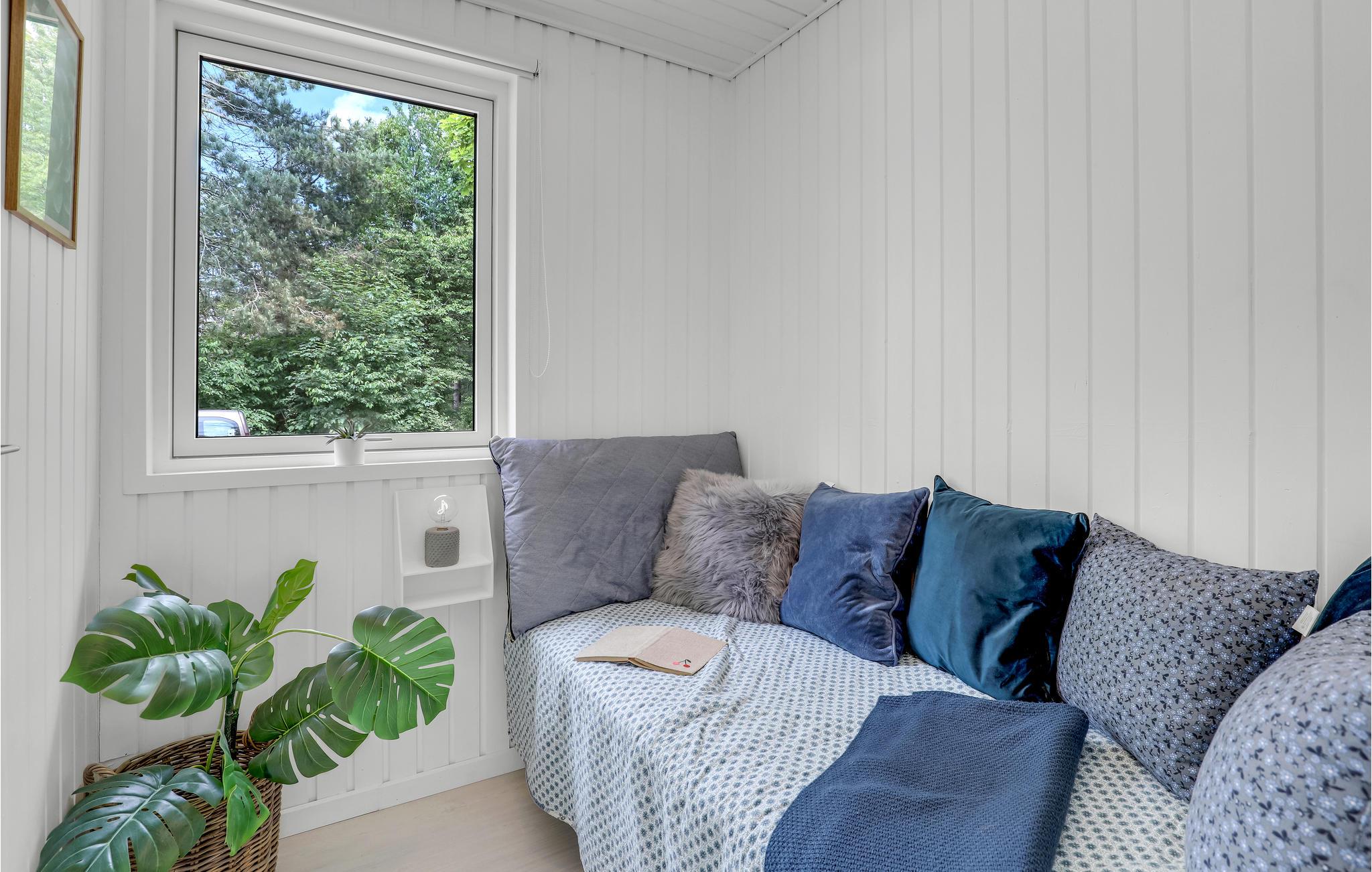 Husets naturlige samlingspunkt er den store stue med spiseplads, TV, brændeovn og varmepumpe (som også kan køle). I det åbne køkken med bl.a. vinkøleskab er det en fornøjelse at lave mad. Huset har fire gode soveværelser, der er indrettet med klædeskabe og bøjlestang. Badeværelset har behagelig gulvvarme. Derudover består huset af et arbejdsværelse og et gæstetoilet med gulvvarme samt vaskemaskine. Et af mange højdepunkter ved huset er aktivitetsrummet, hvor I kan tage et spil billard eller airhockey, så I kommer bestemt ikke til at kede jer. I udhuset findes en sauna, tørretumbler, barnestol, barneseng inkl. dyne, pude og betræk til juniordyne, parasoller, picnickurve, køletaske og tæpper.