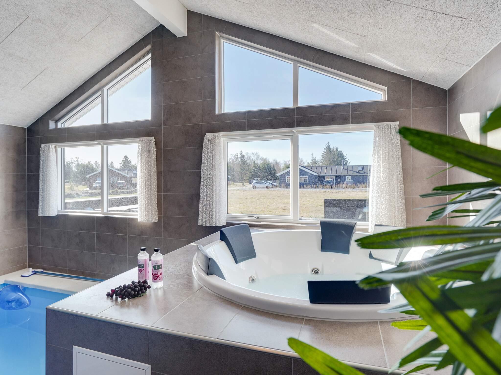 Feriehuset har to forskellige aktivitetsområder, som sikrer masser af grin og store smil uanset årstiden. Feriehuset har sit helt eget poolområde med 18 m2 swimmingpool, sauna og spabad til 4-6 personer. Poolen har en vandrutsjebane og et modstrømssystem og vil med garanti blive et hit hos børnene.