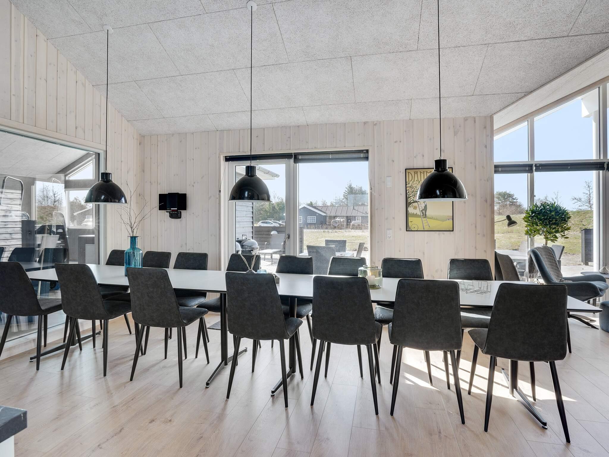 Midt i huset ligger køkken-alrummet, som også har god plads til alle gæsterne. Der er højt til loftet og god plads omkring spisebordet, så alle kan samles. Køkkenet er veludstyret med 2 ovne, 2 opvaskemaskiner og ekstra kogeplader – så store middage burde ikke være et problem.