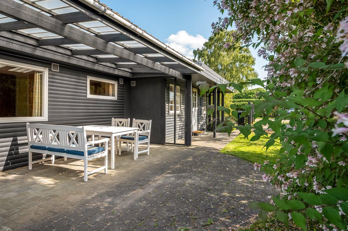 Ferieboligen er beliggende på en 631 m² stor havegrund. Der er 75 m til havet. Nærmeste forretning er beliggende i en afstand af 1500 m. Desuden er der 25 m² overdækket terrasse. Grill til rådighed. Parkering ved ferieboligen.