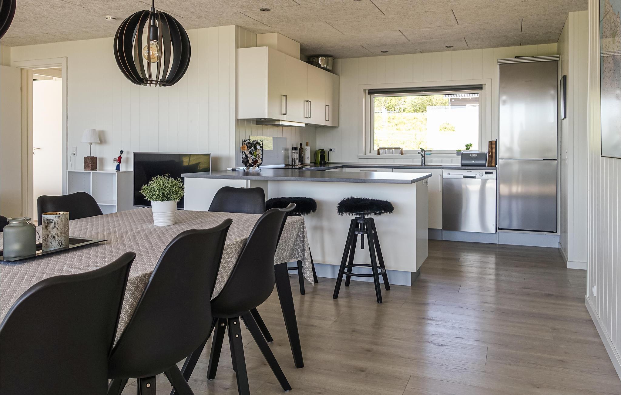 Velkommen til dette feriehus, der emmer af feriestemning. Husets hjerte er opholdsstuen med en dejlig spiseplads og et lækkert sofaarrangement med bl.a. TV, DVD, Xbox og Chromecast, der sikrer indendørsunderholdningen. Opholdsstuen ligger i åben forbindelse til det veludstyrede køkken, hvor der er ingen grænser for, hvilke lækre feriemåltider I kan tilberede. Begge de dejlige badeværelser har bruser, WC og behagelig gulvvarme.