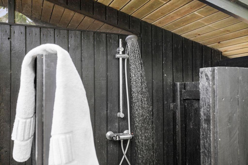 Udendørs: Huset er enormt hyggeligt, men haven er helt fantastisk. Der er hyggekroge alle vegne, bålplads, shelter, udendørs bruser og helt plan græsplæne, der indbyder til udendørs aktiviteter og leg. Herudover skønne og delvist overdækkede terrasser, hvor der kan grilles, spises, soles og slappes af.