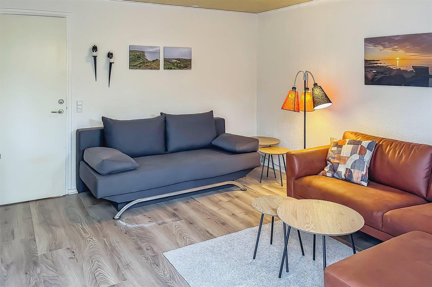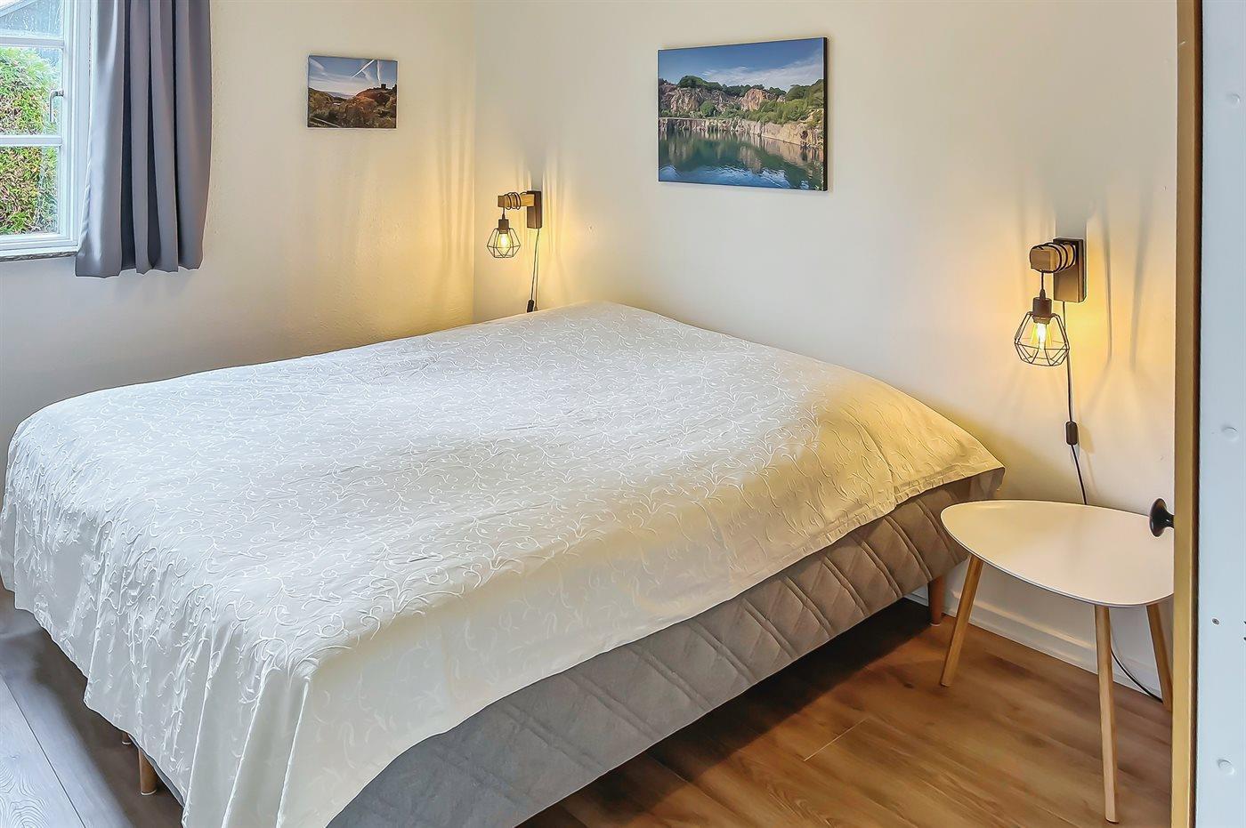 Der er i alt 1 soveværelse. Sovepladserne fordeler sig på: 2 sovepladser i dobbeltseng. 2 sovepladser i sovesofa (dobbelt). 2 af disse sovepladser befinder sig i stuen.