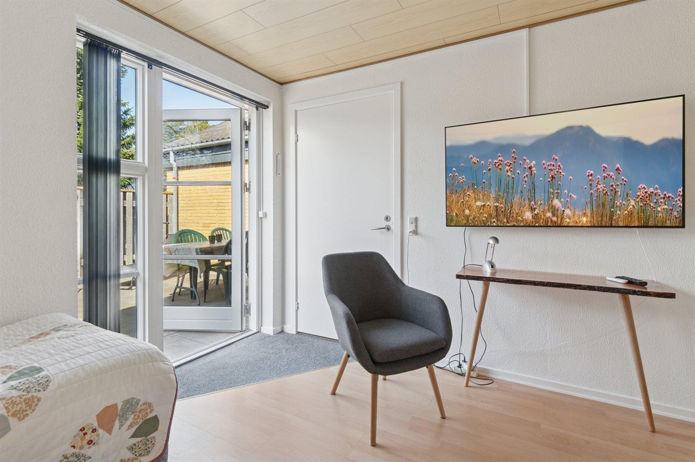 I ferieboligen er der 1 TV. 1 Smart-TV.1 Chromecast. TV via internet. Radio. Der er 1-3 danske kanaler. 1-3 svenske kanaler. 1-3 tyske kanaler. Der er trådløst internet til rådighed.