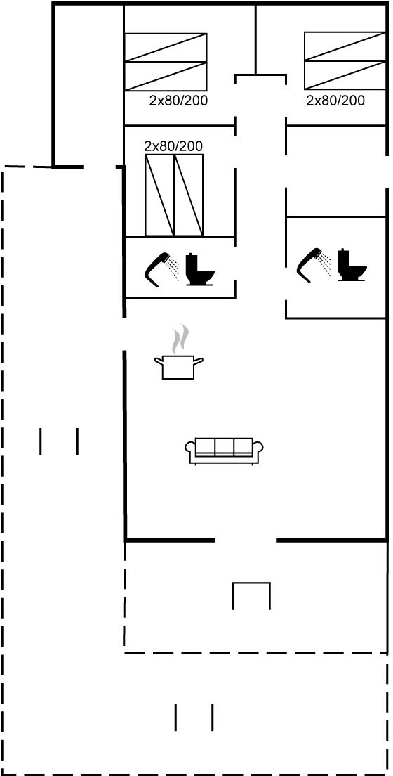 Der er 2 badeværelser med bruseniche og 2 toiletter. Der er gulvvarme på 2 badeværelser.