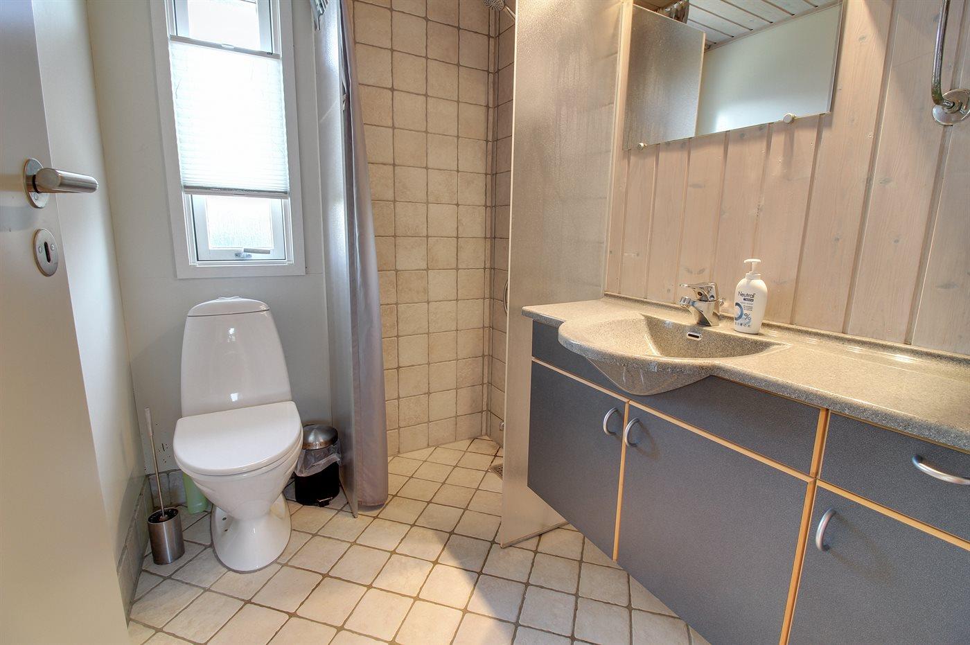 Der er 2 badeværelser med bruseniche og 2 toiletter. Der er gulvvarme på 2 badeværelser.
