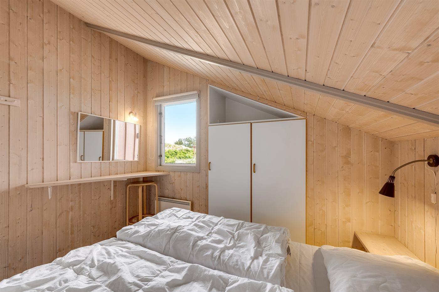 Der er i alt 4 soveværelser. Sovepladserne fordeler sig på: 4 sovepladser i dobbeltsenge. 4 sovepladser i enkeltsenge. Derudover er der 1 stk. barneseng.