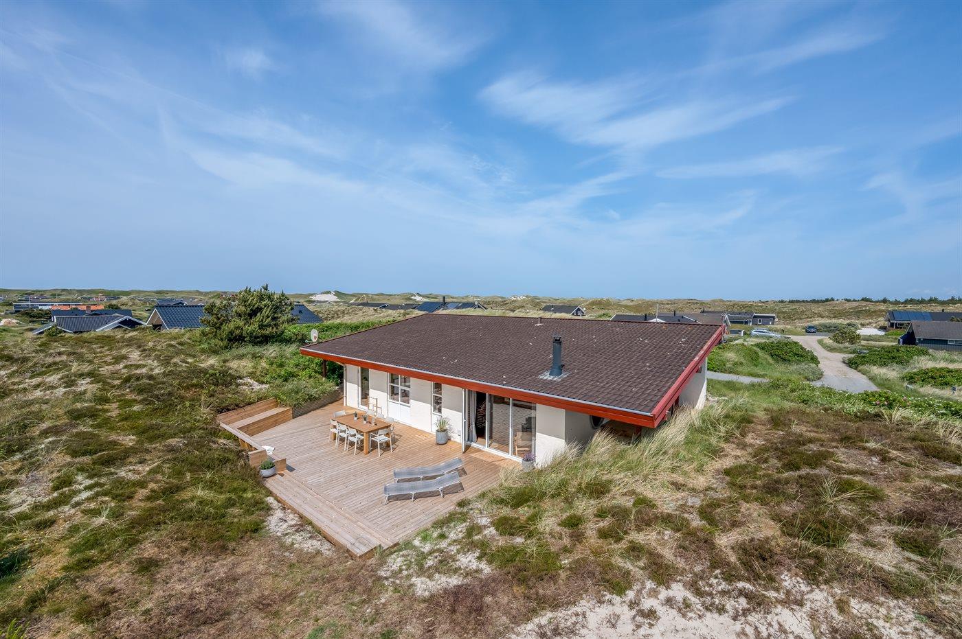 Drømmer I om at holde jeres ferie tæt på det brusende Vesterhav med de smukke sandstrande - i et helt unikt sommerhus, så kan dette spændende, arkitekttegnede sommerhus opfylde jeres feriedrømme.