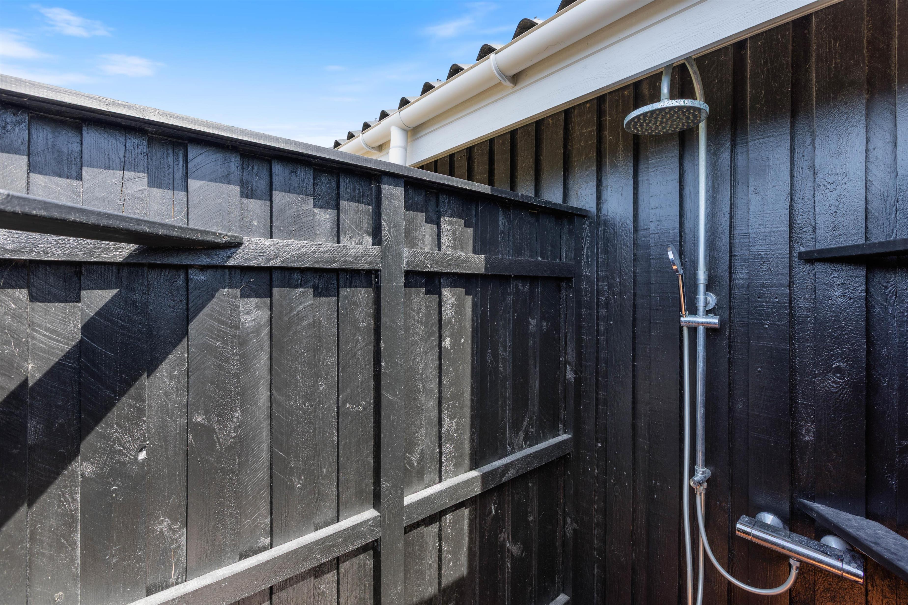 Feriehuset har en dejlig beliggenhed blot 500 meter fra stranden. Her har du mulighed for at komme ned og nyde stranden og havet hver dag, hvilket giver godt humør og fornyet energi. Sandet mellem tæerne kan du fra april til november skylle af under sommerhusets udebruser.