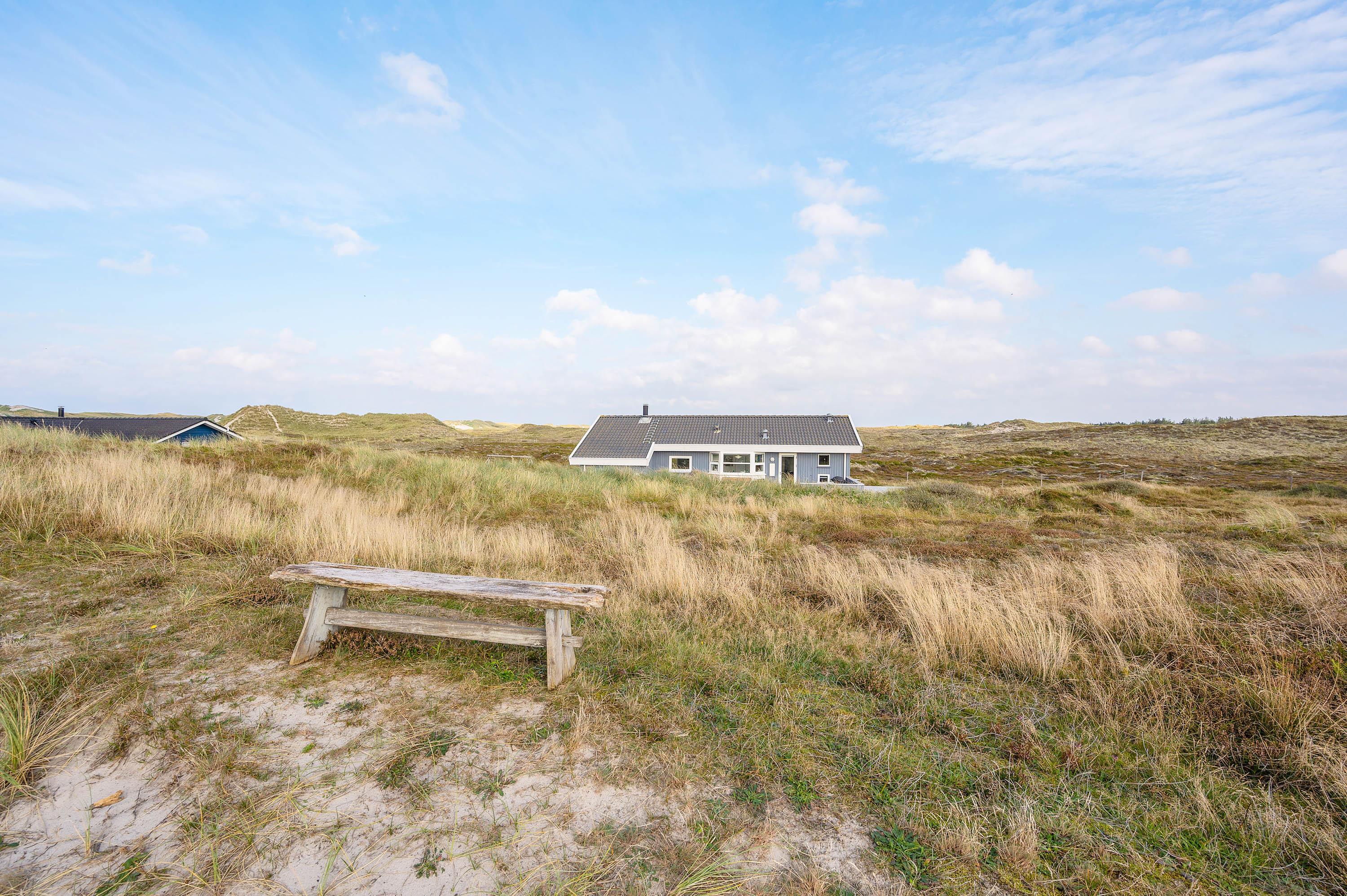 Sommerhuset har en fremragende beliggenhed tæt på et stort, fredet hedeområde med højt til himlen og udsyn over de store vidder i Vestjylland. Her er kun ca. 500 meter til de brede og indbydende sandstrande i Bjerregård.
