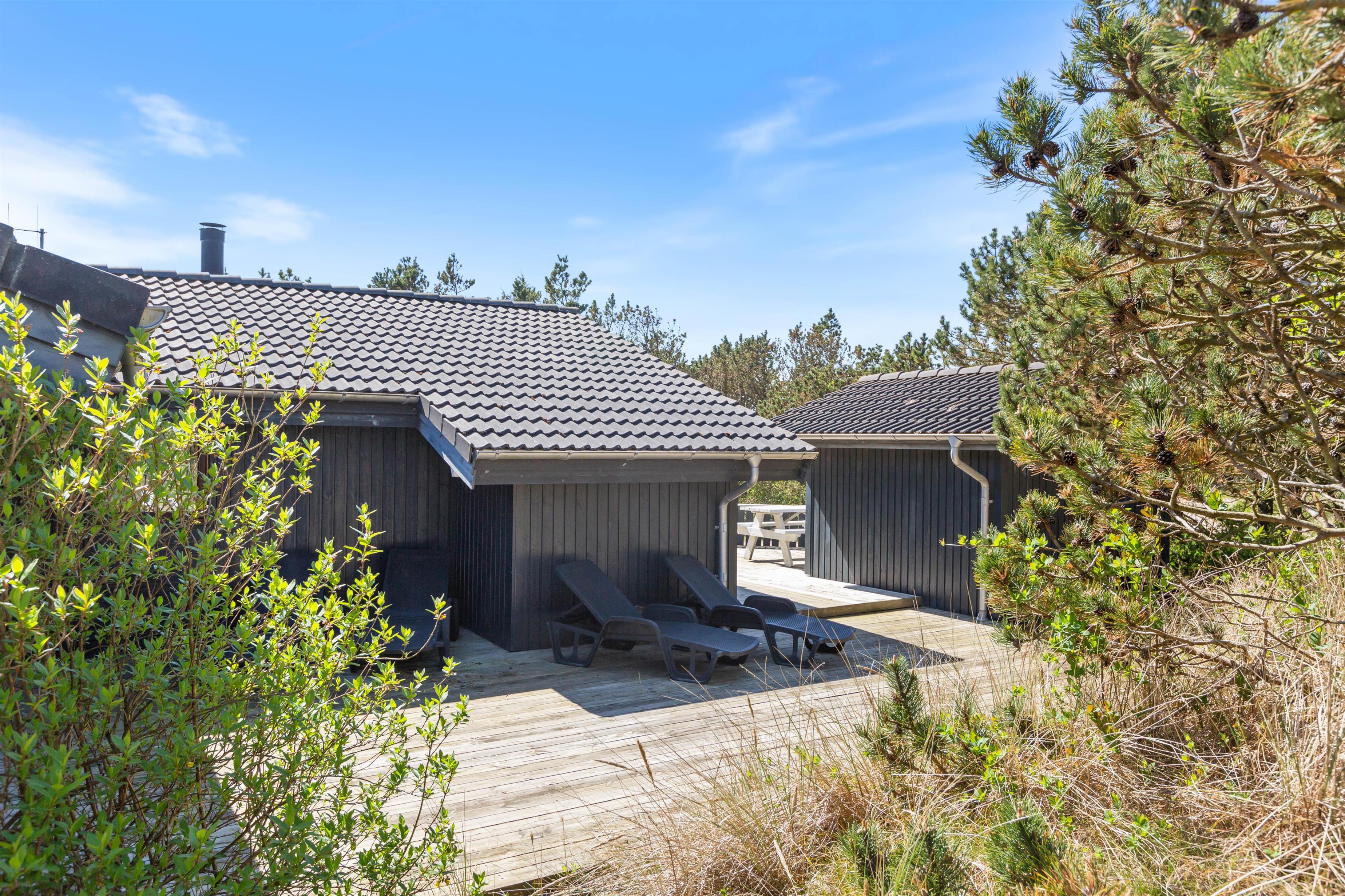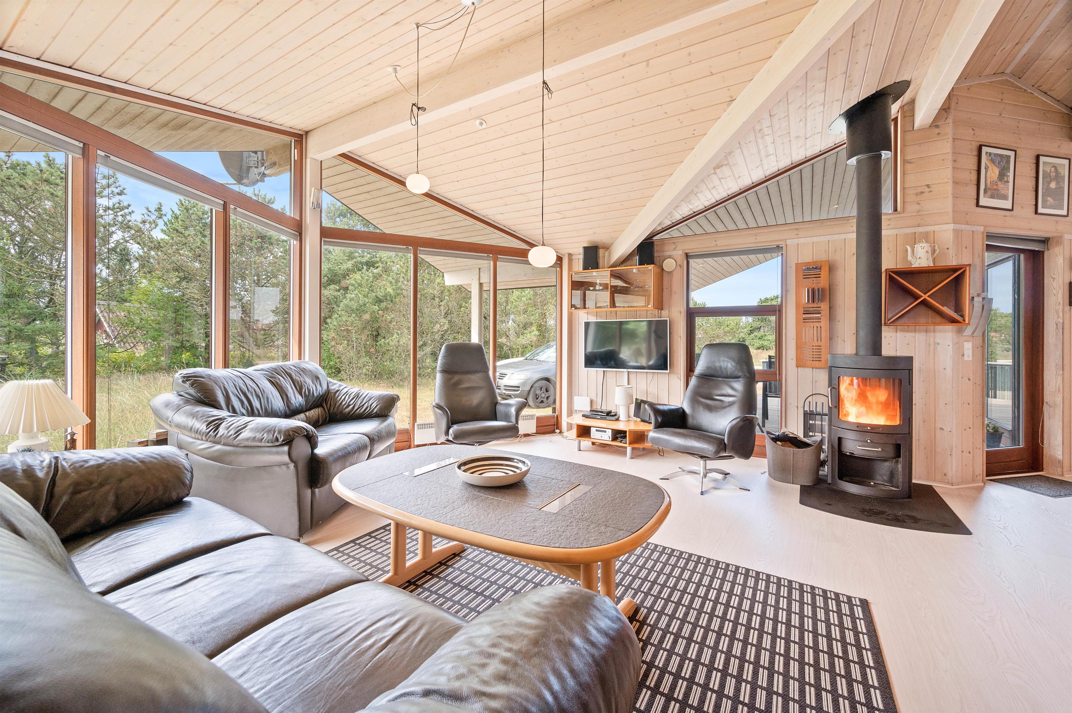 Mod vest ligger klitterne og den lange flotte sandstrand, som byder på smukke oplevelser og lange spadsereture. Efter en lang travetur kan du slappe af i sommerhuset, på sofaen foran brændeovnen, eller hvad med at slutte dagen af med en tur i boblebadet?