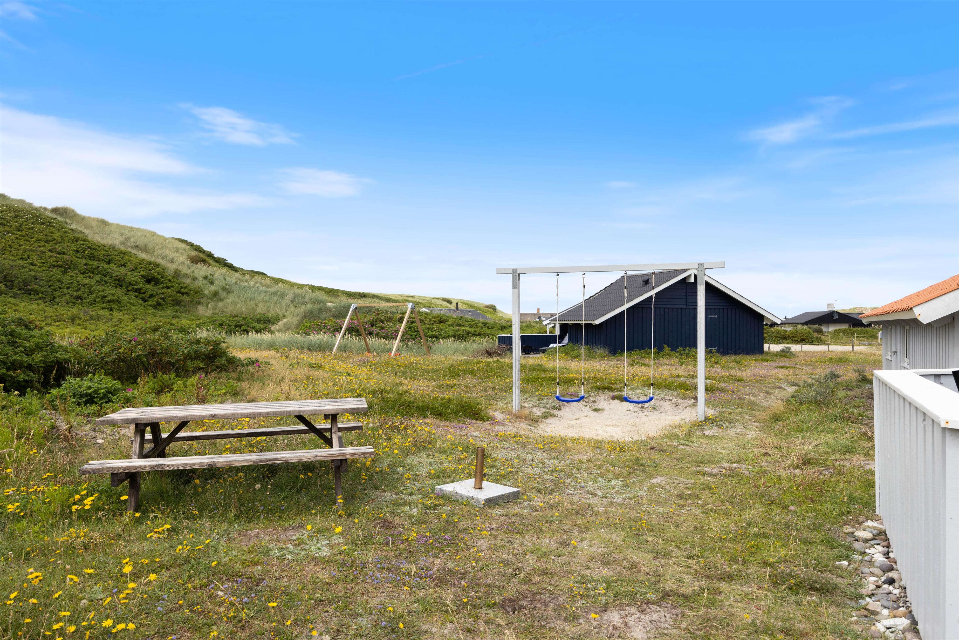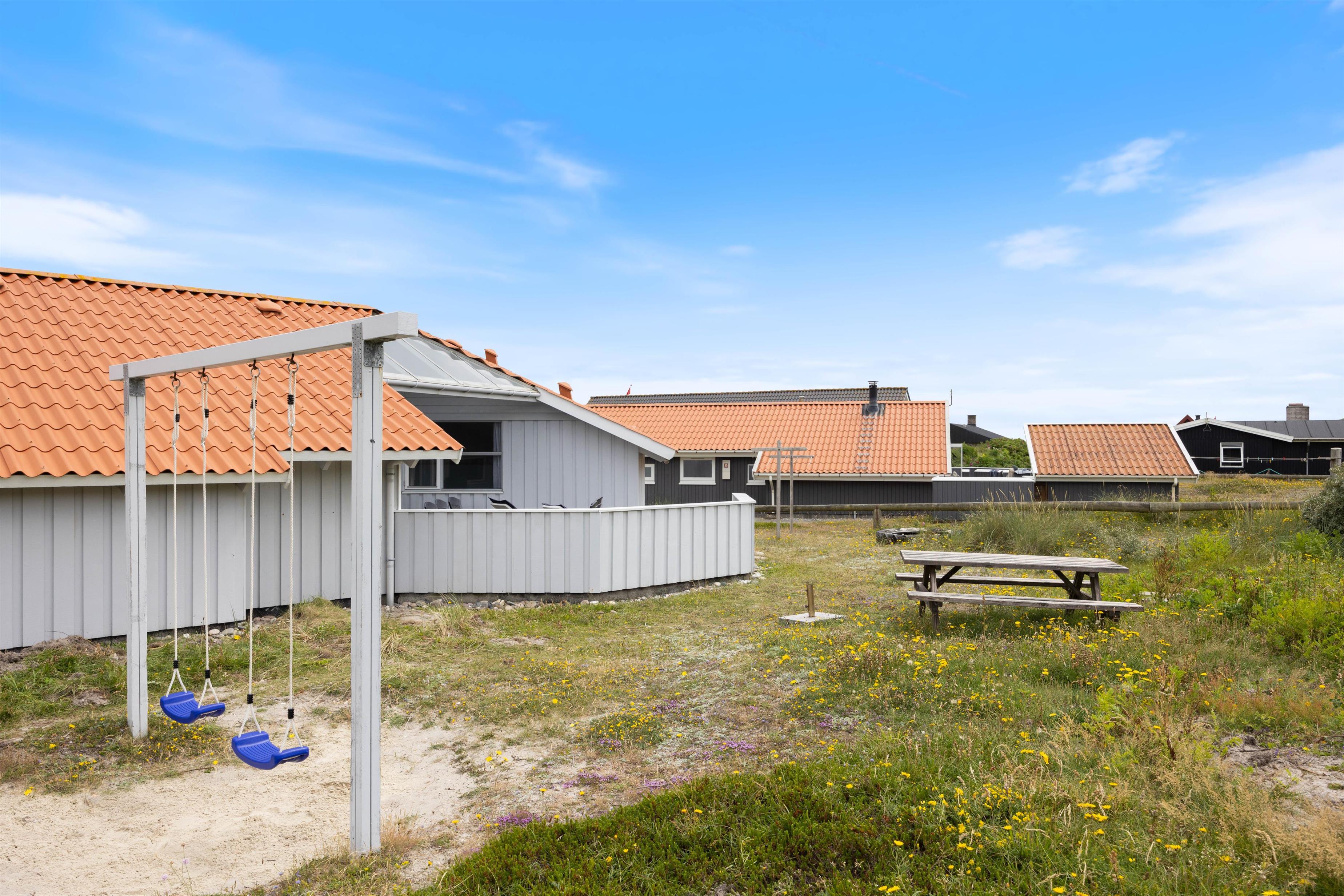 Rauhesvej 63 er beliggende på en smuk klitgrund få meter fra havet, der indbyder til lange gåture, en dukkert eller blot kan høres som baggrundsmusik på terrassen. Rundt om huset er der nemlig to fine træterrasse, begge afskærmet og klar med havemøbler. Her kan I nyde solskinstimerne og runde dagen af med et lækkert måltid fra grillen. Nyd maden sammen med et køligt glas rosé, spil kort og planlæg morgendagens program. Imens kan børnene lege på grunden, hvor I både finder sandkasse og gynger.