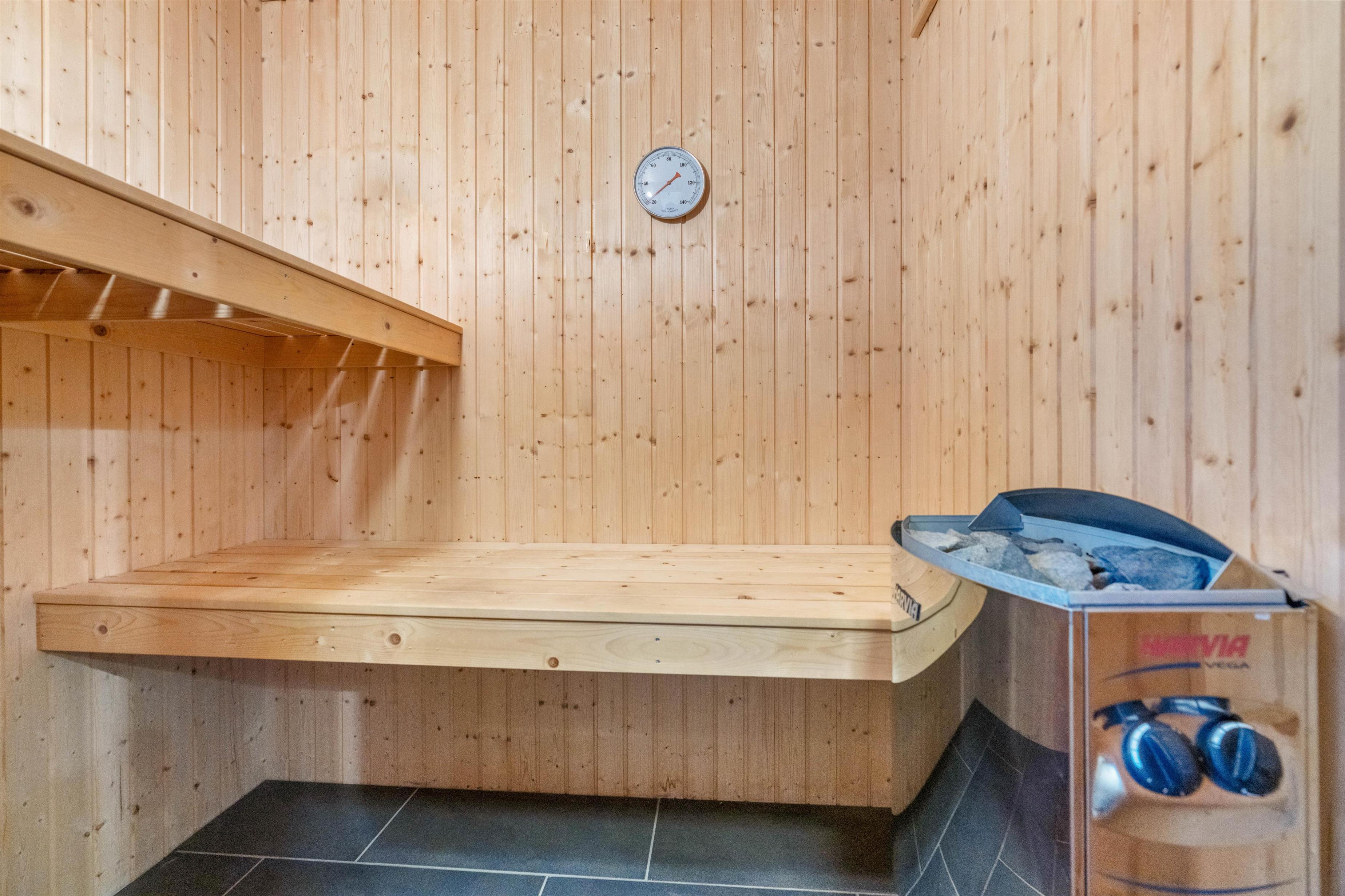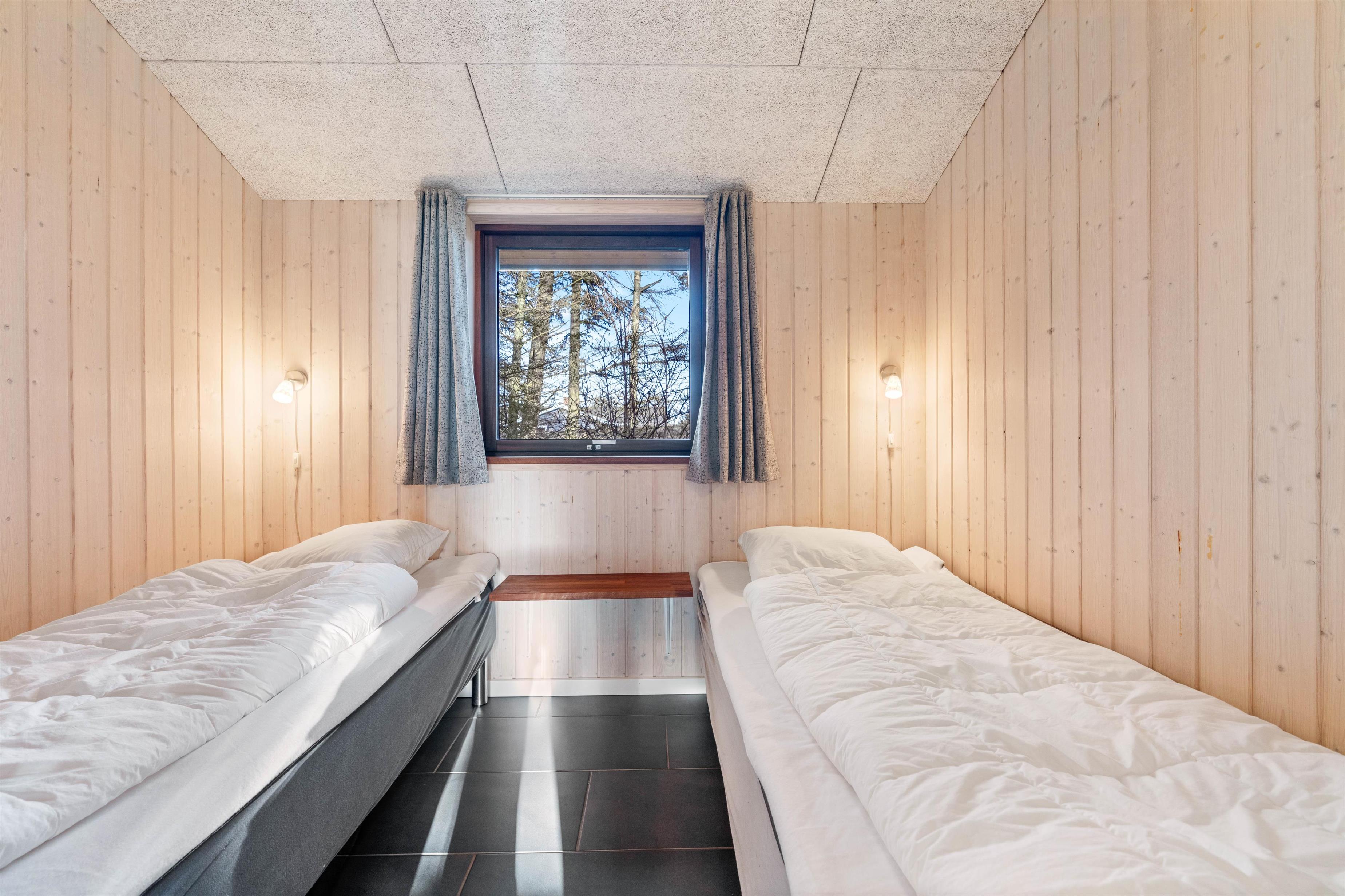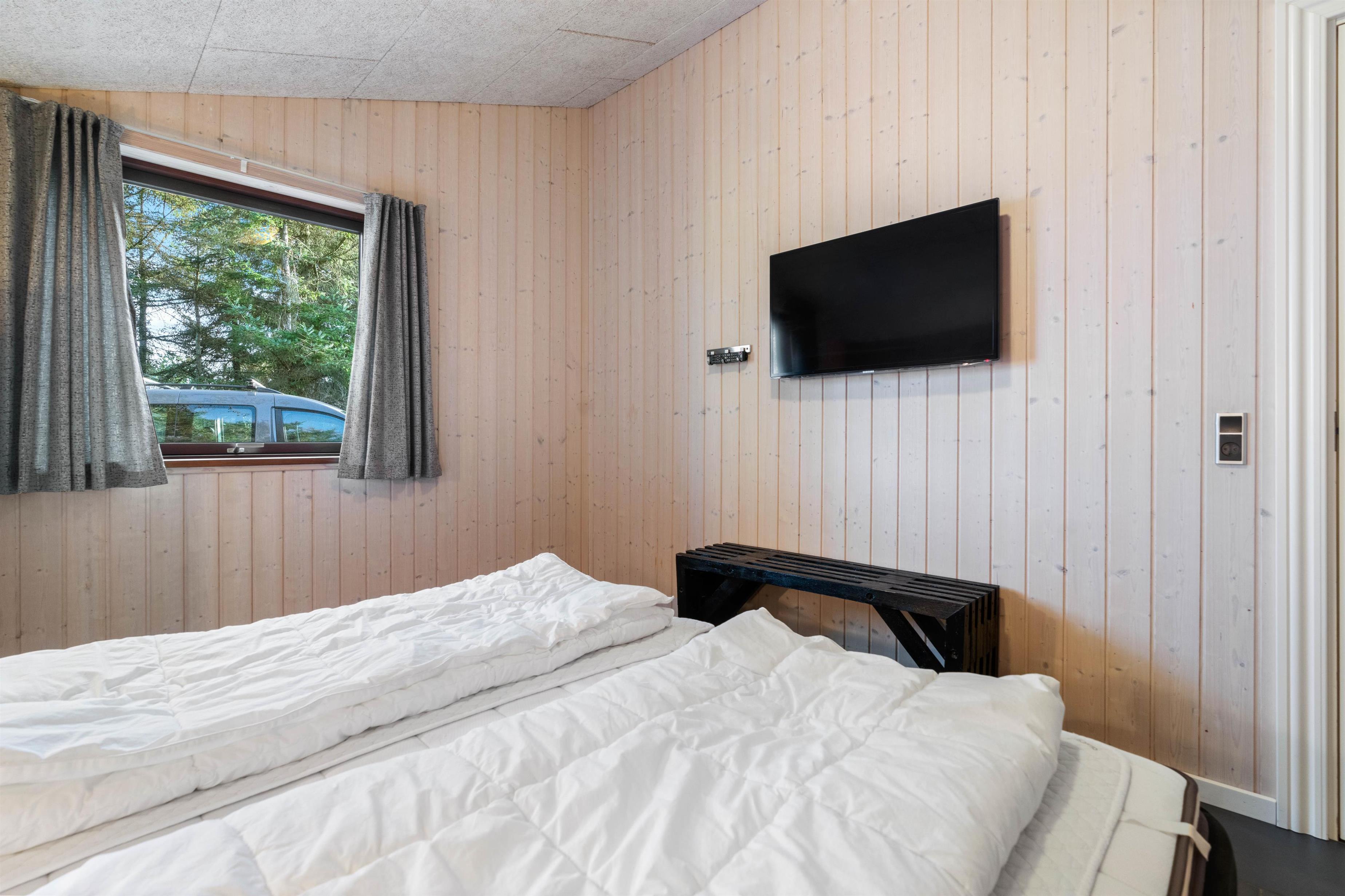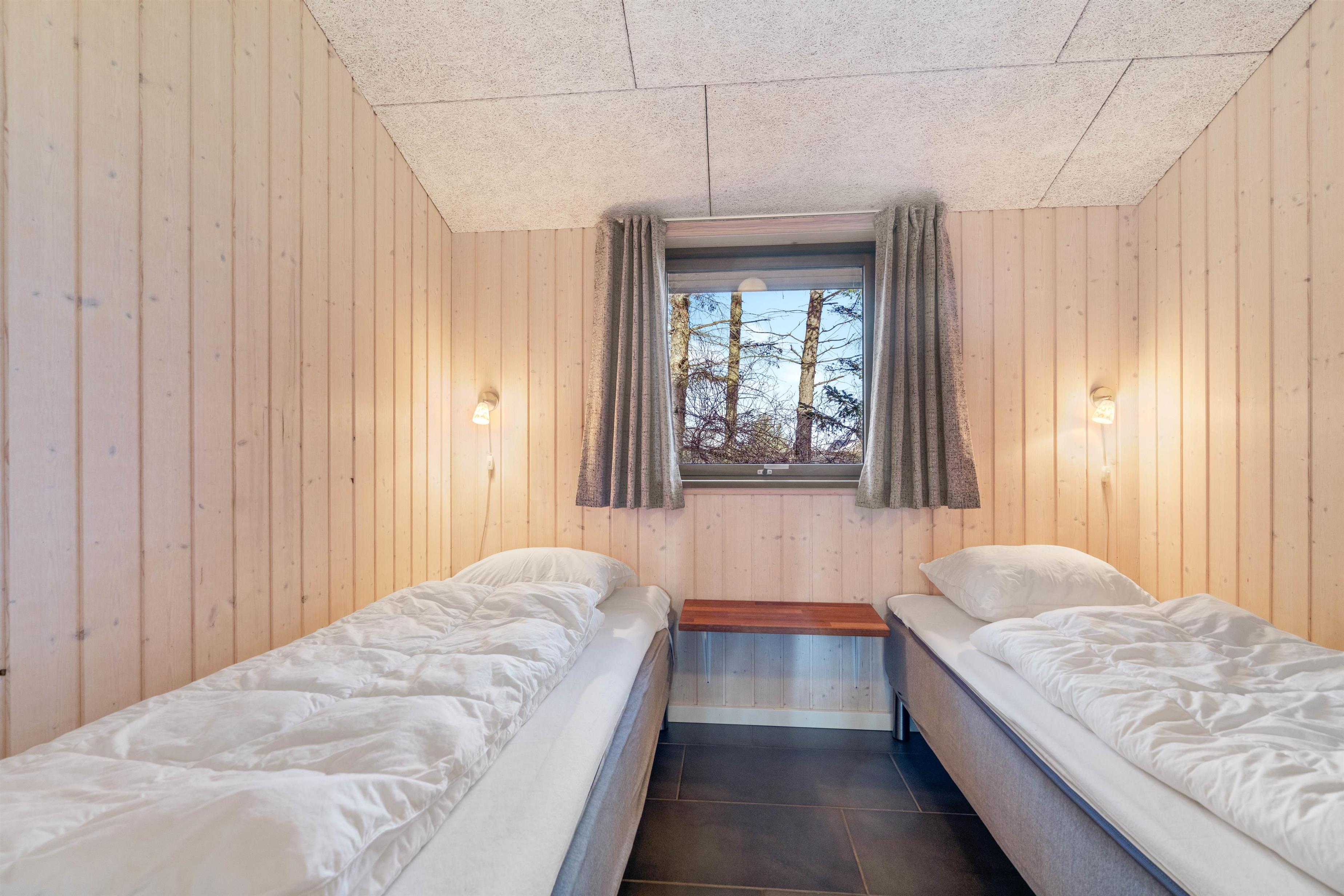 Der er 4 soveværelser, 2 af værelserne har dobbelt senge og fladskærm og de 2 sidste har hver 2 enkelt senge. Der er 2 badeværelser, begge med bruseniche. Det store badeværelse har endvidere en 2 pers. hjørnespa og en sauna.