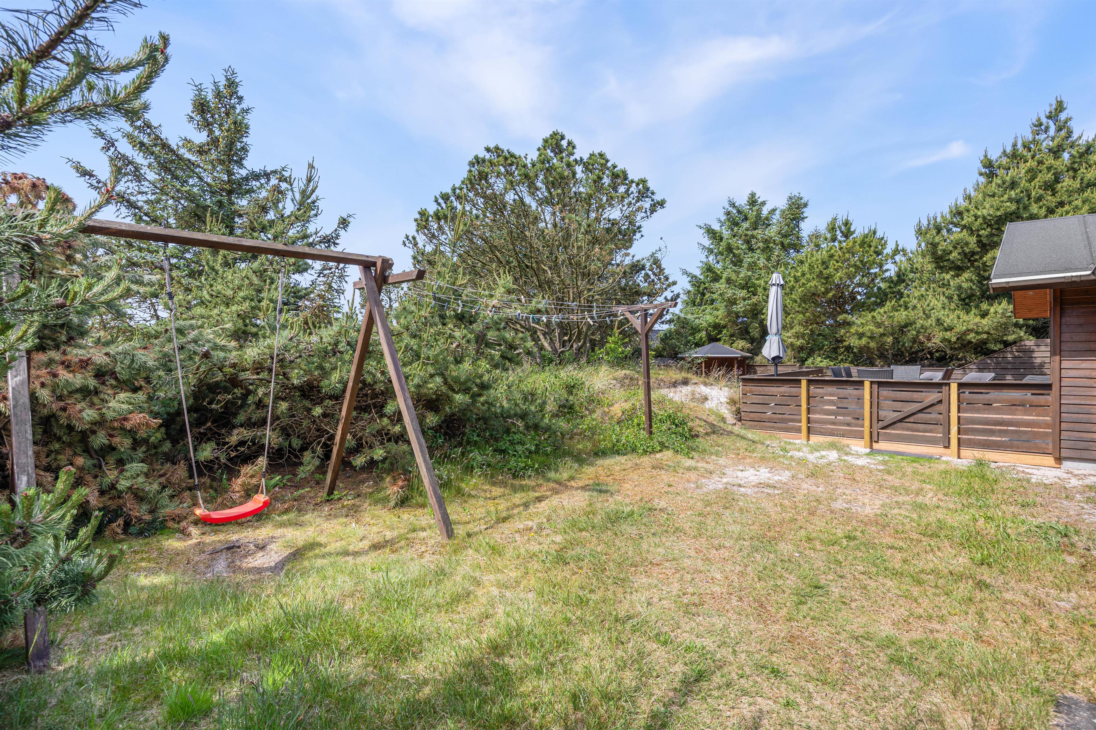 For børnene er der både en sandkasse og en gynge, ligesom den lukkede terrasse er ideel for både mindre børn og hunde. Som et ekstra plus er der en shelter ved sommerhuset, så I kan sove ude i den friske havluft på en lun sommernat.