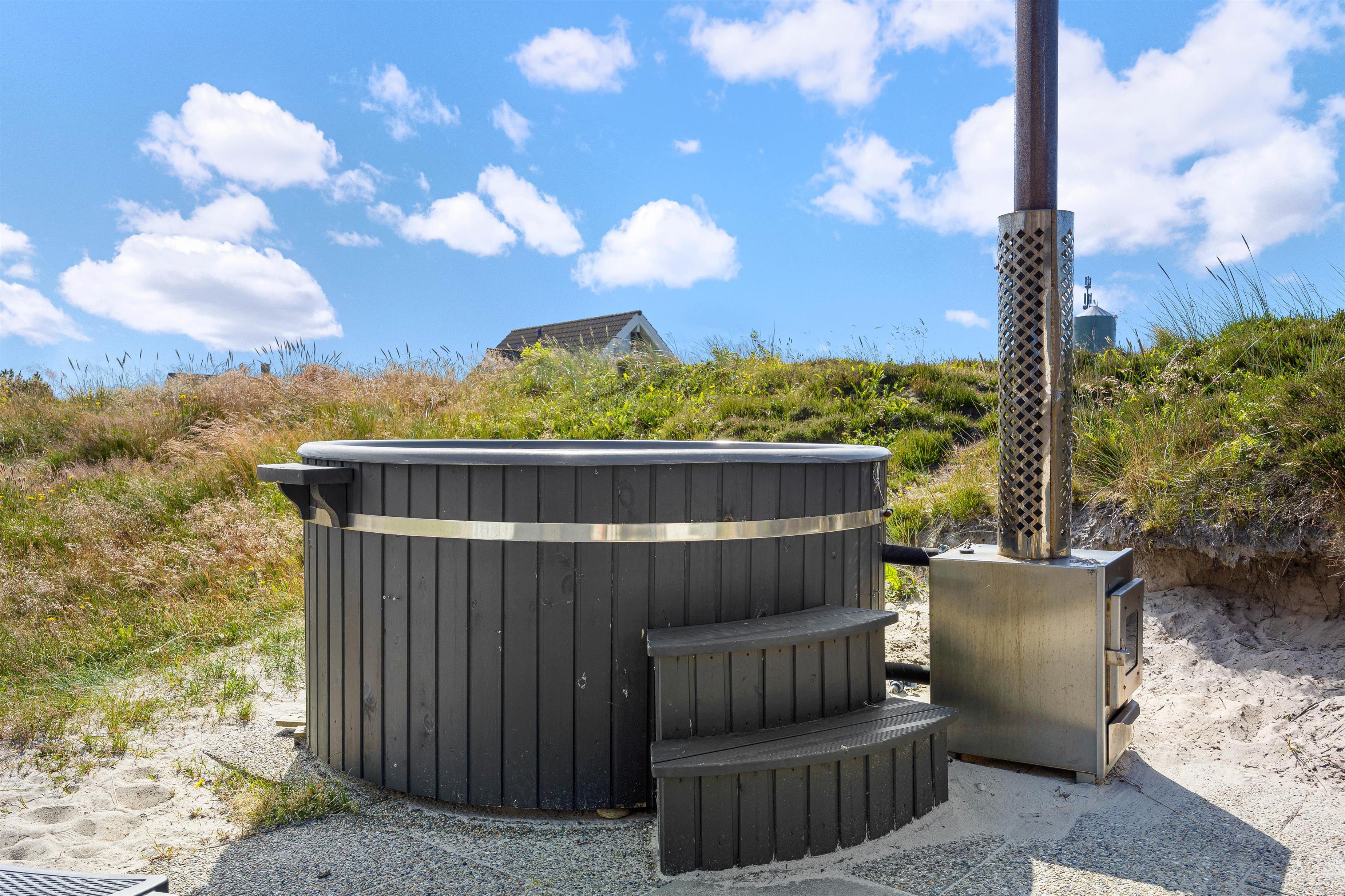 Den ultimative nydelse og ren afslapning må være at sidde i vildmarksbadet og nyde solnedgangen farve himlen orangerød over klitterne – med havets brusen og salte duft i baggrunden, må være balsam for krop og sjæl.
