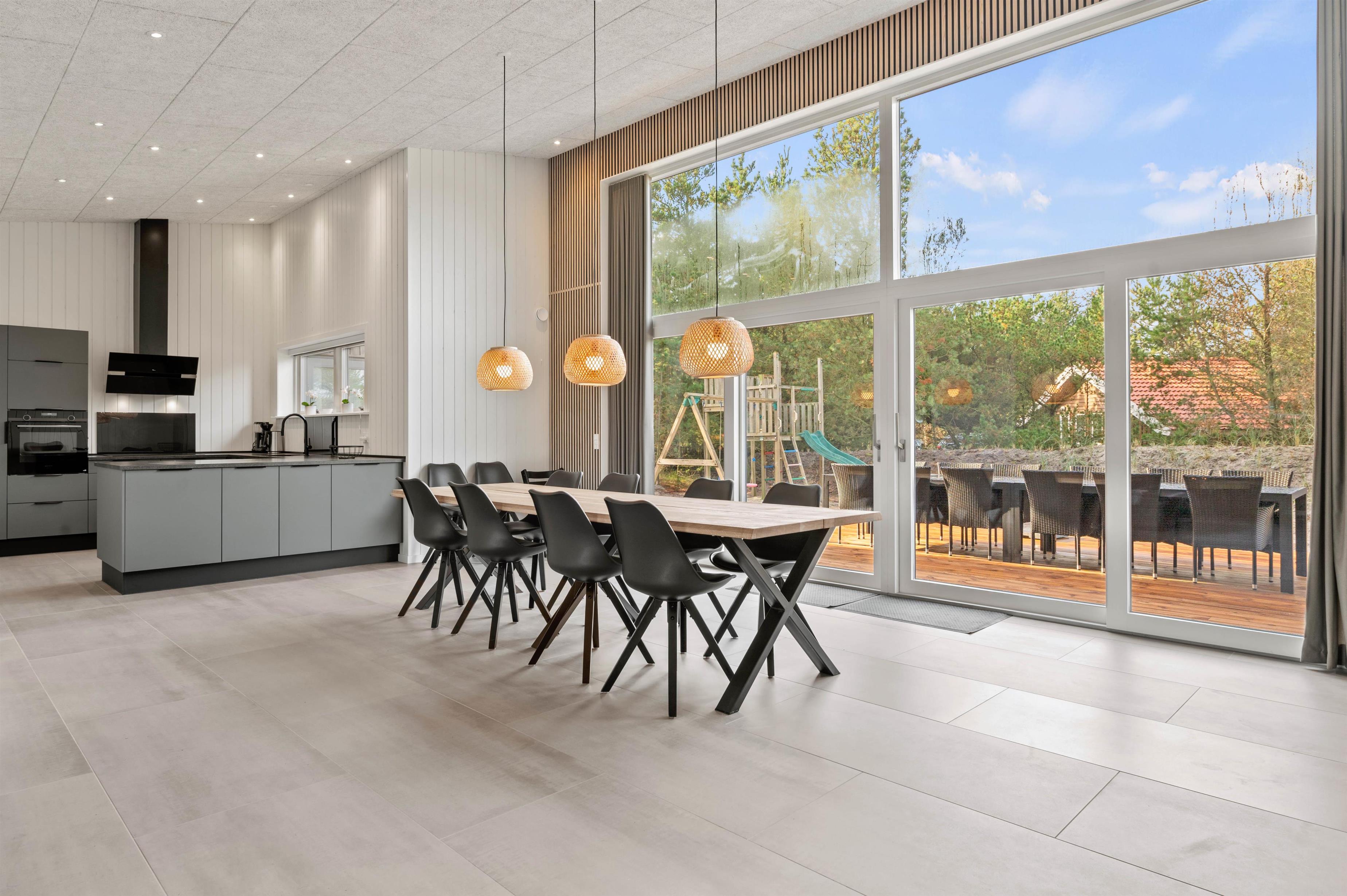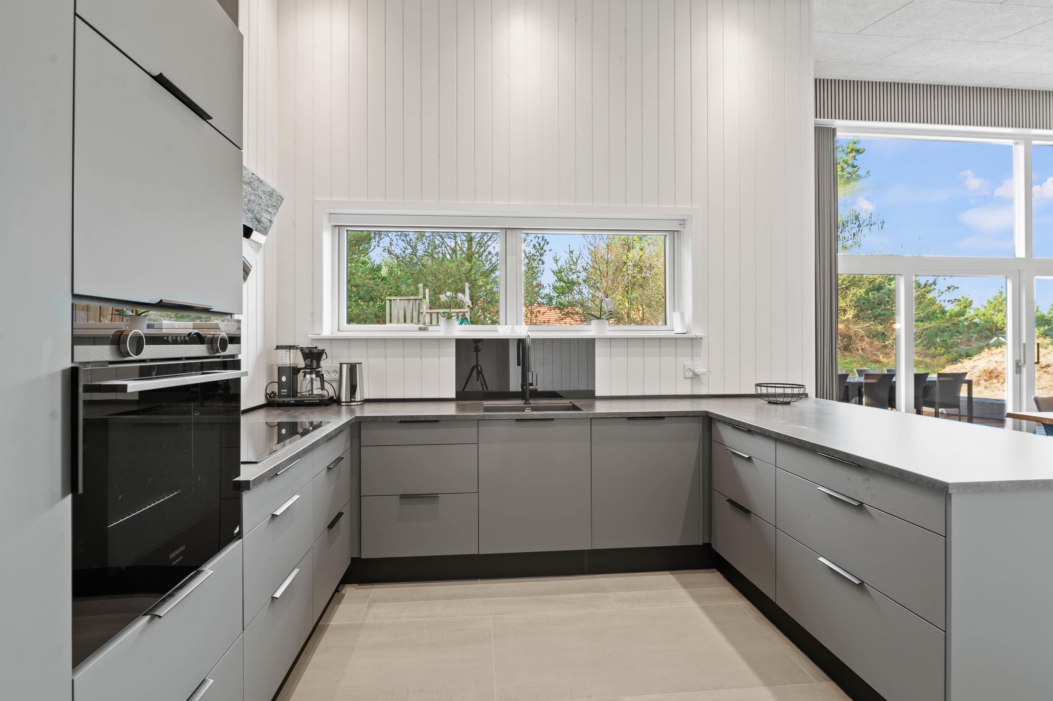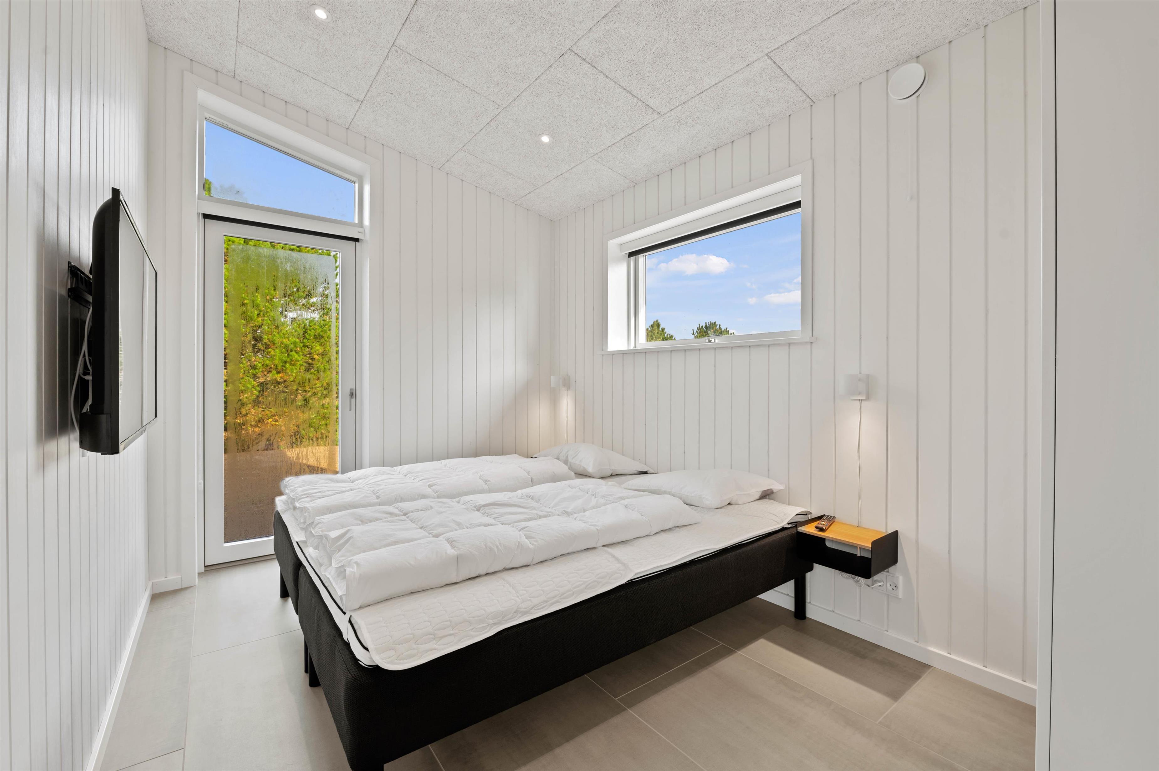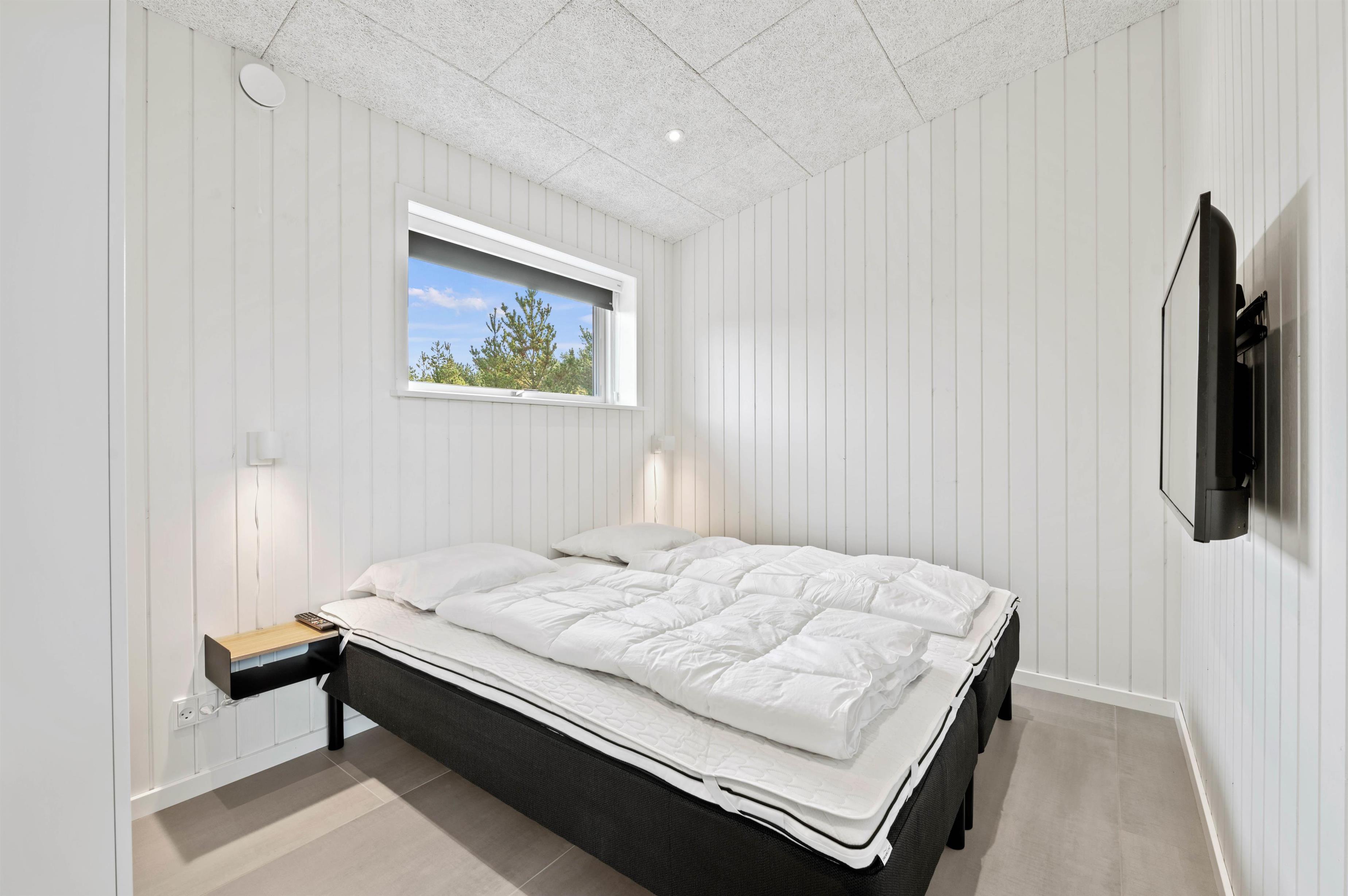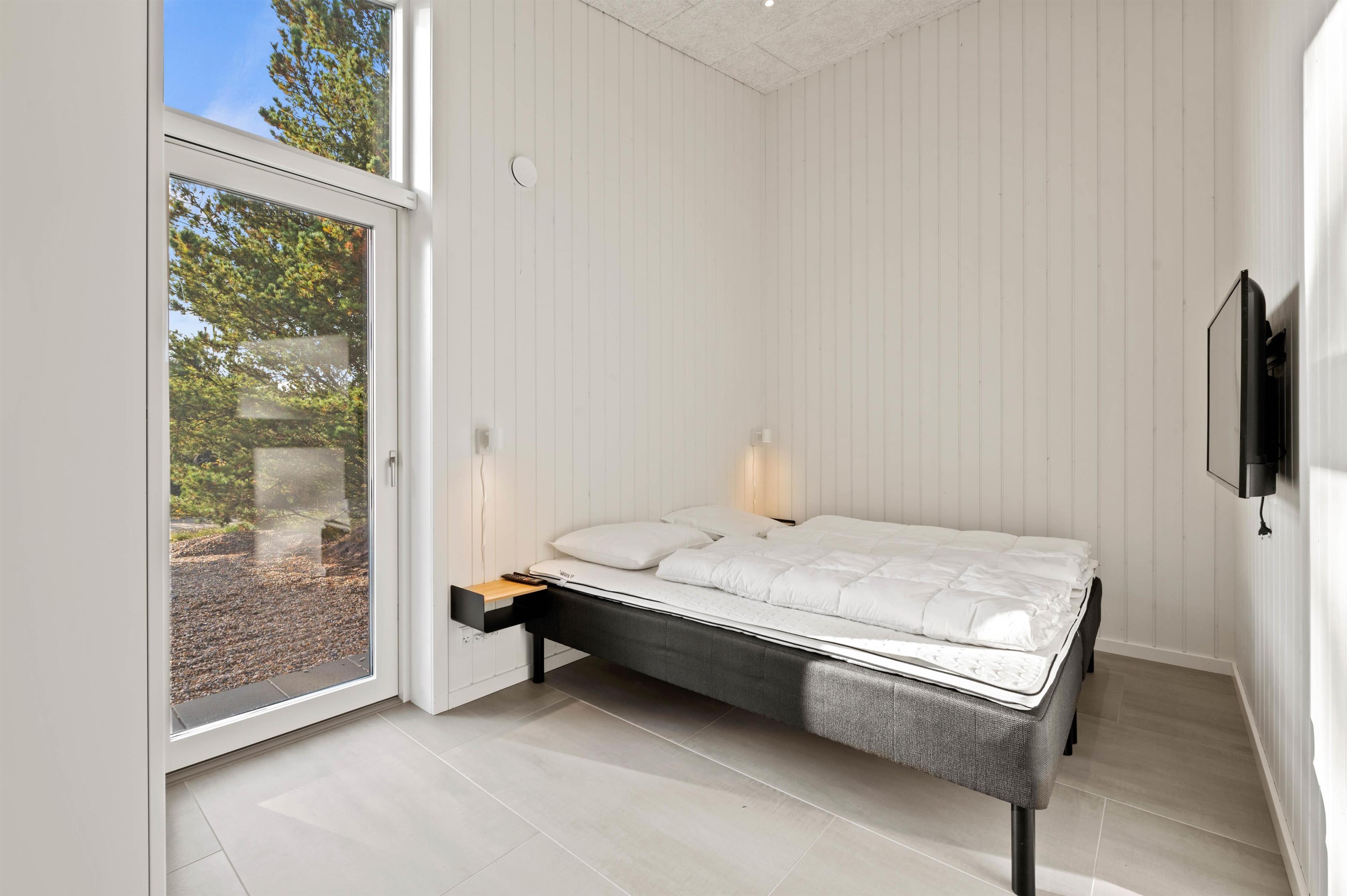 Det moderne køkken er veludstyret og indbyder til at lave madaftener sammen. Særligt praktisk her er frysemuligheden med 150 liter - en drøm for enhver lystfisker. Alle soveværelser har tv, så har du brug for lidt tid for dig selv, er her en oplagt mulighed. De i alt 5 soveværelser er opdelt i 2 værelser med dobbeltsenge og 3 værelser med 2 enkeltsenge i hver. De komfortable senge giver mulighed for en rolig og afslappende søvn i den friske vesterhavsluft.