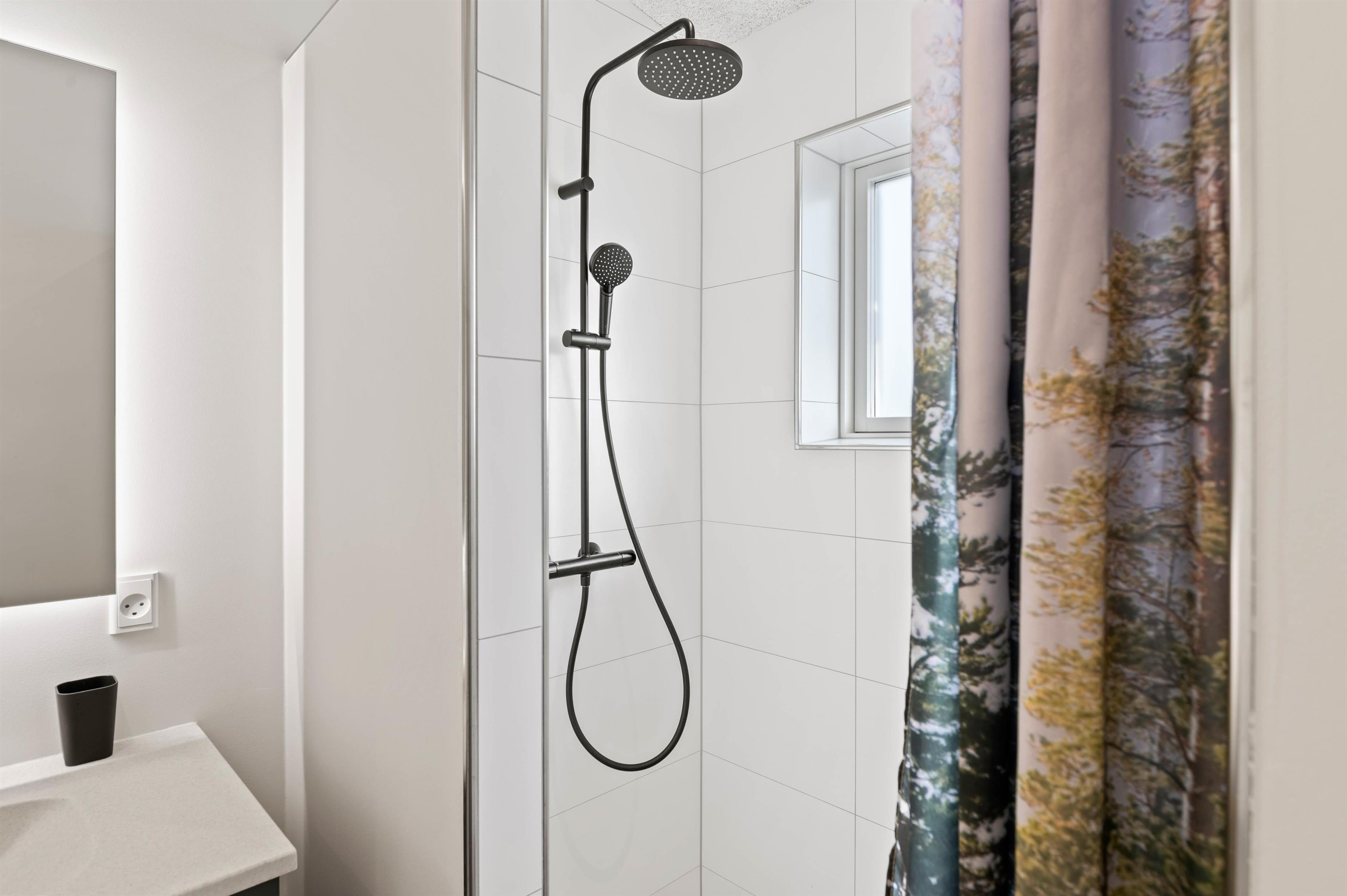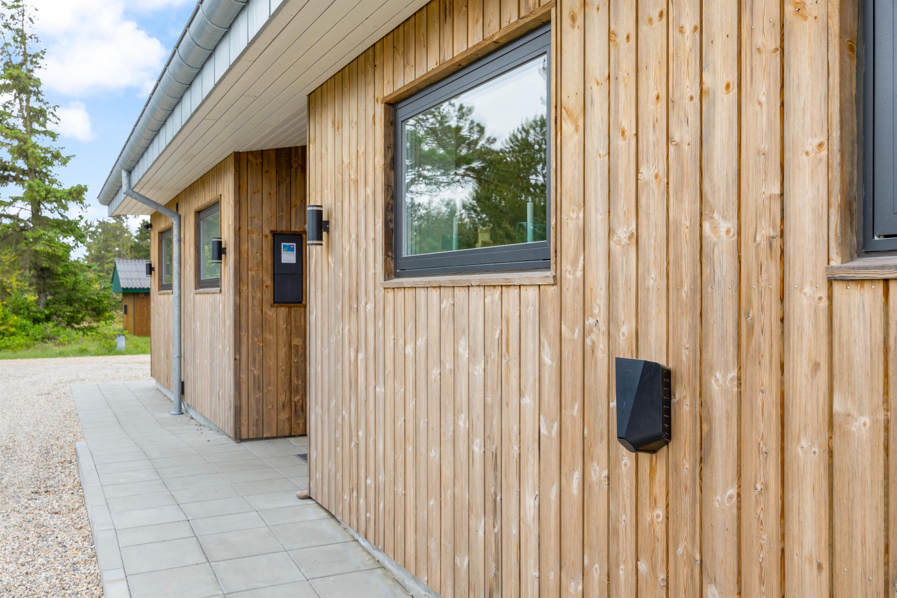 Den udendørs bruser er også særlig praktisk, for eksempel til at skylle sandet af fra en dag på stranden eller for at opfriske efter en tur i sauna eller spa. Udebruseren kan benyttes fra april til november. Feriehuset har også ladestik til elbil. Lademuligheden for el bilen er en ladestander, medbring eget kabel.
