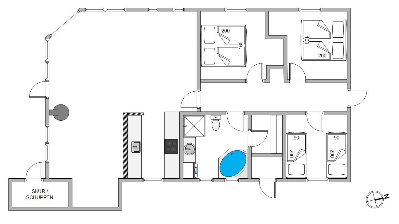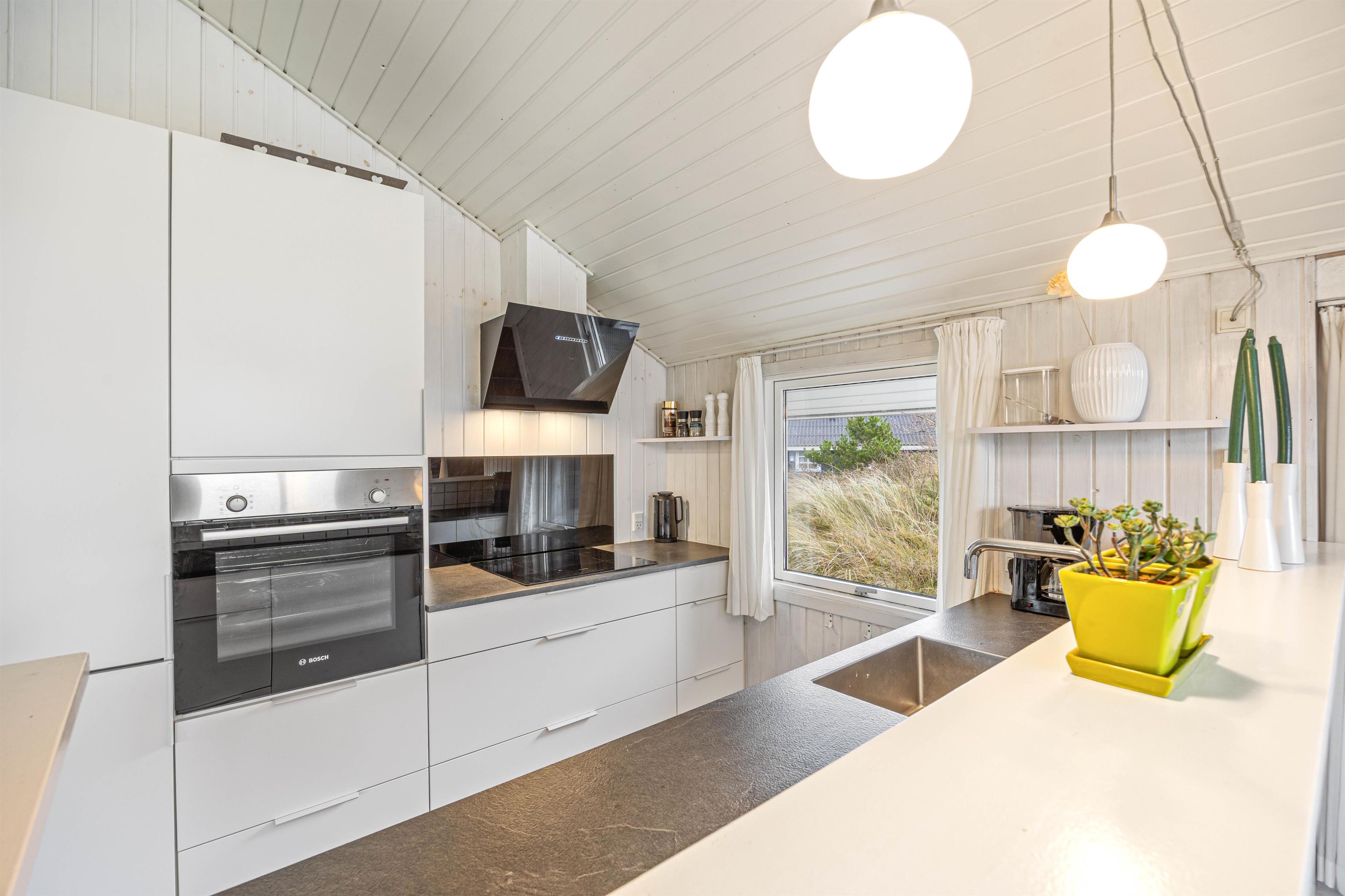 Uanset årstid, vind og vejr så indbyder dette velholdte feriehus altid til en afslappende ferie med lange gåture på stranden. Og om sommeren er den store terrasse perfekt til afslappende stunder og hyggelige grillaftener, mens I om vinteren kan hygge Jer med sauna, spabad og den lune brændeovn. Sommerhuset har desuden et ladestik til elbiler.