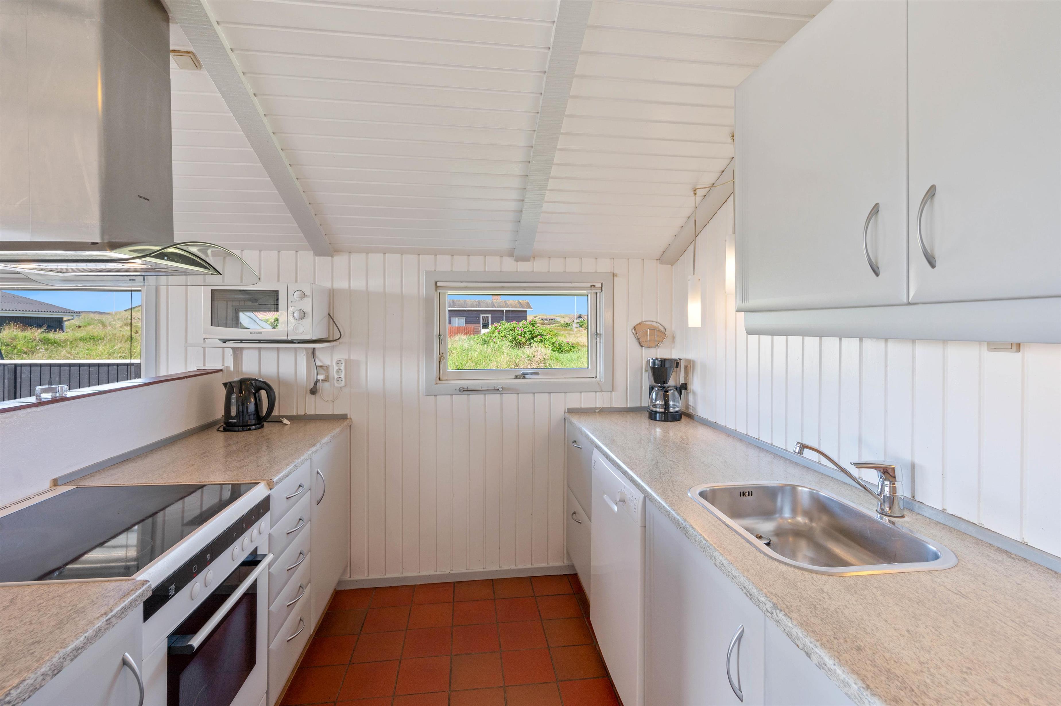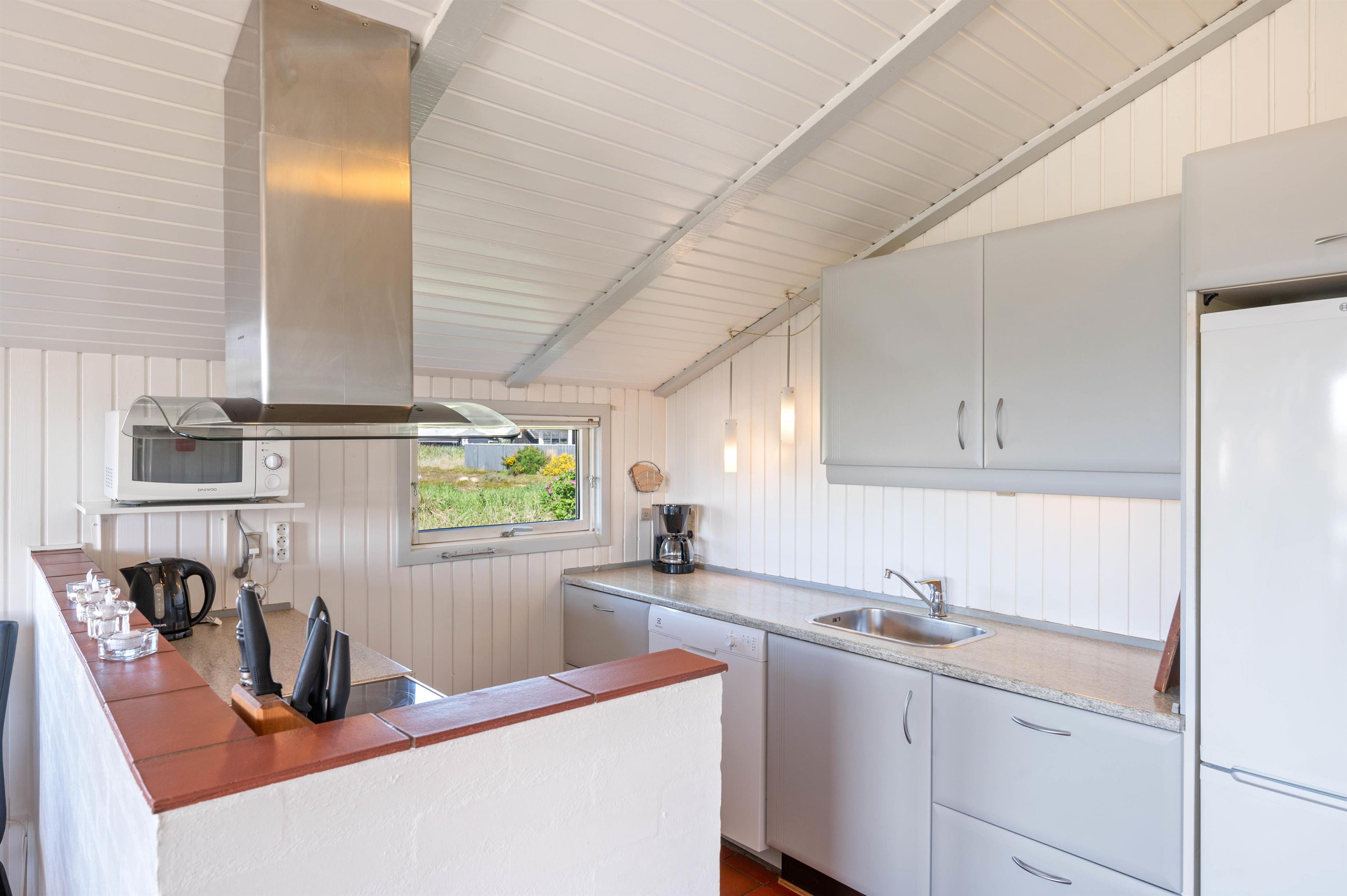 Køkkenet er veludstyret, så I nemt og bekvemt kan tilberede lækre måltider under ferien. Og da det er i åben forbindelse med stuen og spiseafdelingen, kan “kokken” sagtens hygge med resten af familien og samtidig holde gang i gryderne.