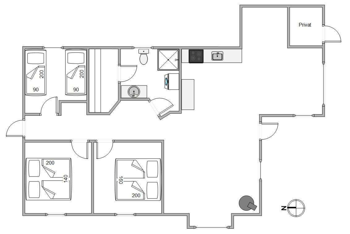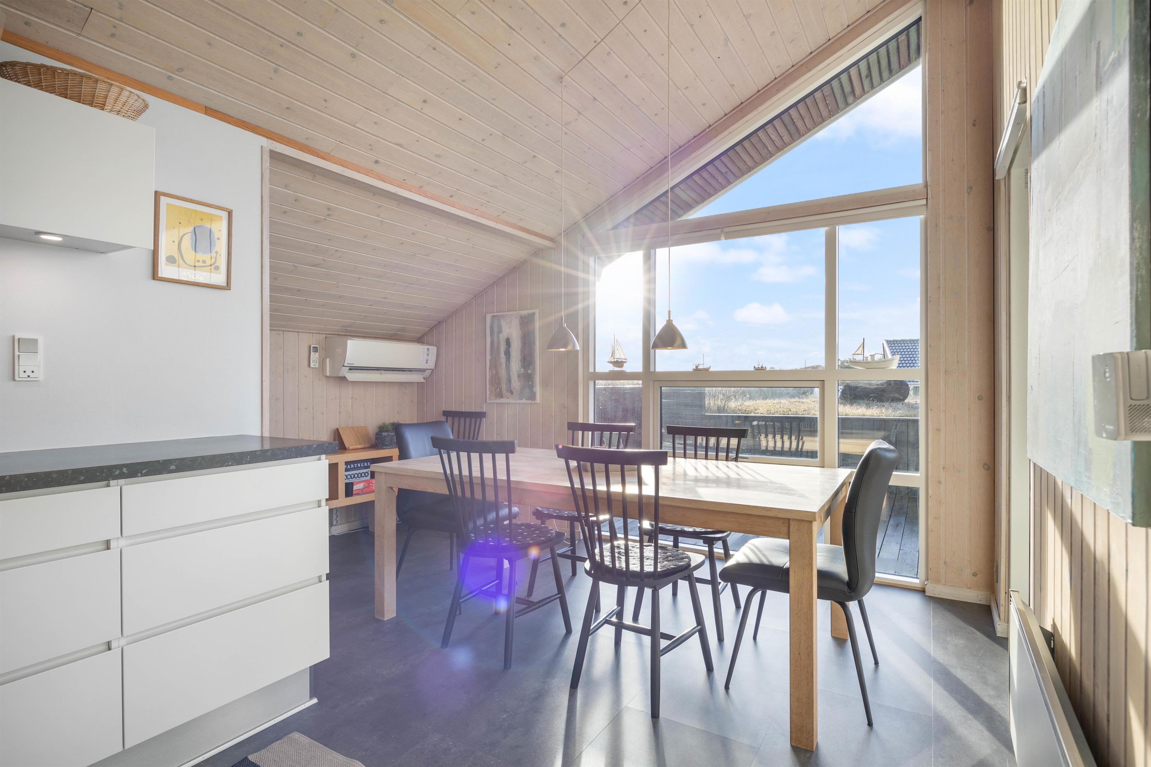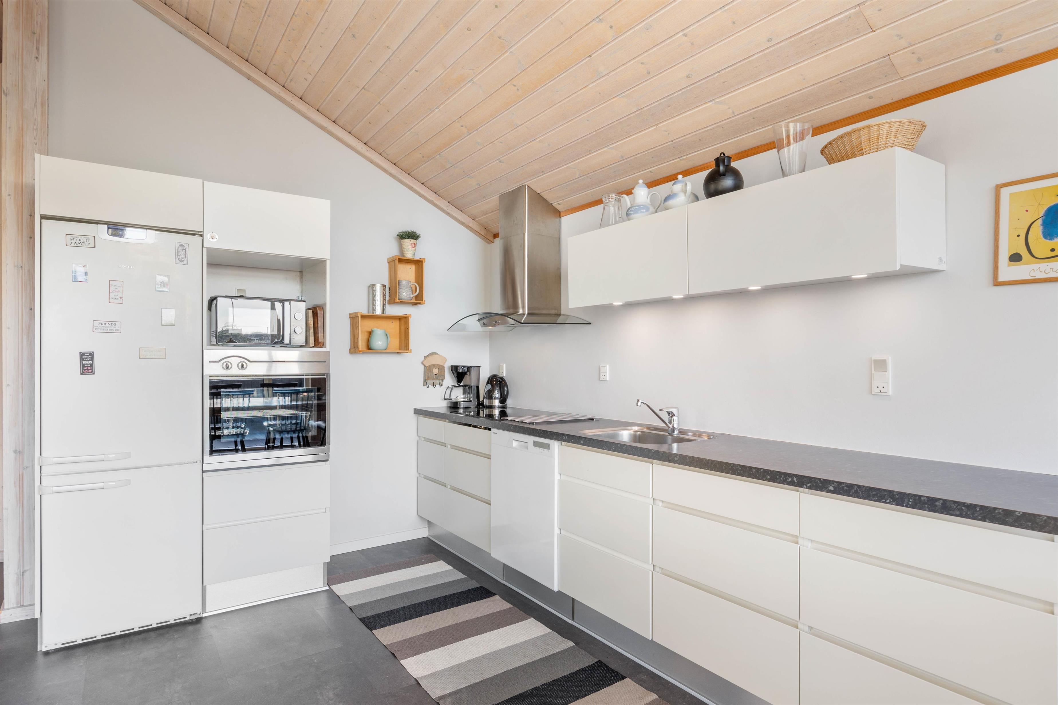 Sommerhuset er delvis renoveret i 2020. I køkkenet finder I opvaskemaskine, mikroovn og induktionskomfur – faciliteter, der letter køkkentjansen, så kokken også kan slappe af i ferien. Køkkenalrum og opholdsstue ligger i åben forbindelse, og herfra er der udgang til sydvestvendt terrasse.