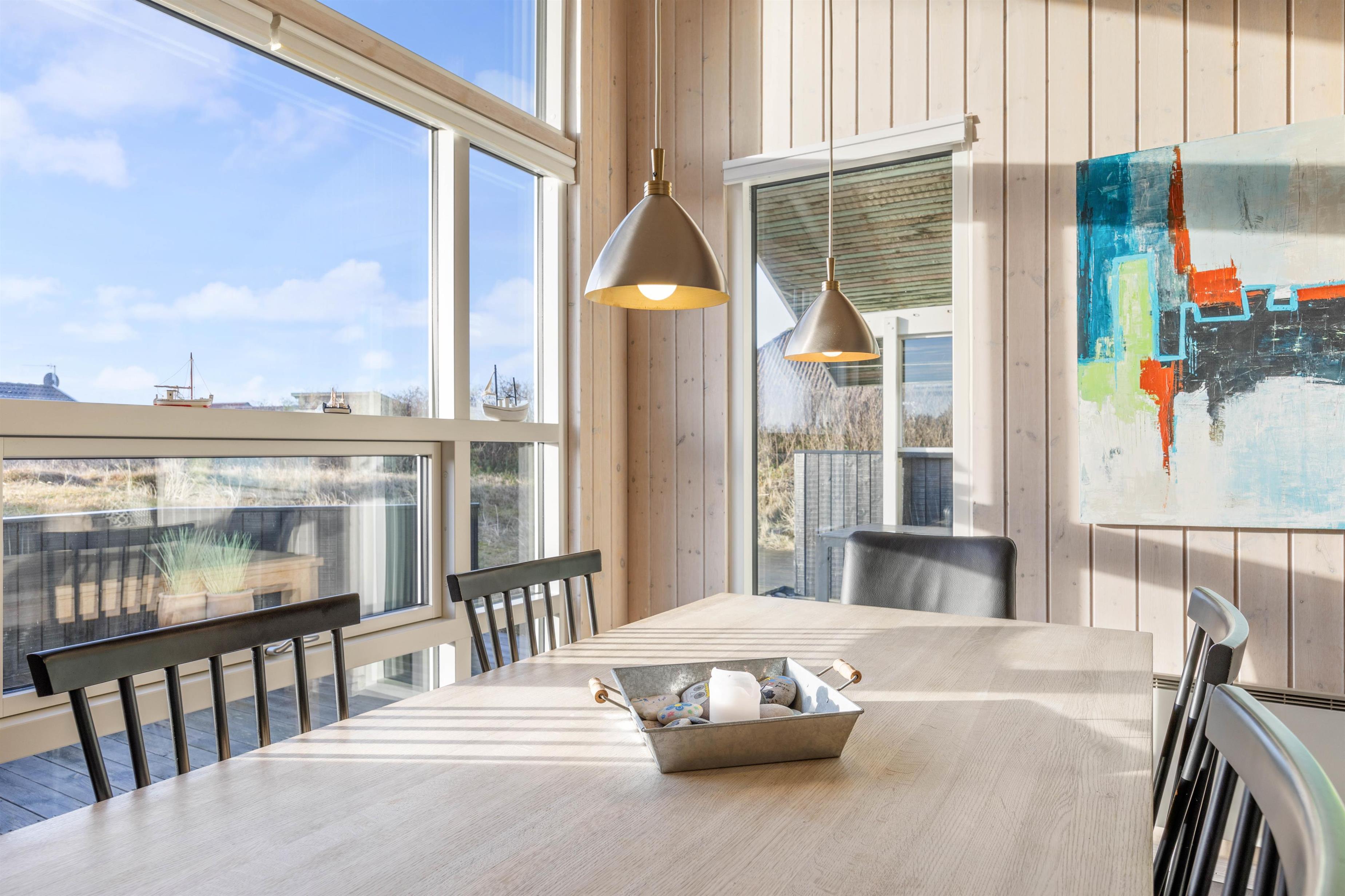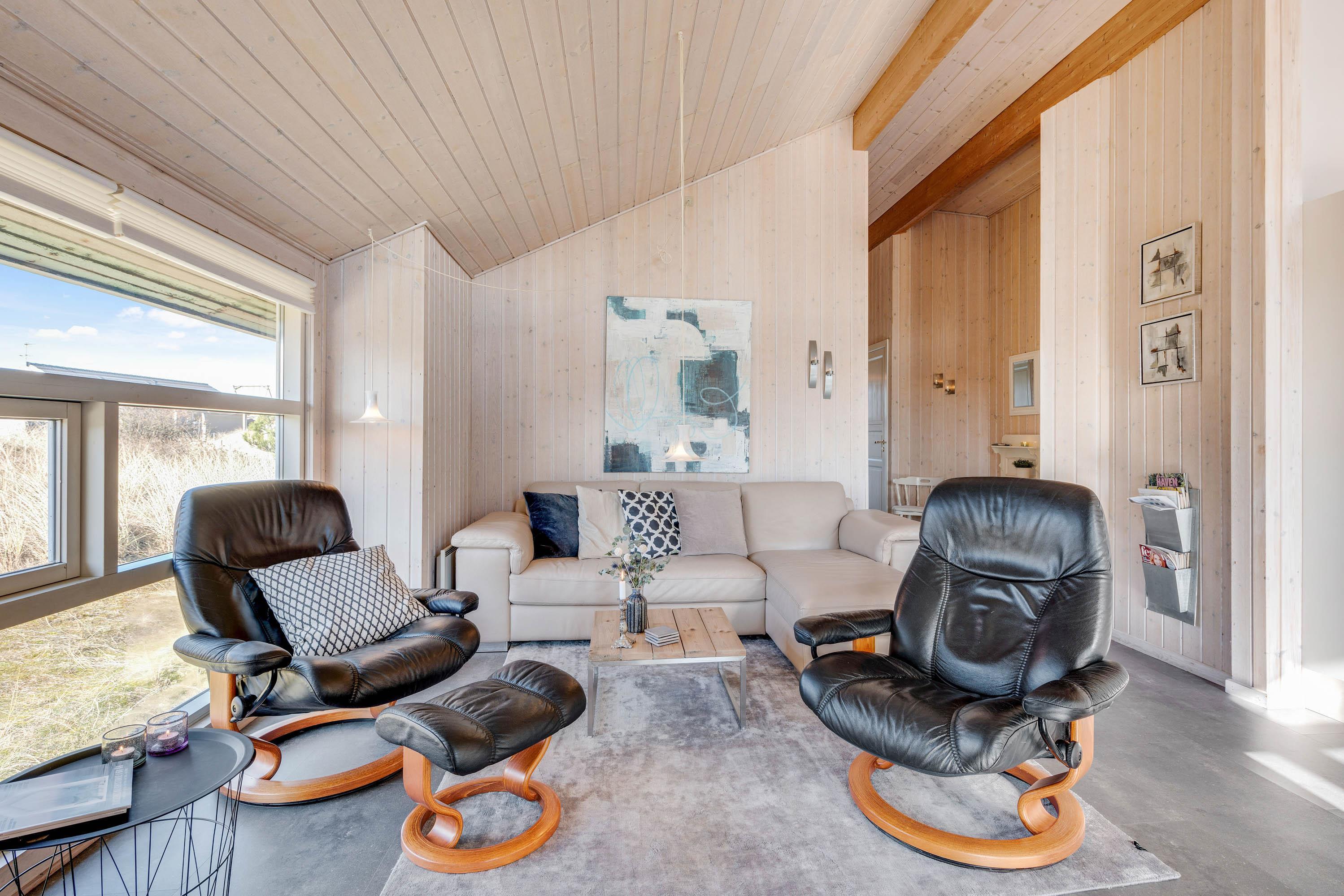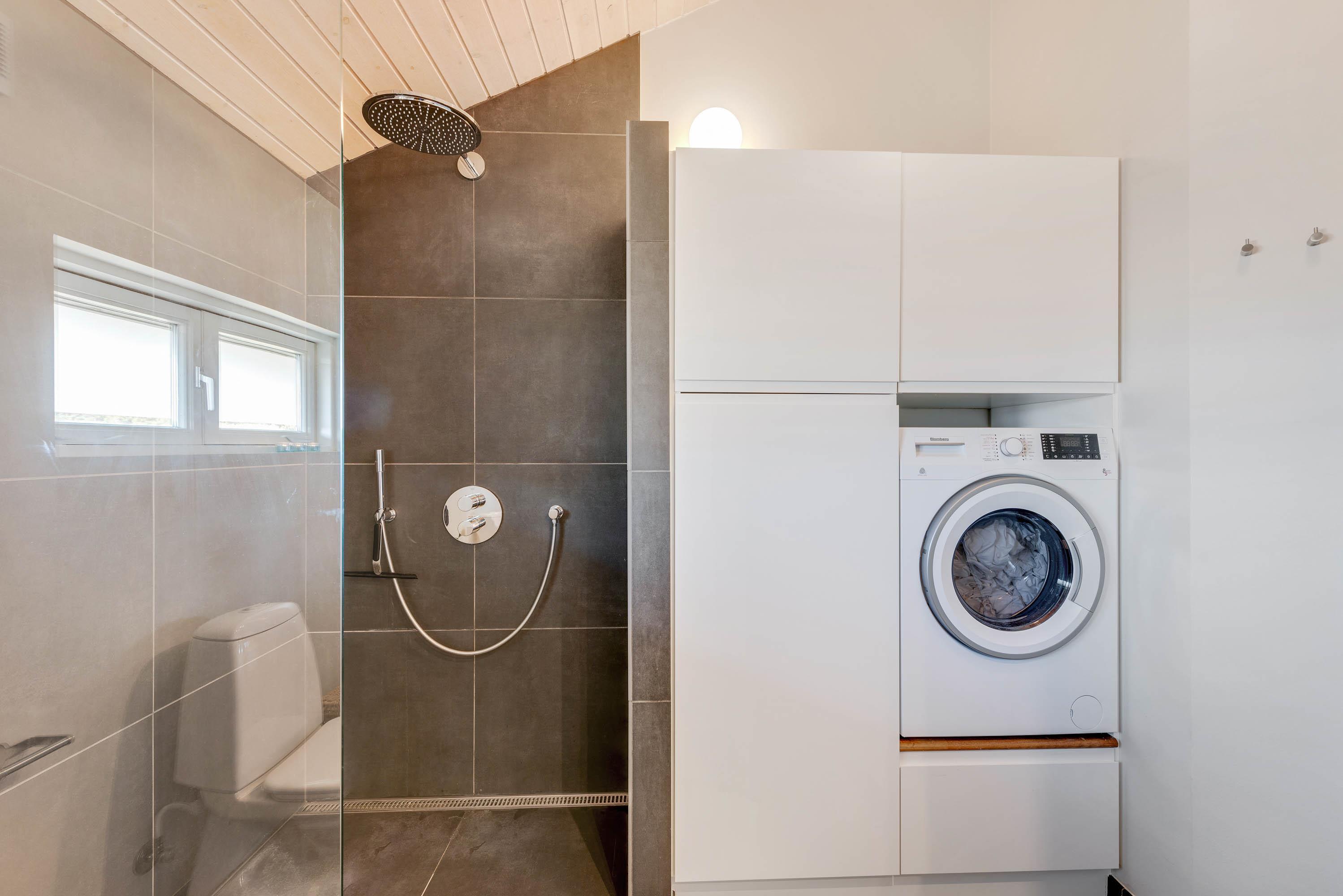 Feriehusets badeværelse er udstyret med gulvvarme og gemmer på et ekstra feriehighlight i form af en sauna. I de køligere måneder er en tur i saunaen den perfekte afslutning på en fantastisk dag ved Vesterhavet, inden I lægger hovedet på puden til en god nats søvn.