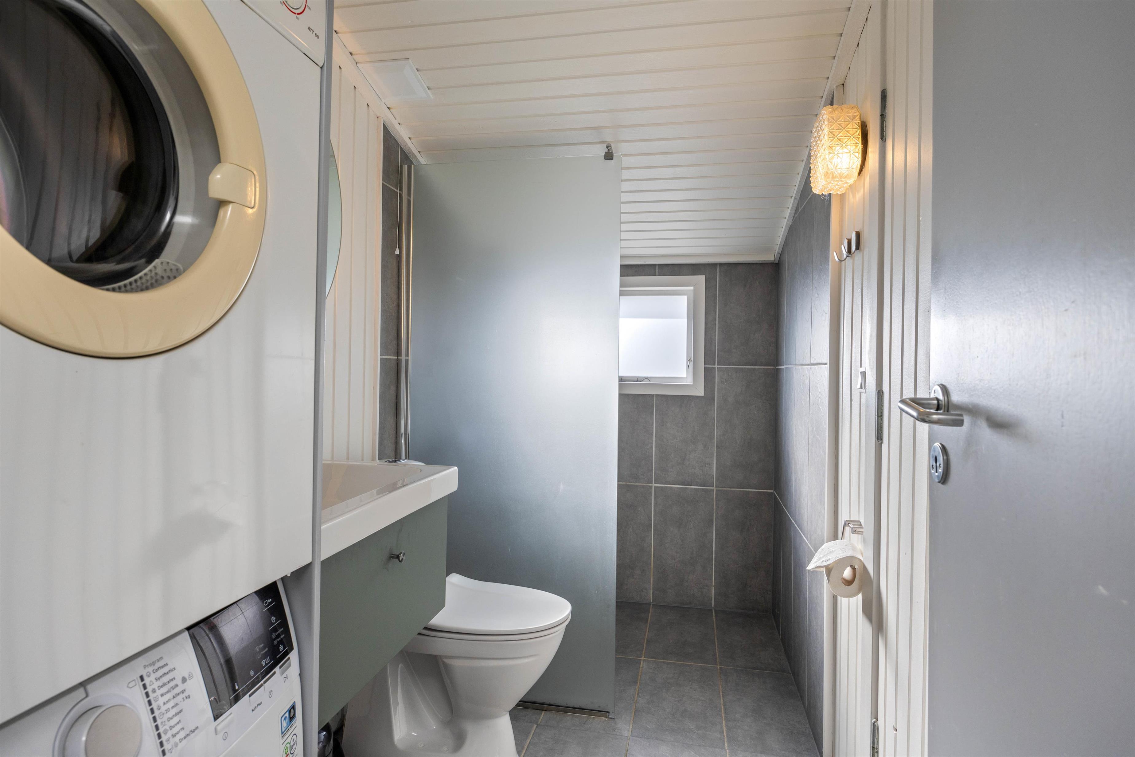 Vaskemaskine og tørretumbler i sommerhuset gør det nemt for familien at pakke til al slags vejr, og en energibesparende varmepumpe sørger for at holde energiforbruget på passende niveau.