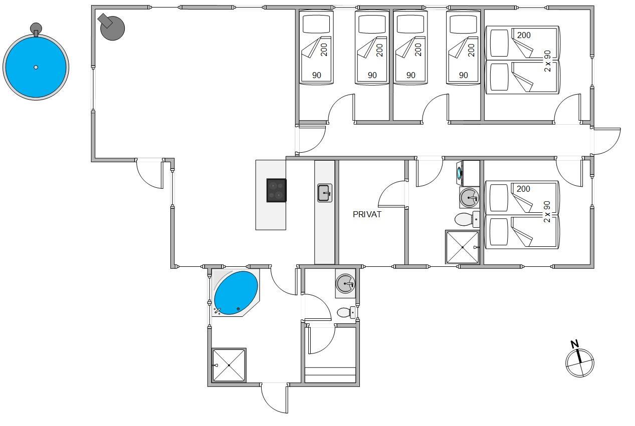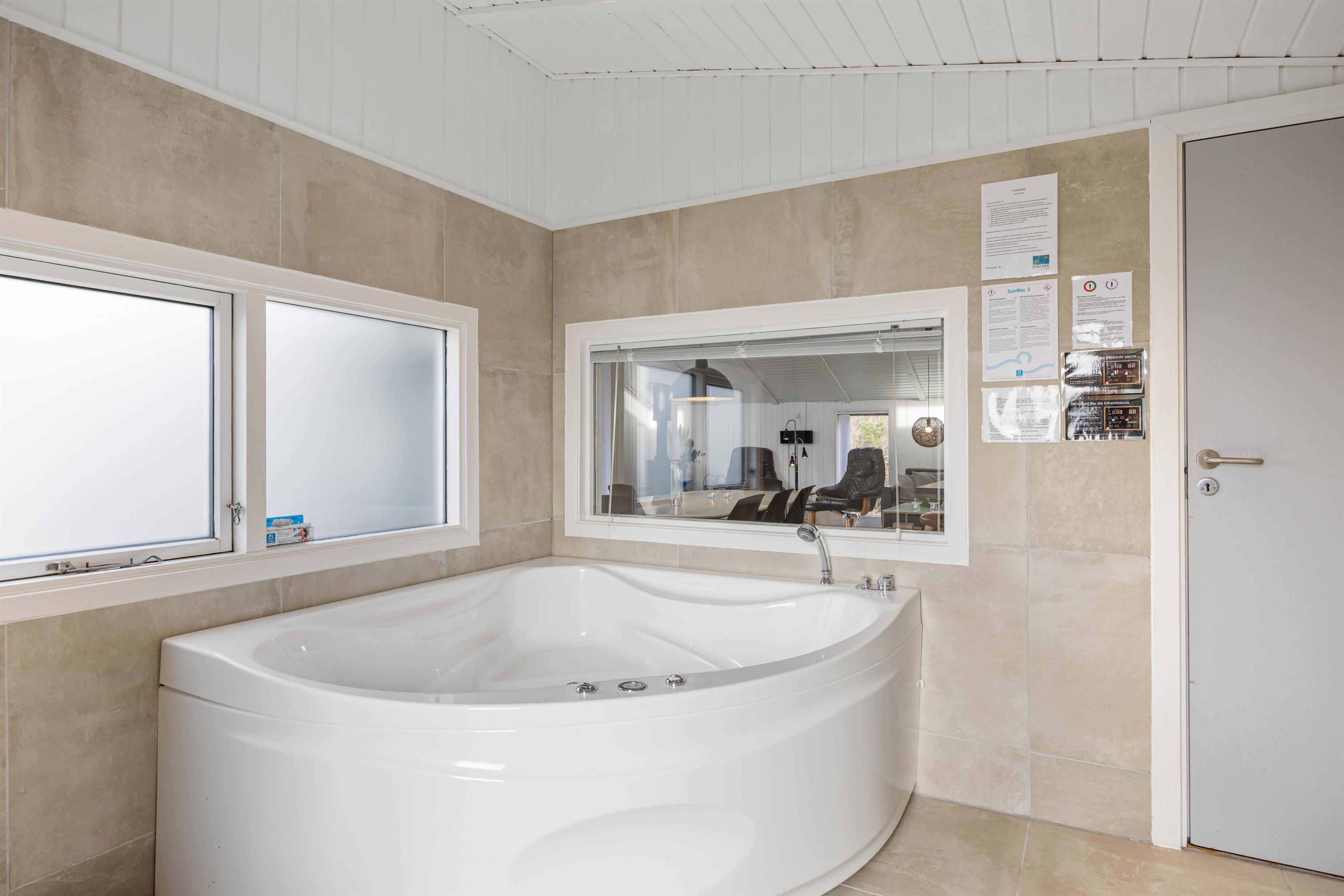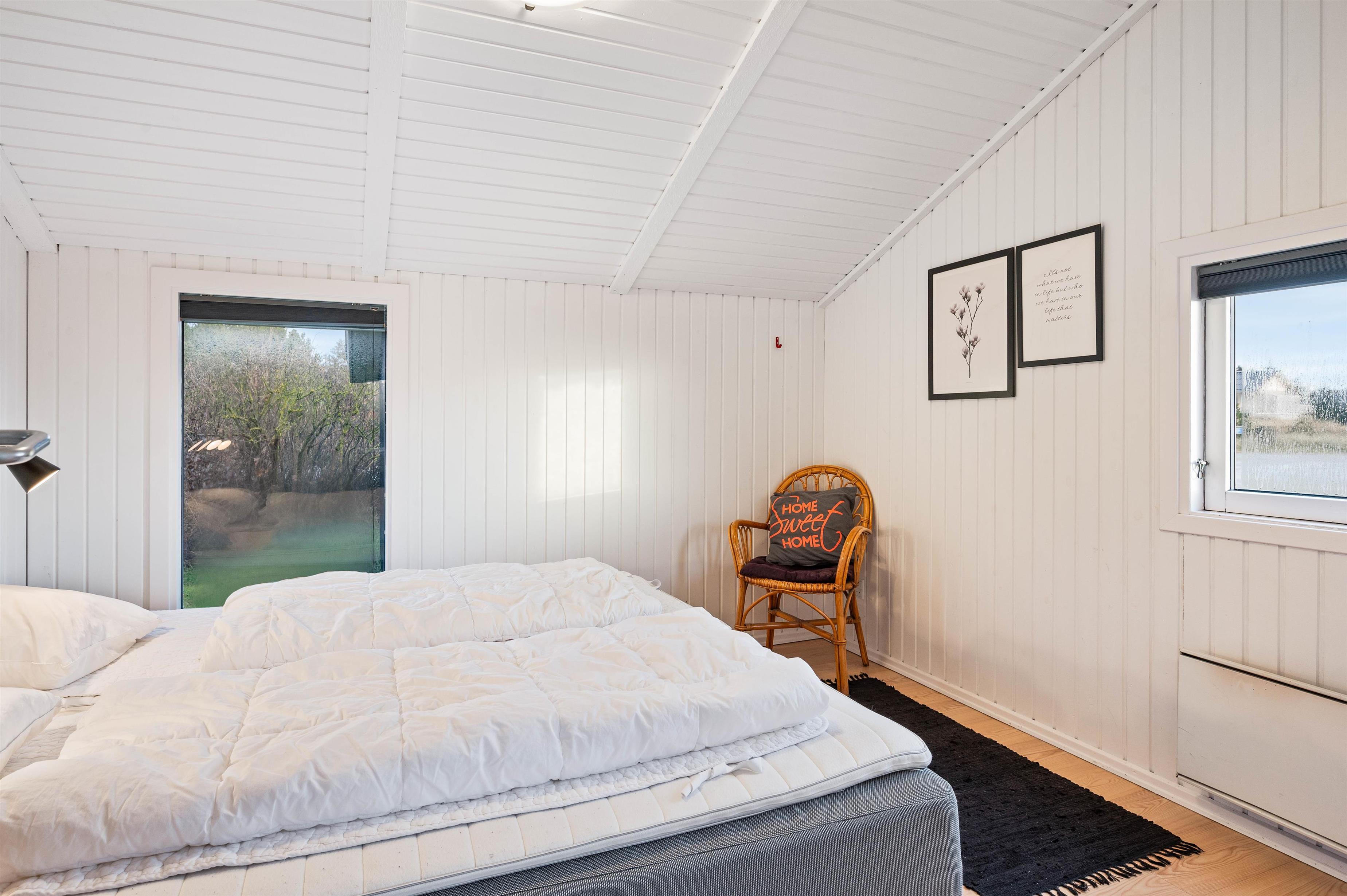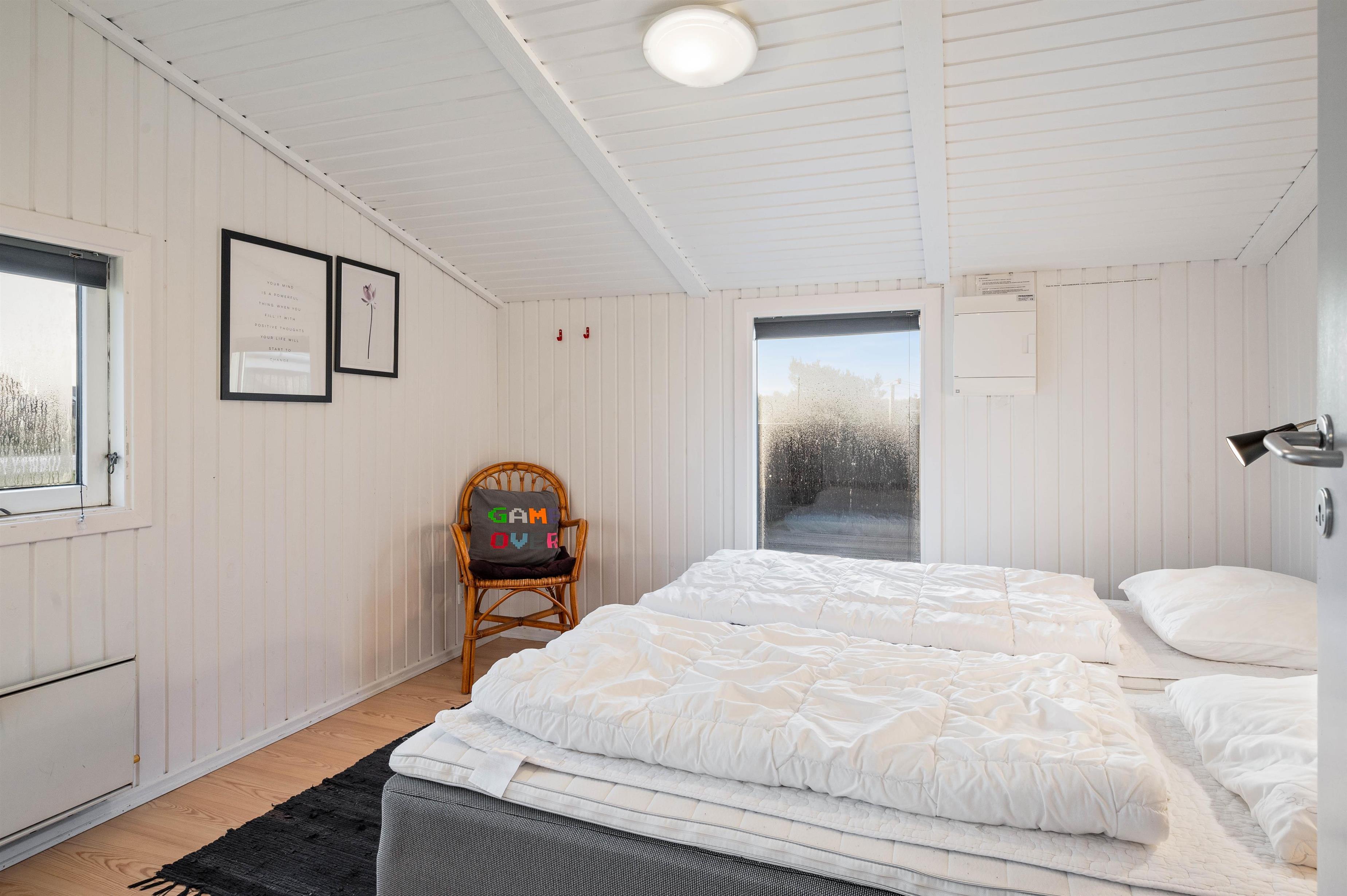 Der er 4 soverum i sommerhuset, hvoraf de 2 værelser er med dobbeltsenge, og 2 værelser har hver 2 enkeltsenge. Sommerhuset råder over hele 2 badeværelser, hvoraf det ene er udstyret med spabad samt sauna med infrarøde paneler, hvor man rigtig kan slappe af og blive gennemvarm, - måske efter en lang gåtur i klitterne eller ved stranden.