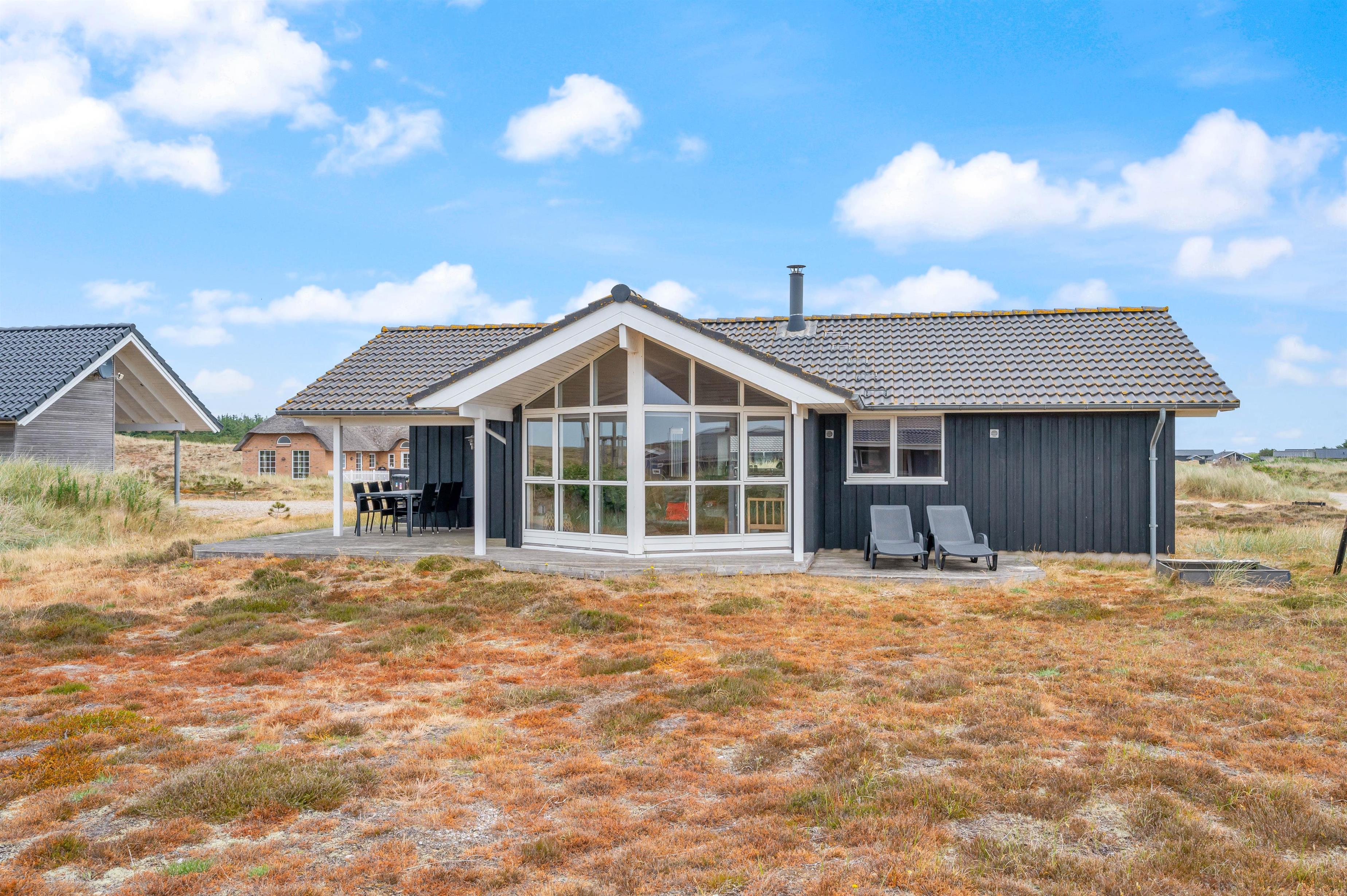 Sommerhuset ligger på en skøn lyngbevokset naturgrund kun få meter fra et stort fredet hedeareal. Et yndet område for dejlige traveture. Der er kun 400 meter til Vesterhavet, hvor I kan gå ture i den friske havluft og med fødderne i vandkanten.