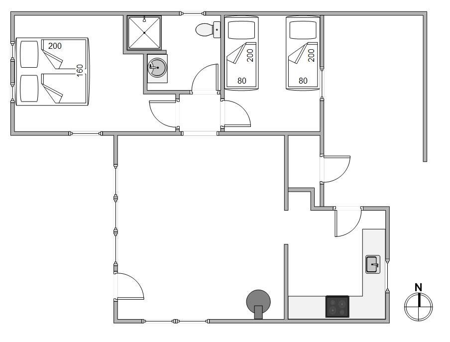 Til nattetimerne står 2 soveværelser til rådighed, det ene er indrettet med dobbeltseng, mens det andet har 2 enkeltsenge. Her kan I få ladet batterierne op til den næste dages aktiviteter. Derudover får I ingen kolde fødder på badeværelset, hvor der er installeret gulvvarme.