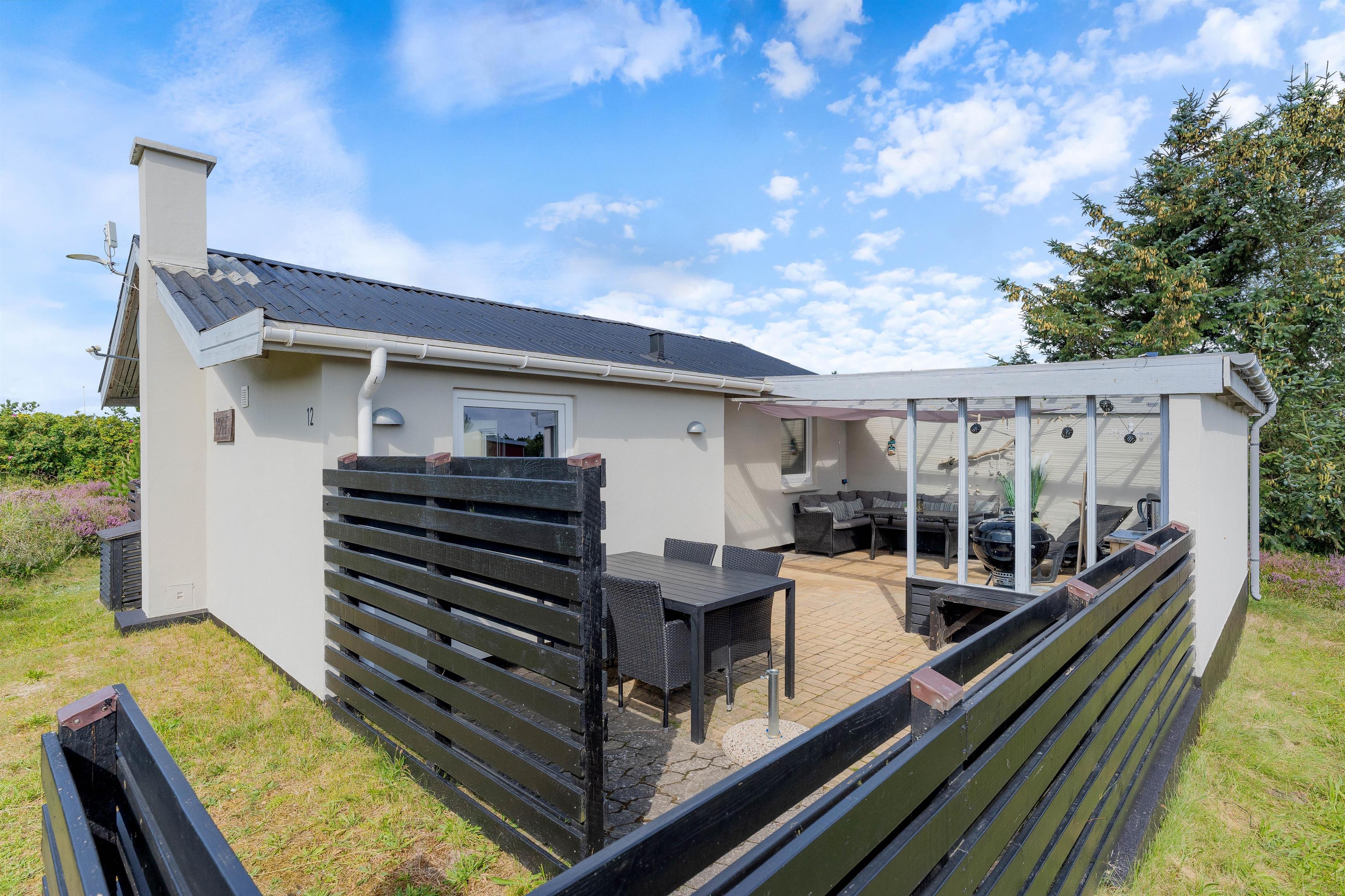 Ved sommerhuset er der flere terrasseområder, så I altid kan finde den rigtige plads. På den ene side er der en helt lukket terrasse, mens I på den anden side finder en afskærmet og stor overdækket terrasse. Uanset sol og vindretning, kan I på Rauhesvej 12 tilbringe mange timer udendørs og nyde den friske havluft og lange sommeraftener, hvor solen farver himlen i et væld af farver.
