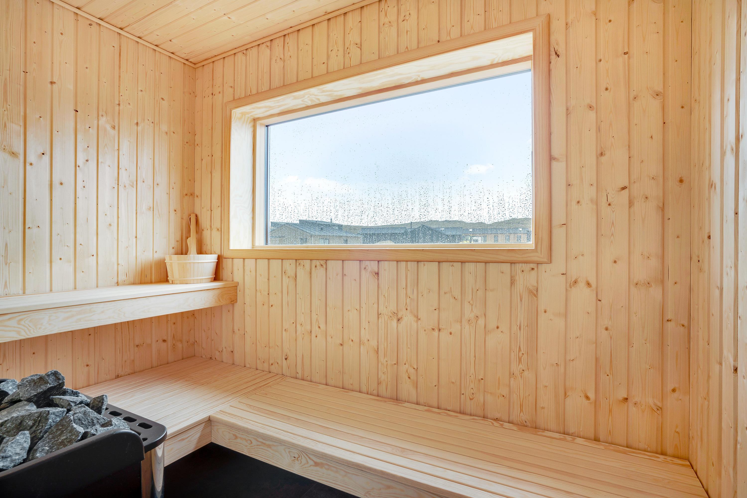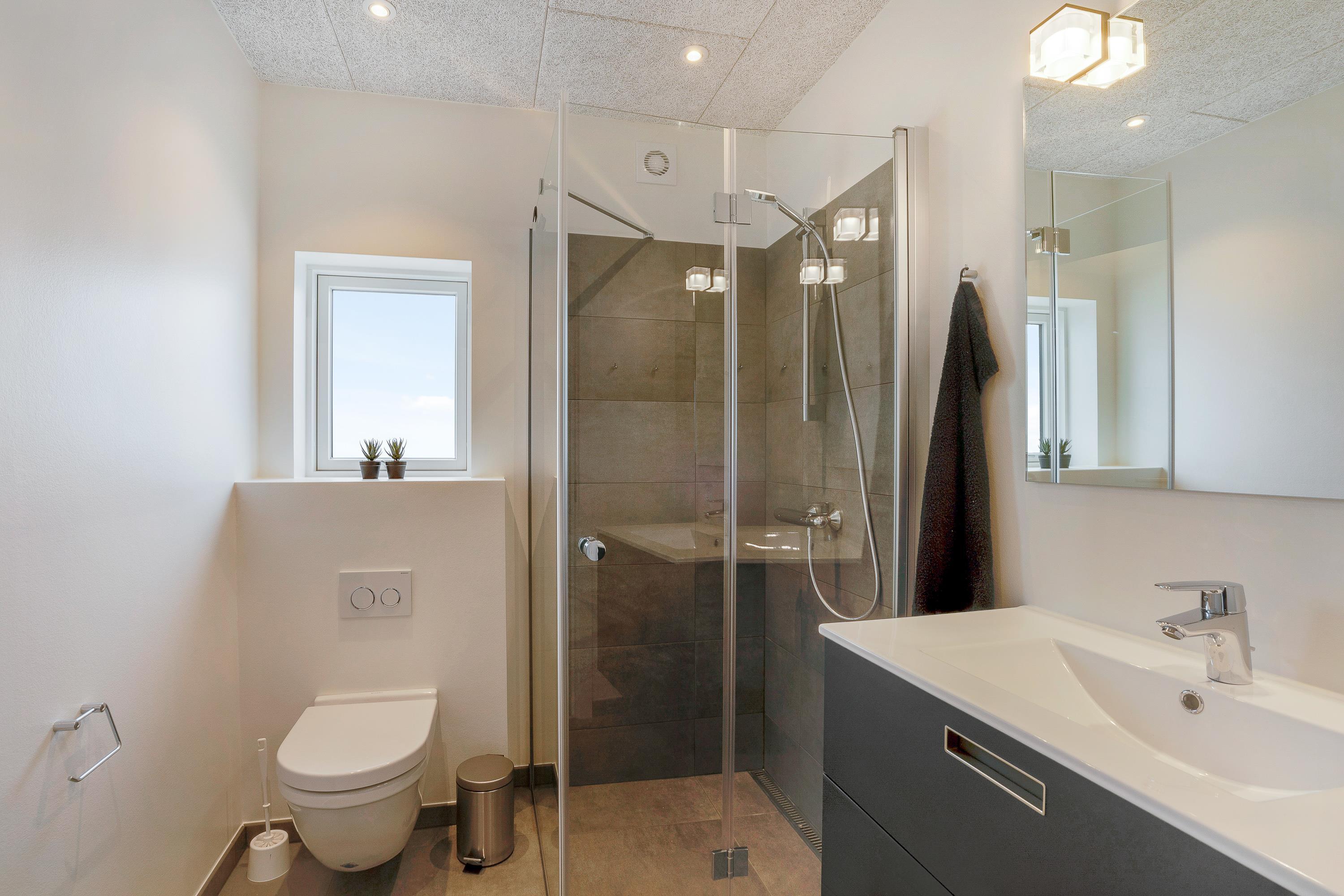 Her har I de perfekte forudsætninger for at slappe af og komme helt ned i gear. De lyse farver skaber en indbydende atmosfære i hele feriehuset, og i alrummet står brændeovnen klar til at danne ramme om hyggelige stunder. Det største af ferieboligens to badeværelser er indrettet med sauna og spabad, så I kan nyde godt af lidt ekstra wellness på ferien. En energivenlig varmepumpe sørger desuden for, at I altid har et behageligt indeklima, også uden de store omkostninger.