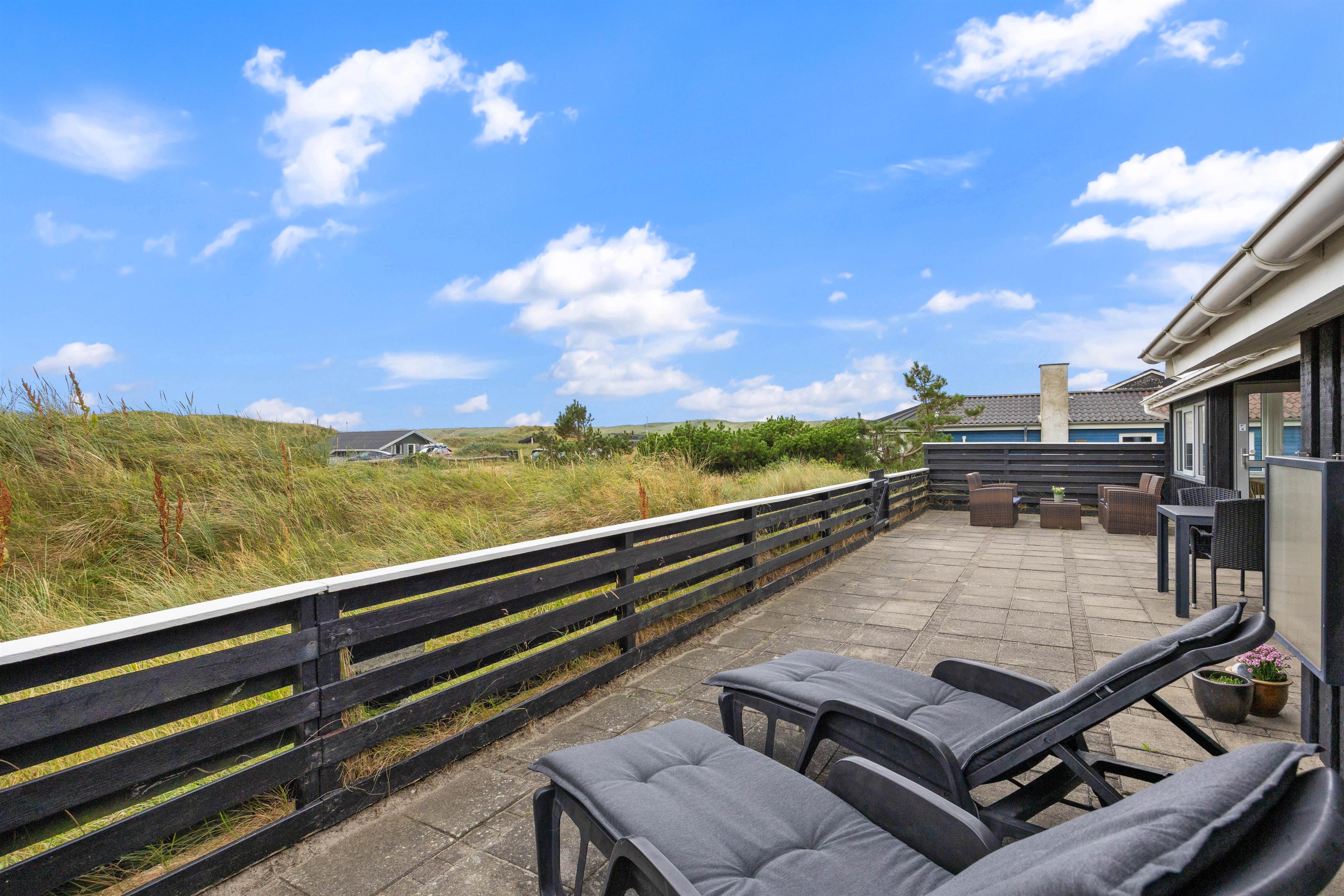 Sommerhuset ligger i det populære ferieområde Bjerregård, som er præget at naturskønne klit- og hedearealer. Her kan I gå lange ture ved det gode stisystem eller ved Vesterhavet, som kun ligger 250 meter fra sommerhuset.